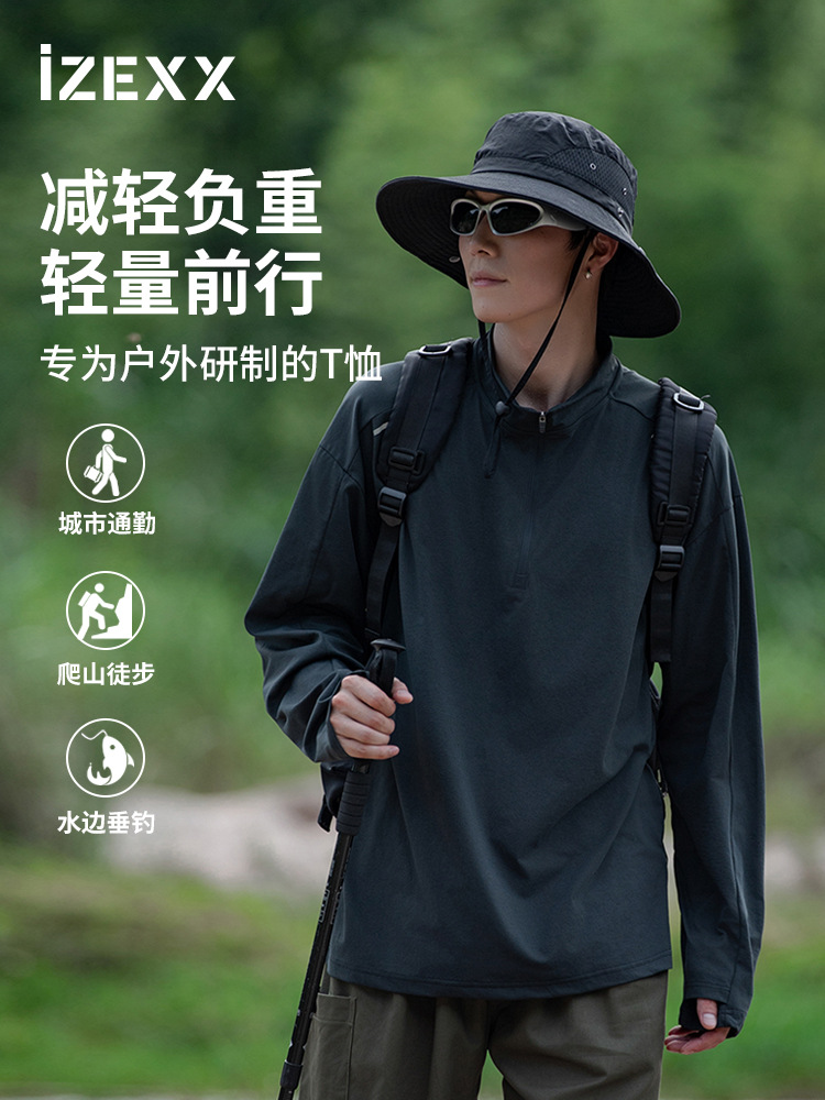IZEXX 야외 경량 자외선 차단 흡습 속건 피트니스 스포츠 긴팔 티셔츠 남성용 항균 하프 터틀넥 탑스토어 가기
