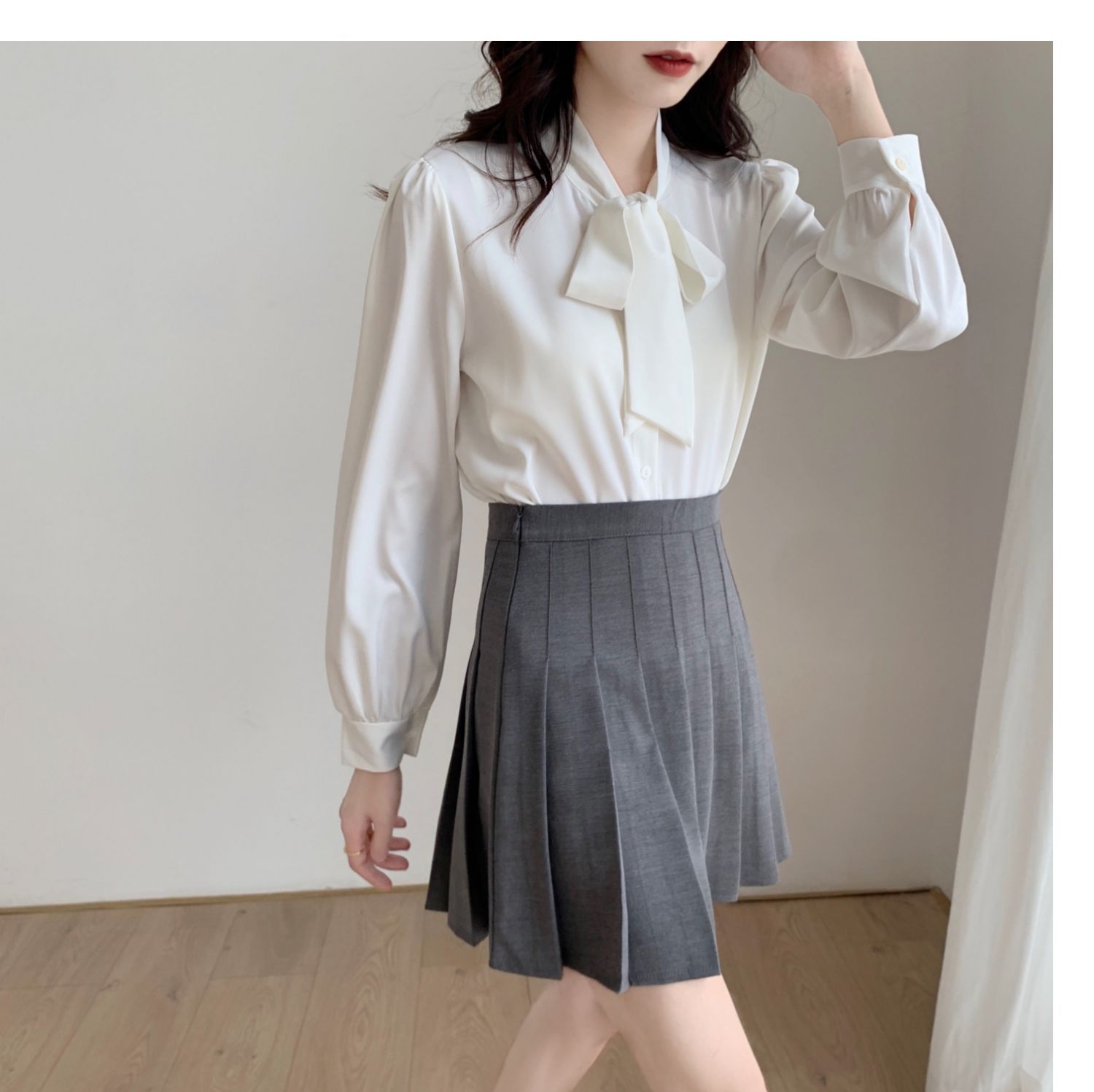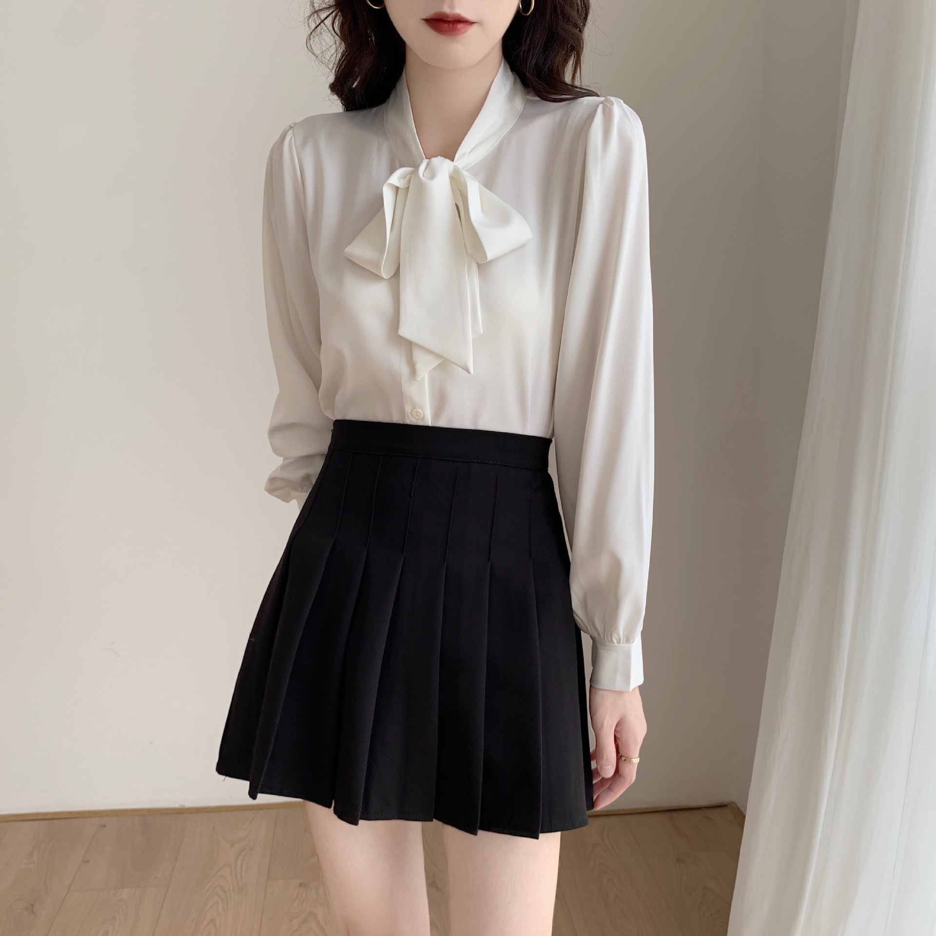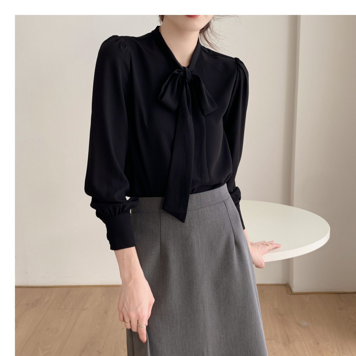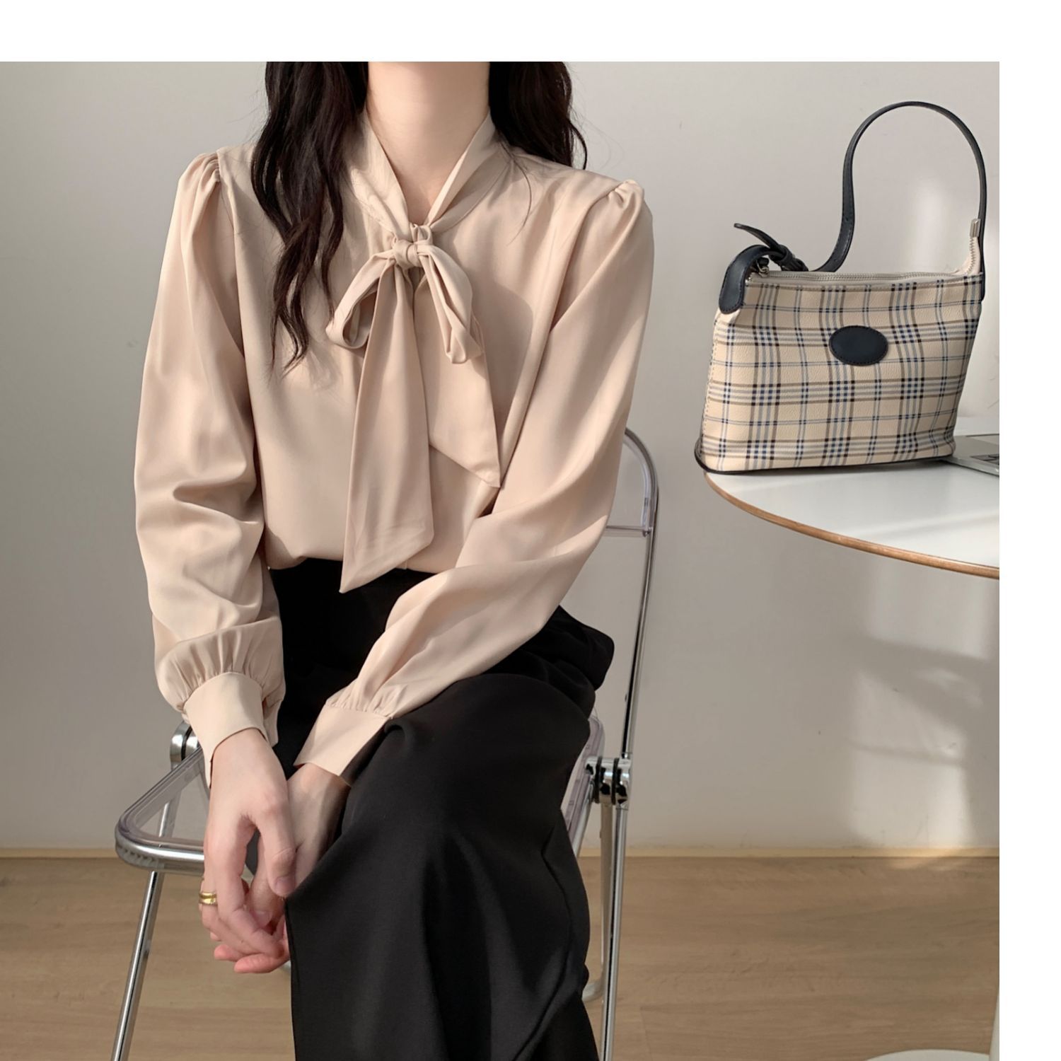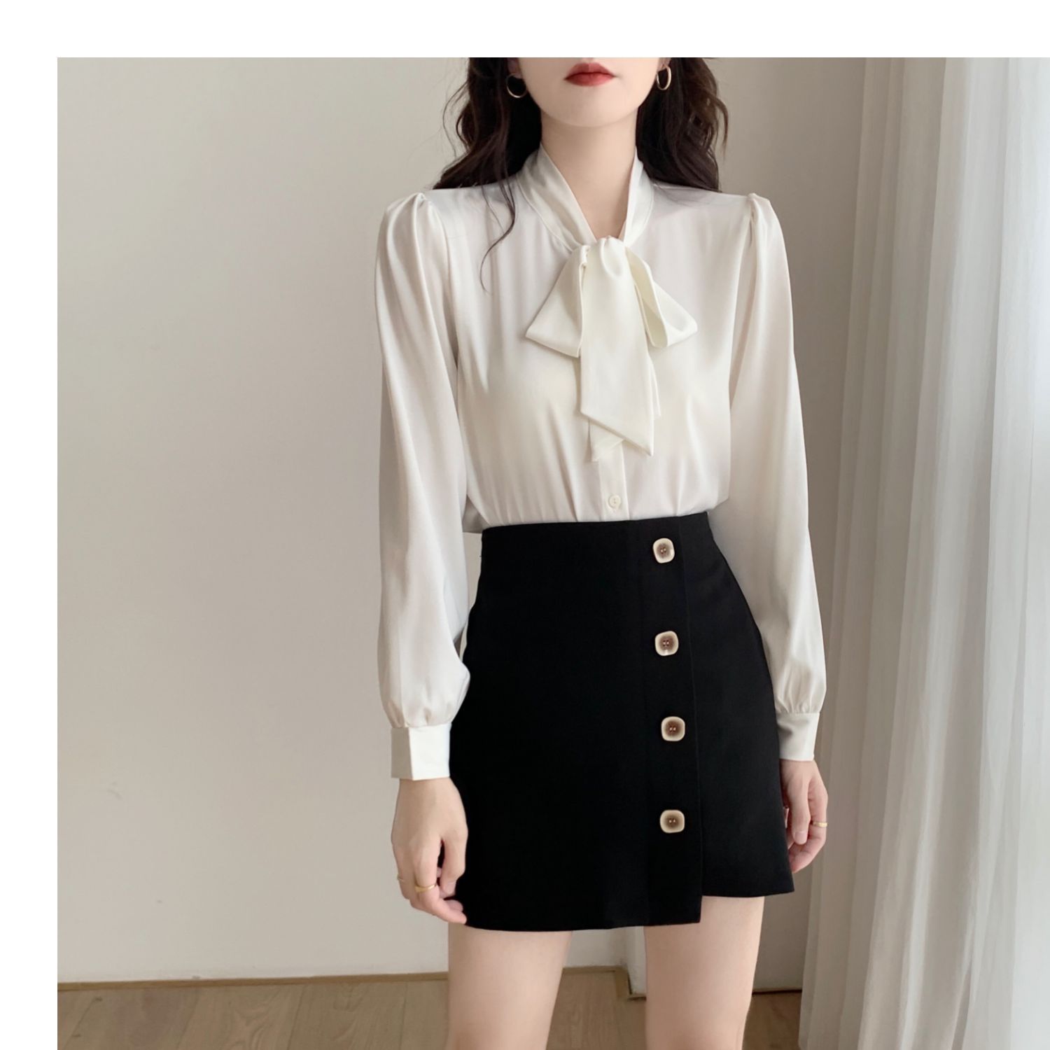 슈퍼 오리지널 블루 활 셔츠 여성 디자인 센스 틈새 전문 우아한 셔츠 새틴 탑 레이스스토어 가기