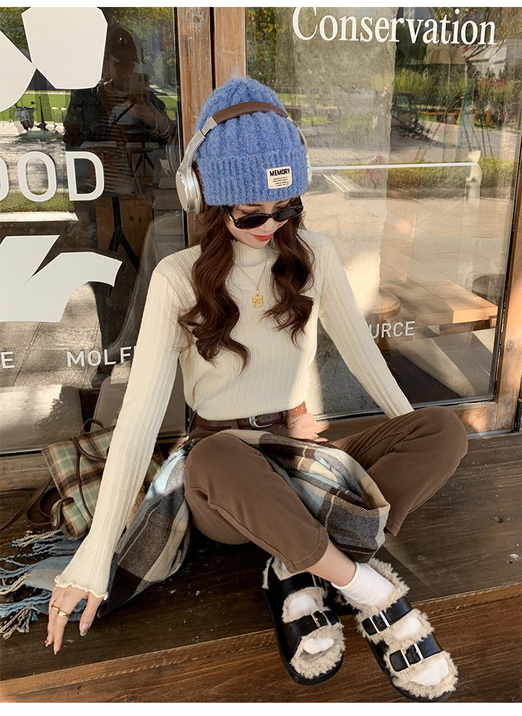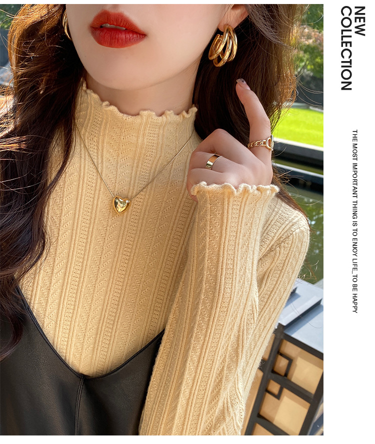 여성용 가을 겨울 이너웨어 2025 신상 하프 터틀넥 러플 니트 중간 길이 긴팔 스웨터스토어 가기