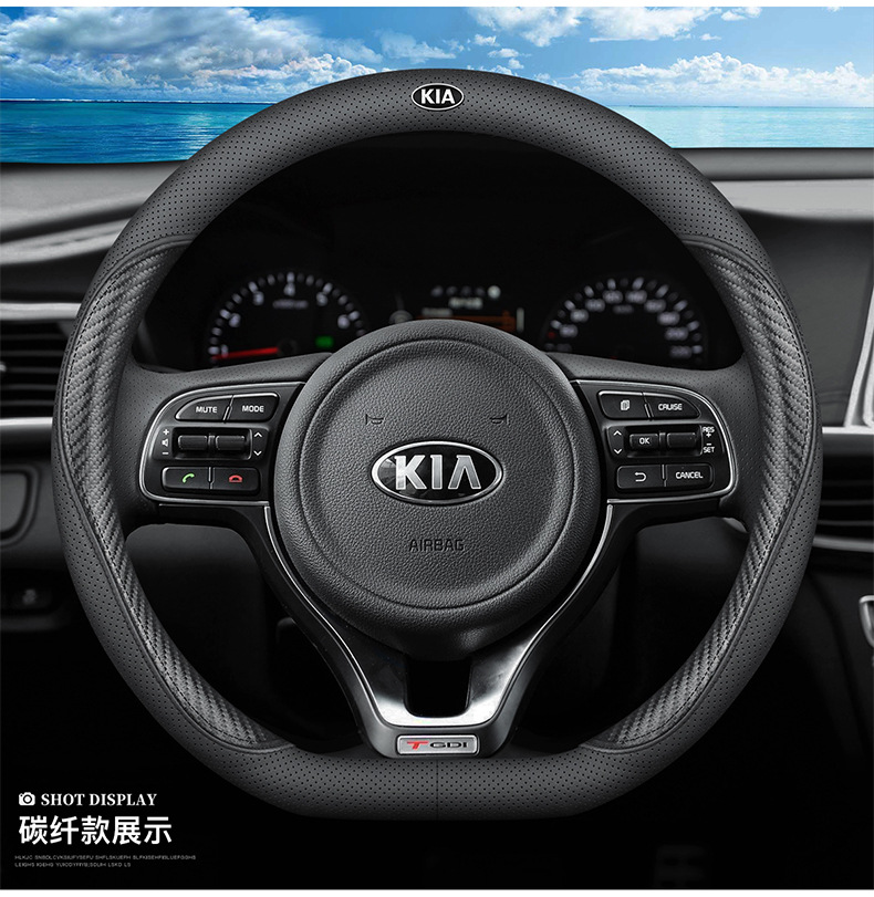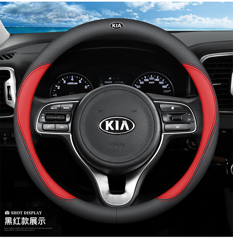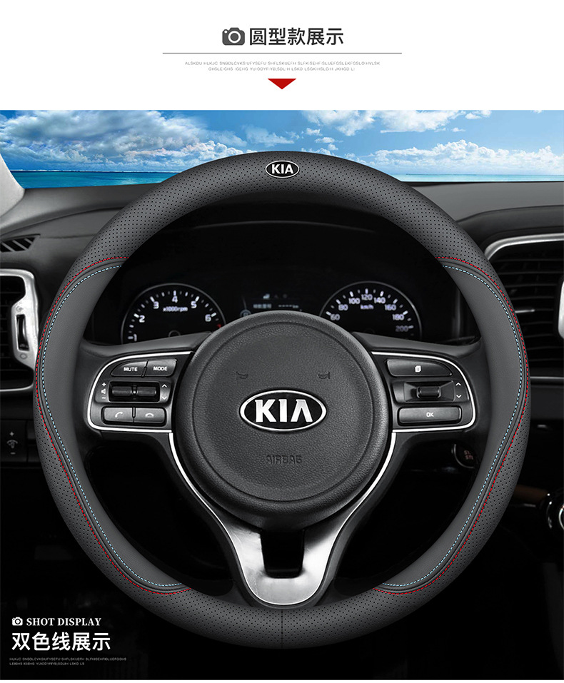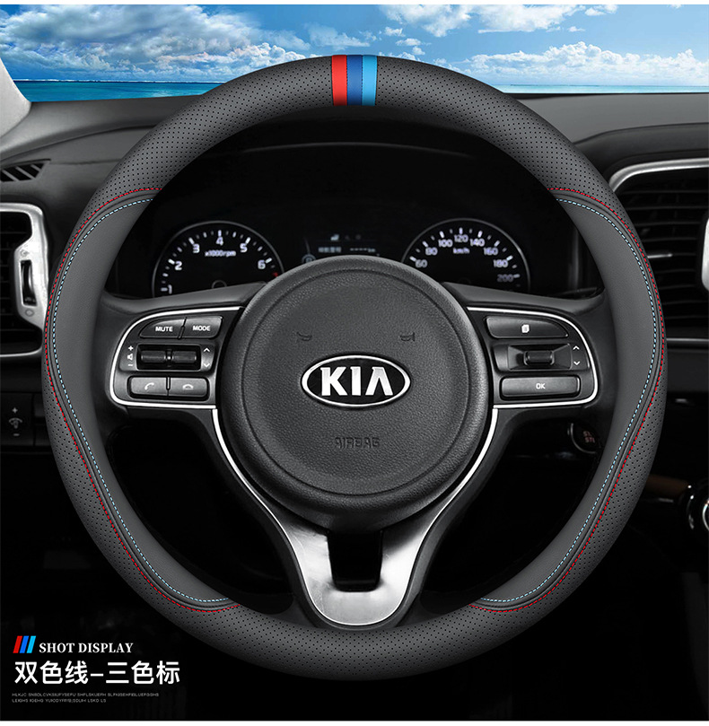 기아 K3S 스티어링 휠 커버 14 초박형 통기성 가죽 수 놓은 나파 핸들 커버에 적합스토어 가기