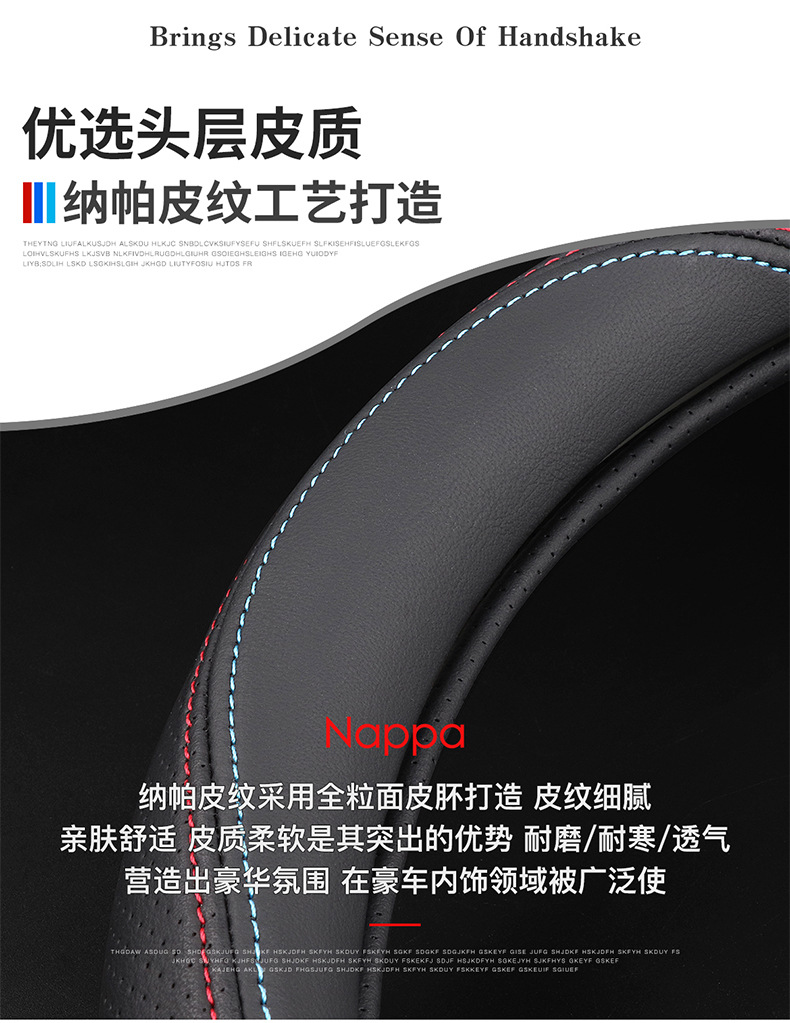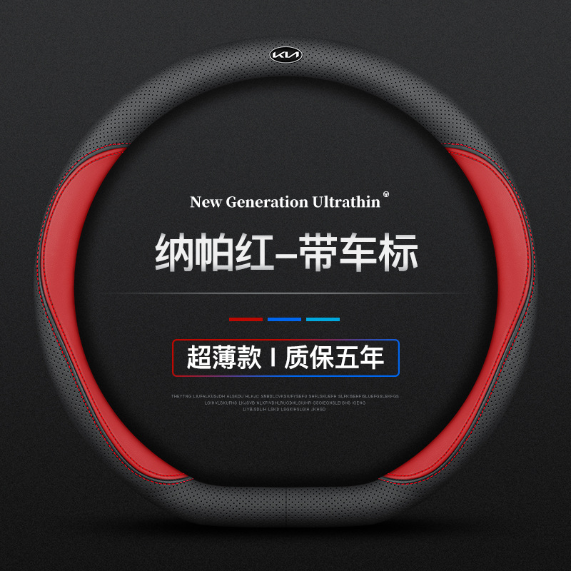 기아 K3S 스티어링 휠 커버 14 초박형 통기성 가죽 수 놓은 나파 핸들 커버에 적합