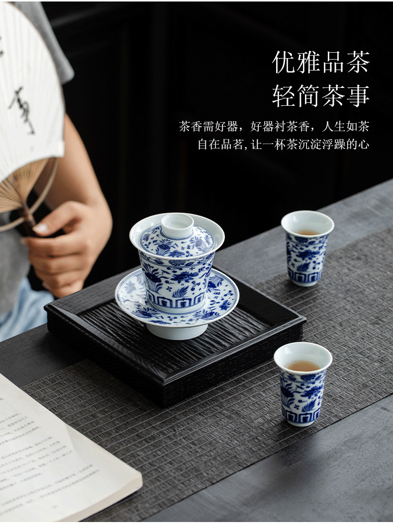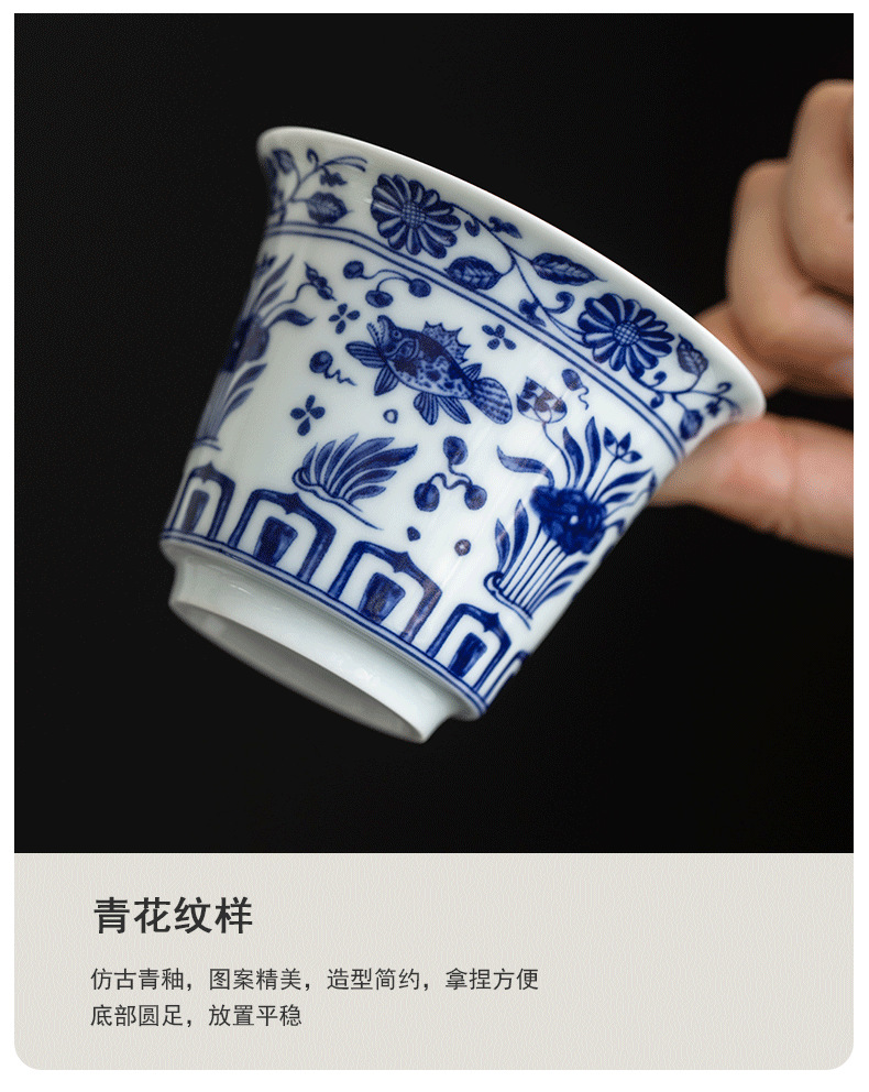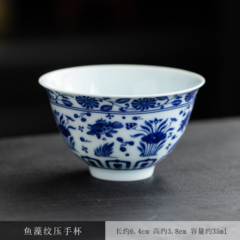 파란색과 흰색 도자기 마스터 컵 스몰 사이즈 티 컵 세라믹 차 시음 컵 개인 작은 차 컵 가정용 단일 차 그릇스토어 가기