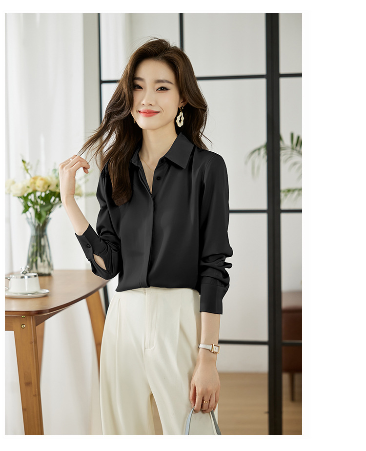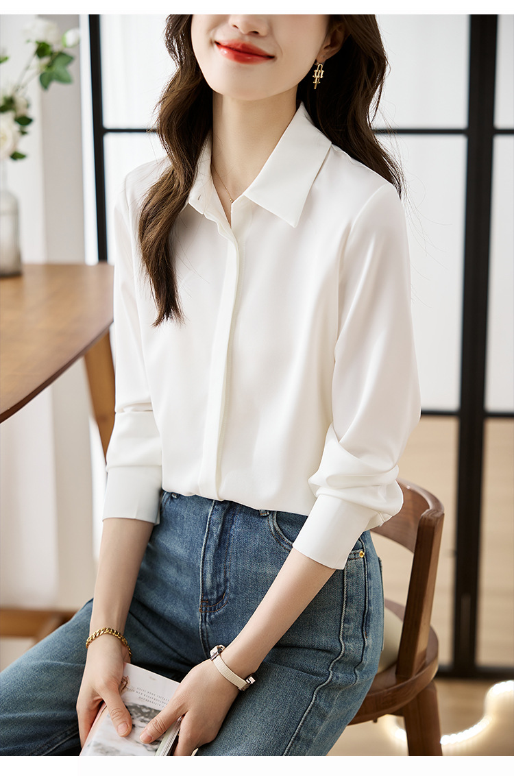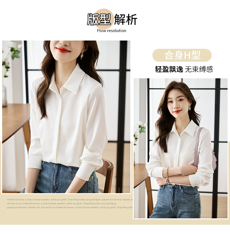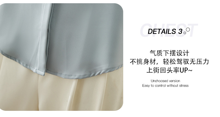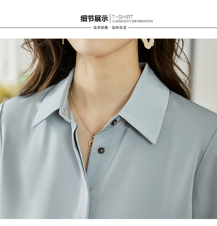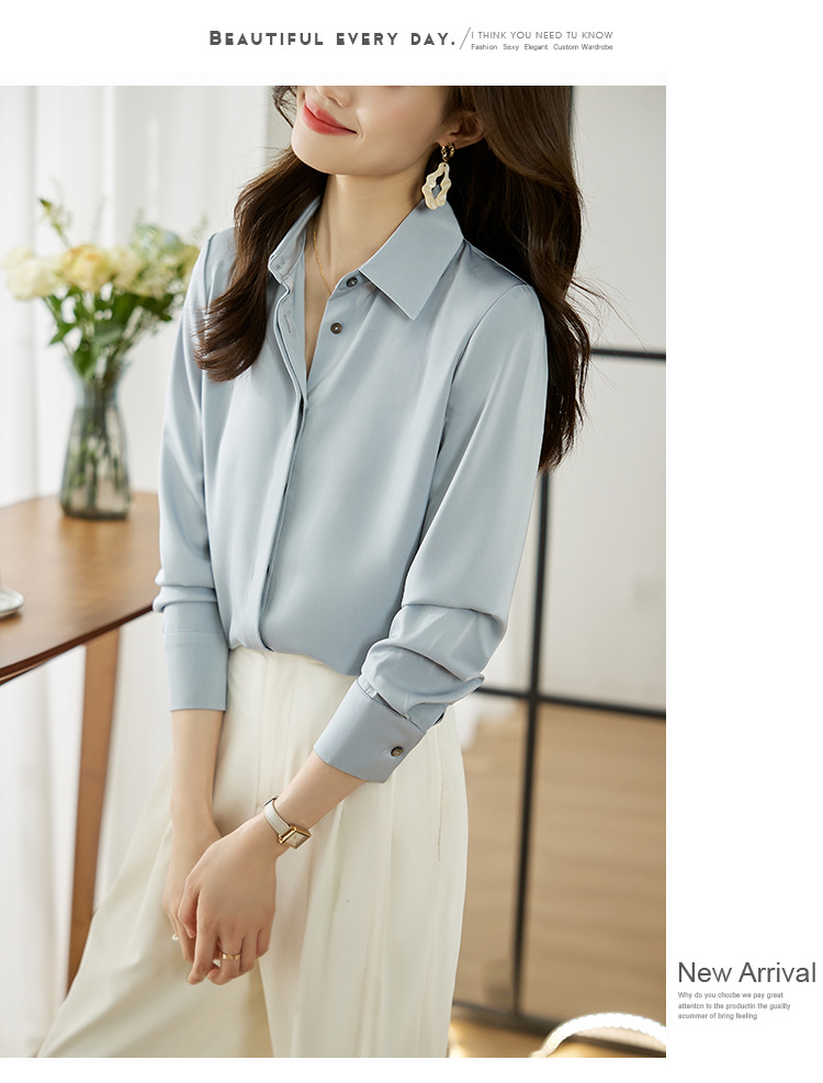24 가을 그레이 블루 새틴 셔츠 여자 긴팔 가을 올 매치 다크 플래켓 레트로 홍콩 스타일 딥 통근 라이트 어처스토어 가기