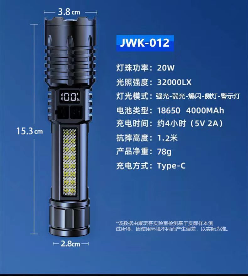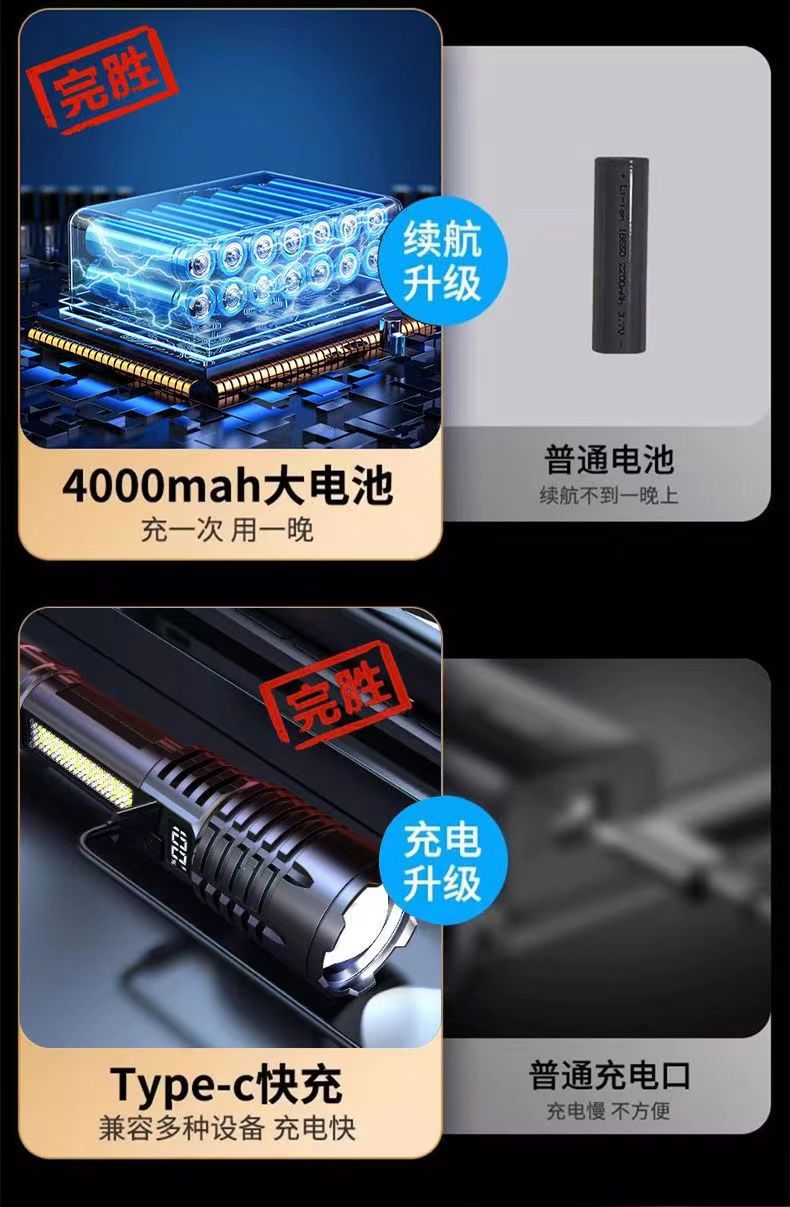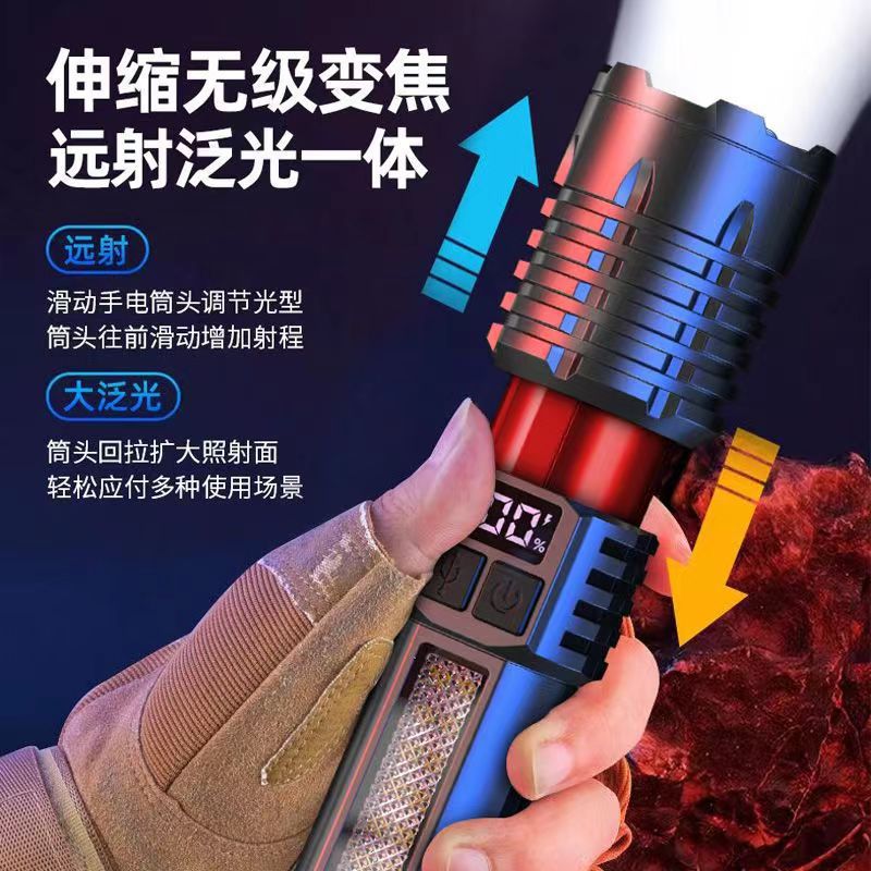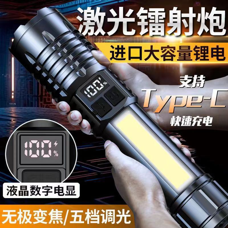 새로운 국경 야외 손전등 순찰 스포트라이트 하이 빔 라이트 휴대용 충전식 줌 화이트 레이저 라이트
