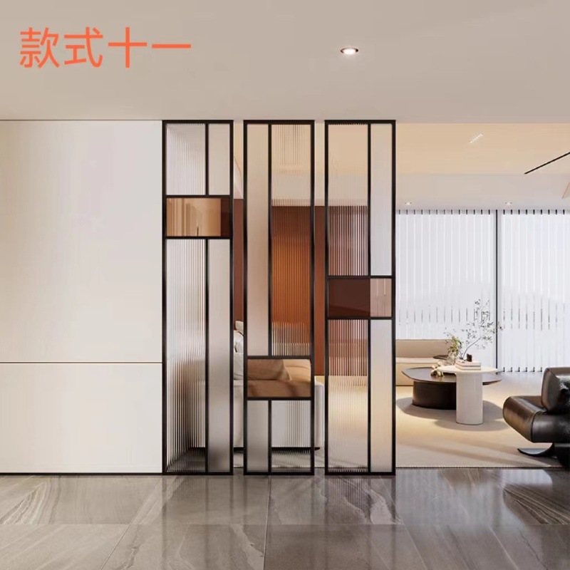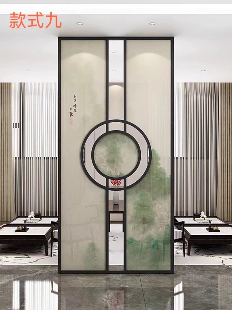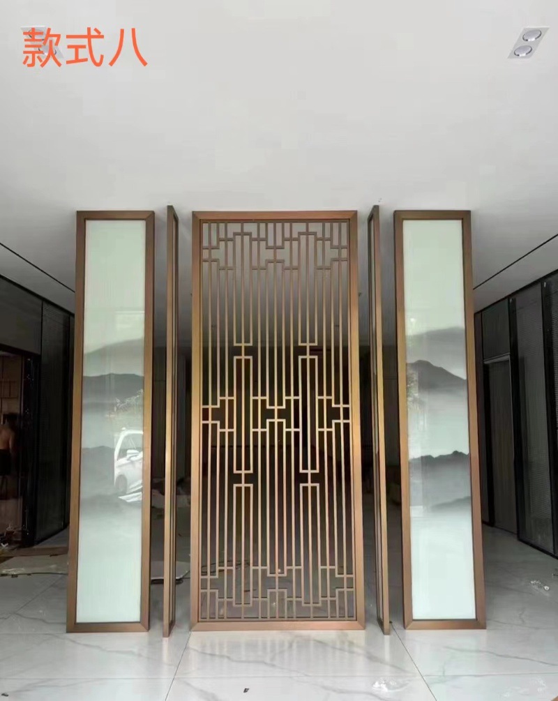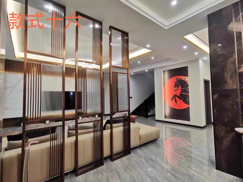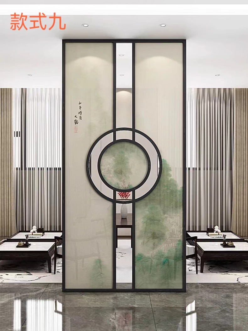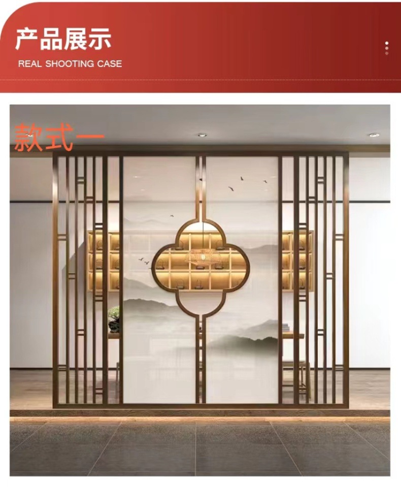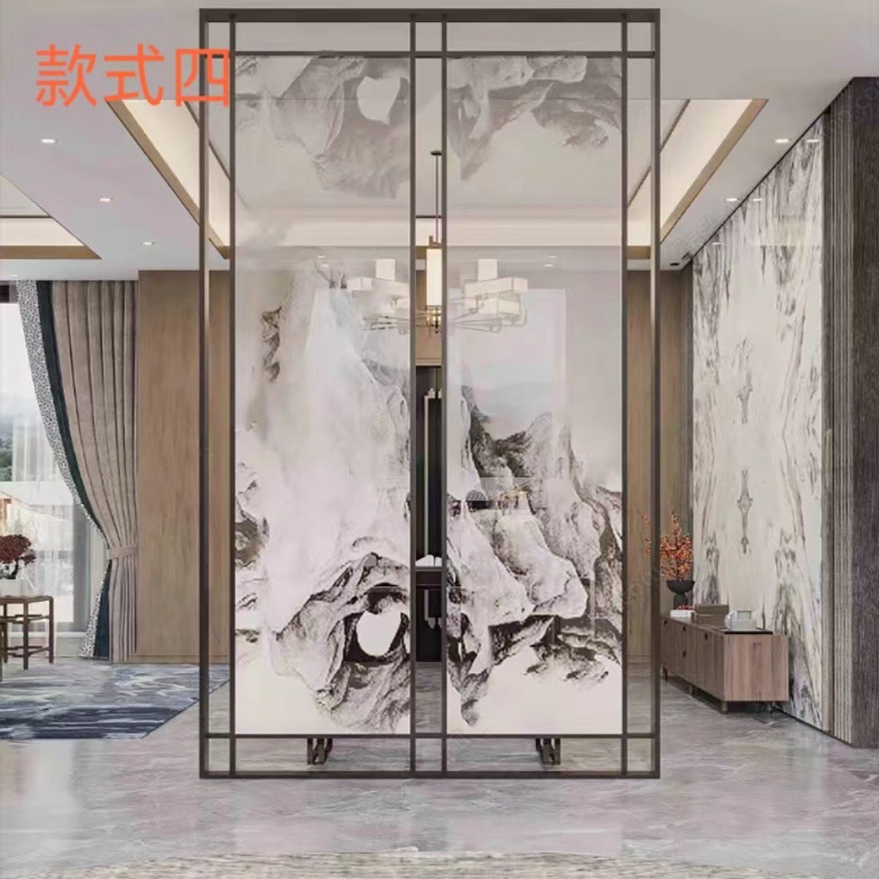 현대 간단한 창홍 유리 스테인레스 스틸 스크린 파티션 중국 스타일 철 거실 입구 복도 벽