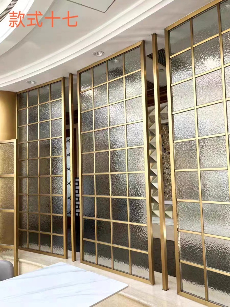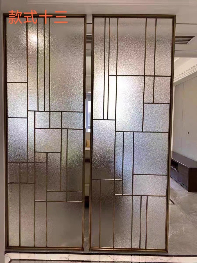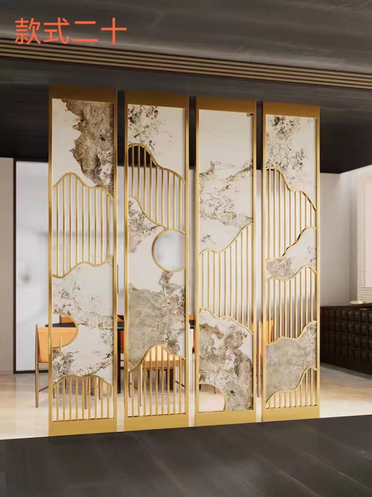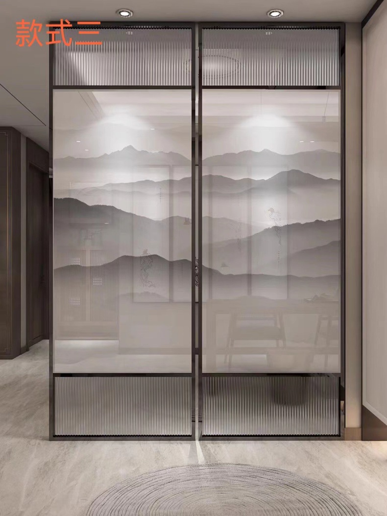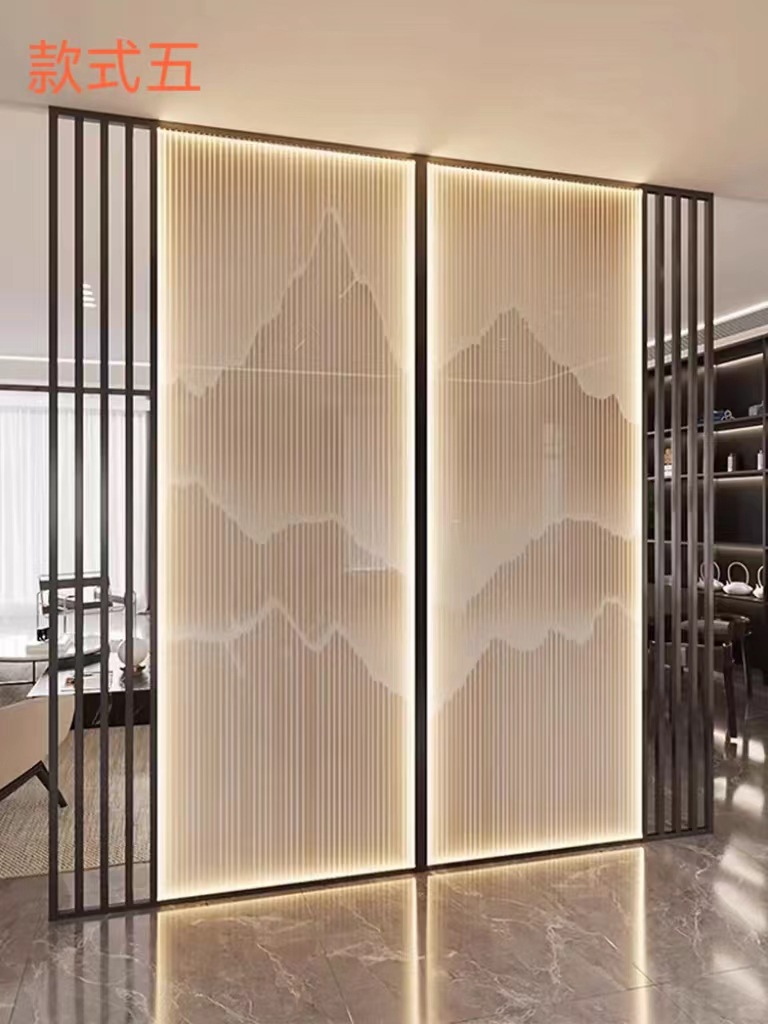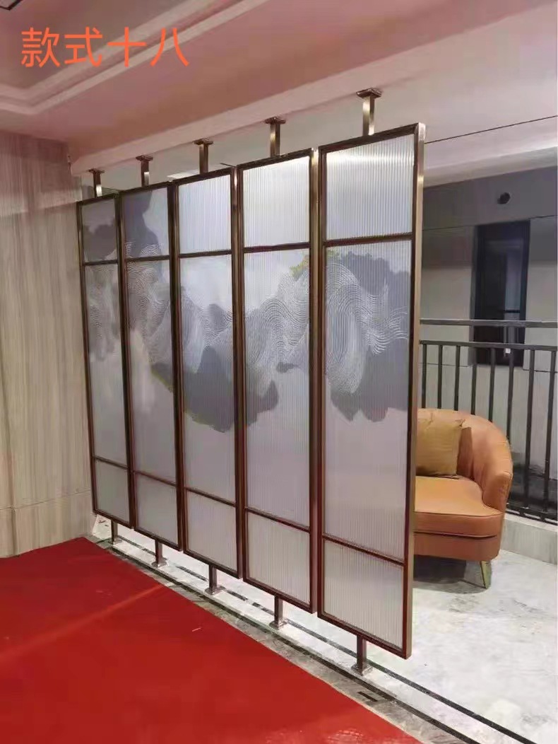 현대 간단한 창홍 유리 스테인레스 스틸 스크린 파티션 중국 스타일 철 거실 입구 복도 벽