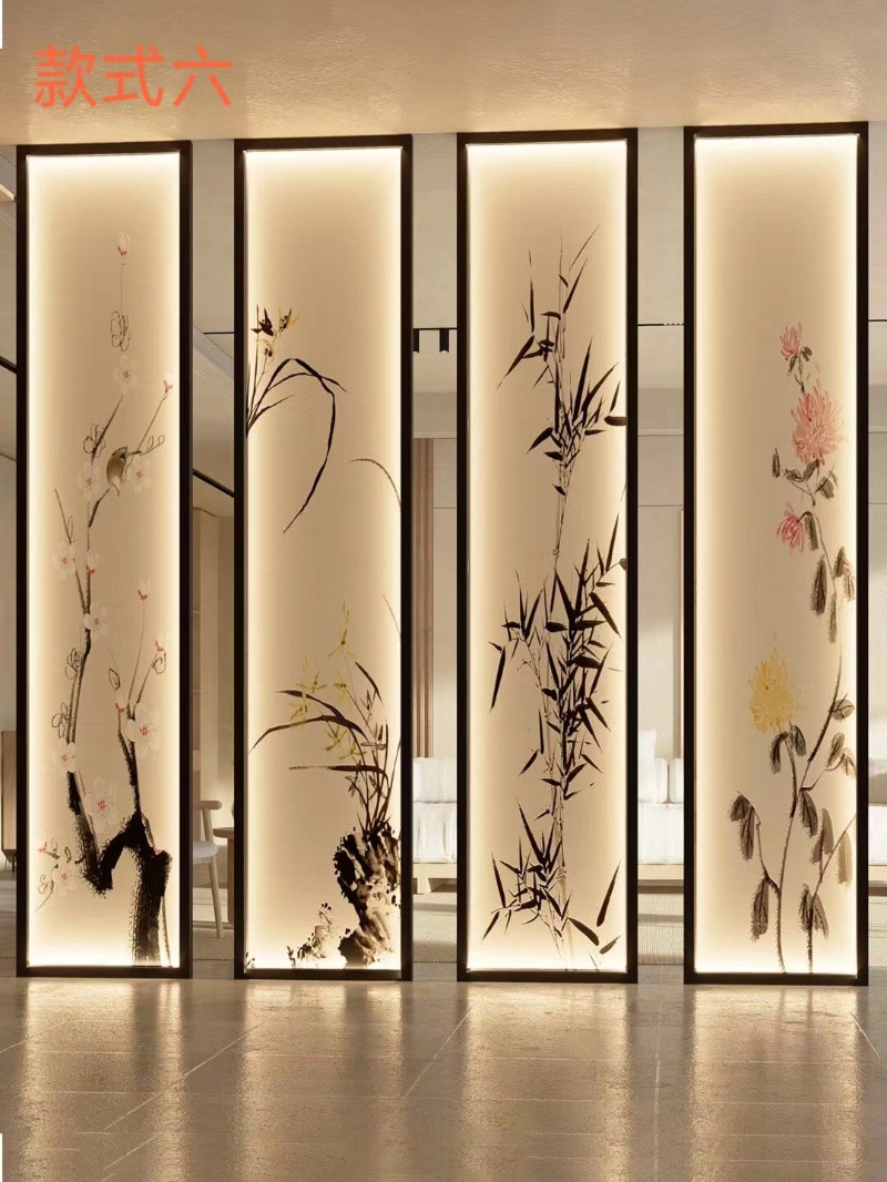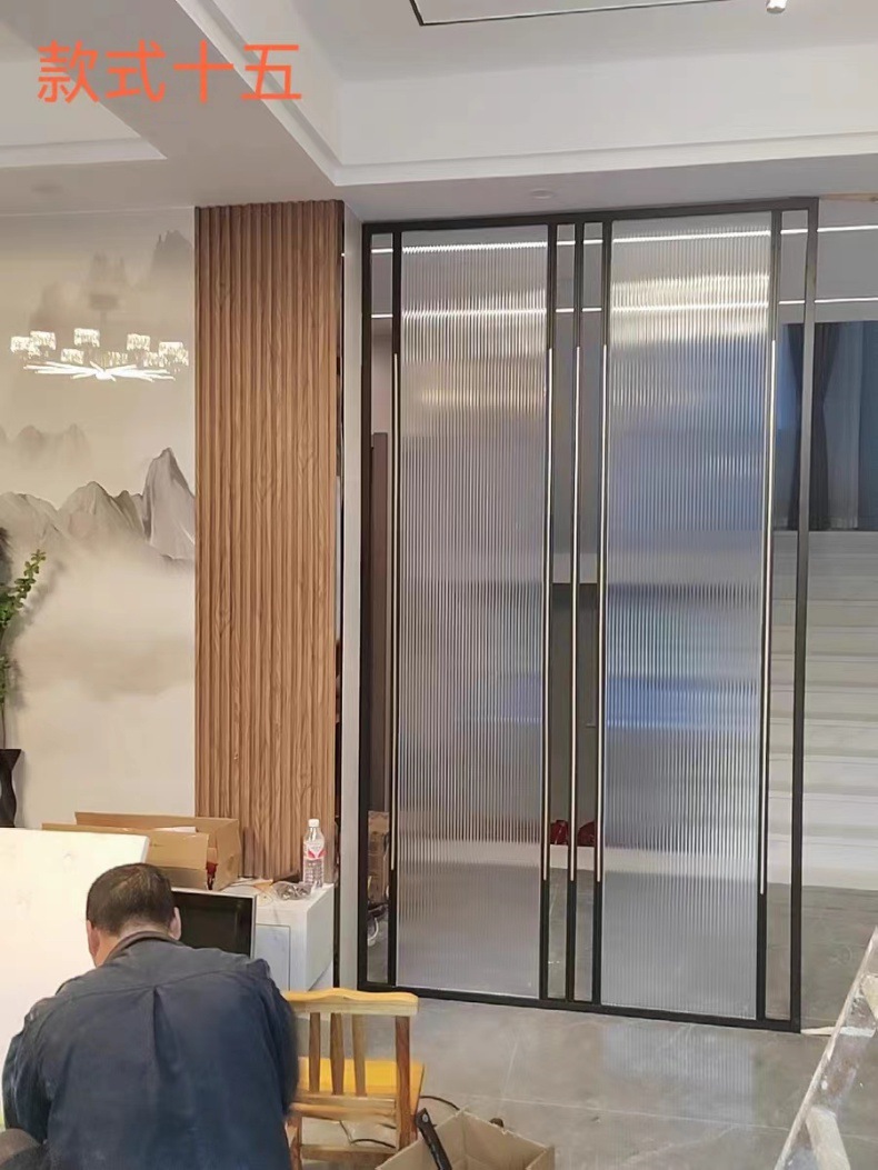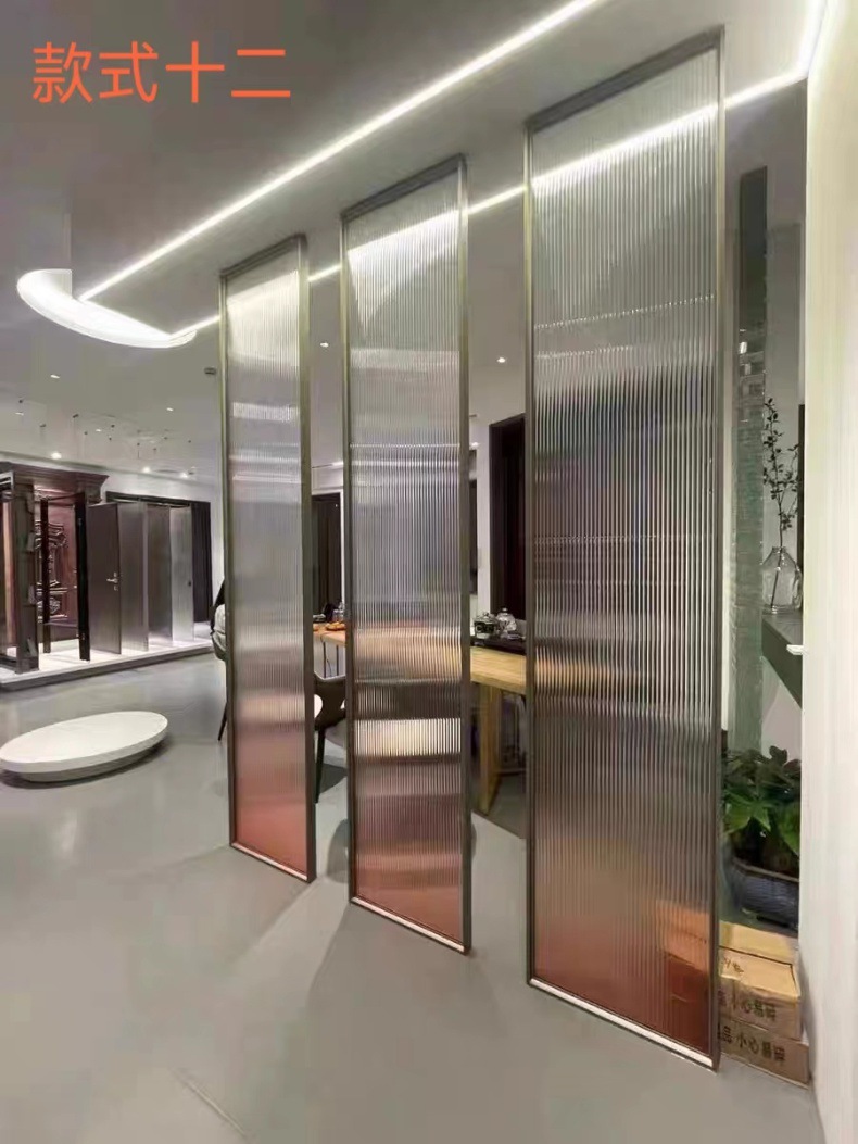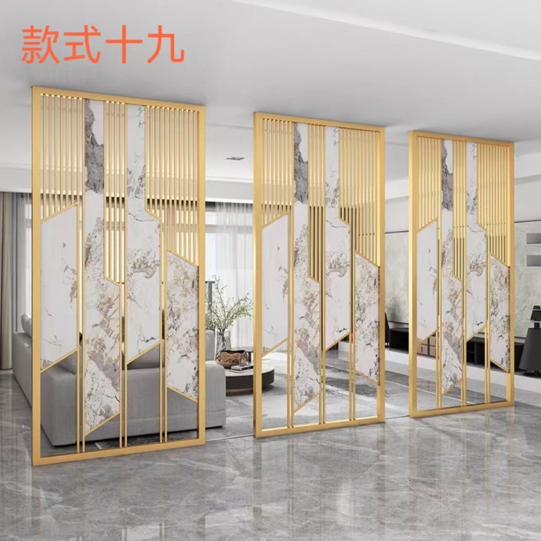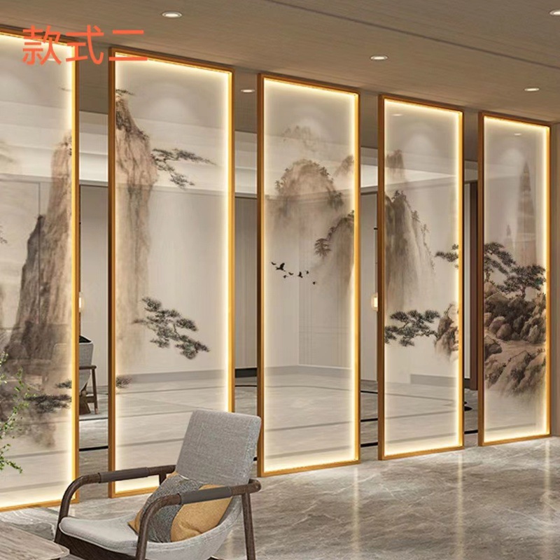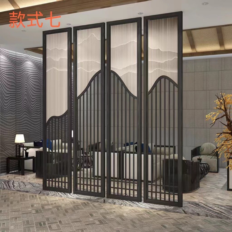현대 간단한 창홍 유리 스테인레스 스틸 스크린 파티션 중국 스타일 철 거실 입구 복도 벽