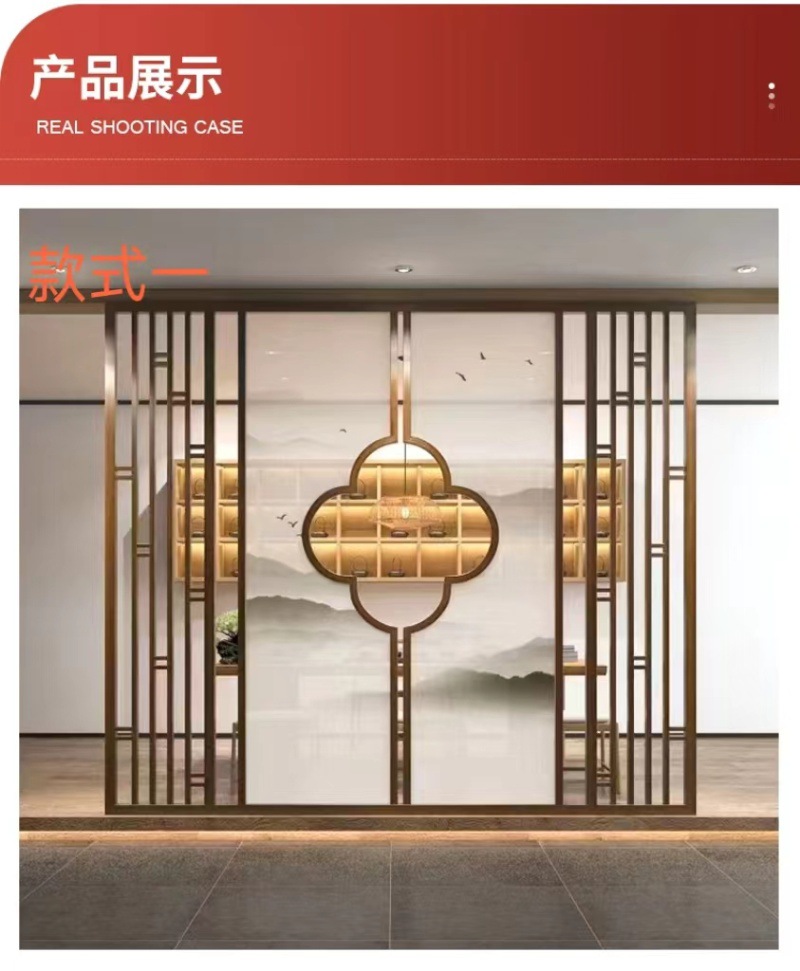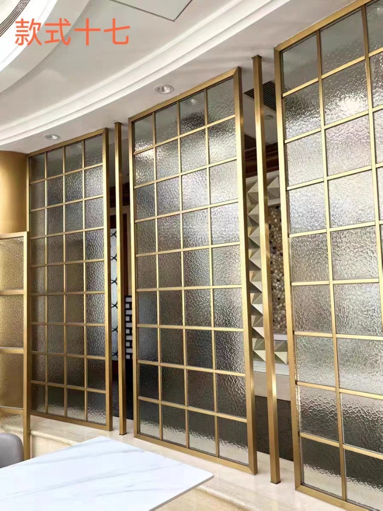 현대 간단한 창홍 유리 스테인레스 스틸 스크린 파티션 중국 스타일 철 거실 입구 복도 벽스토어 가기