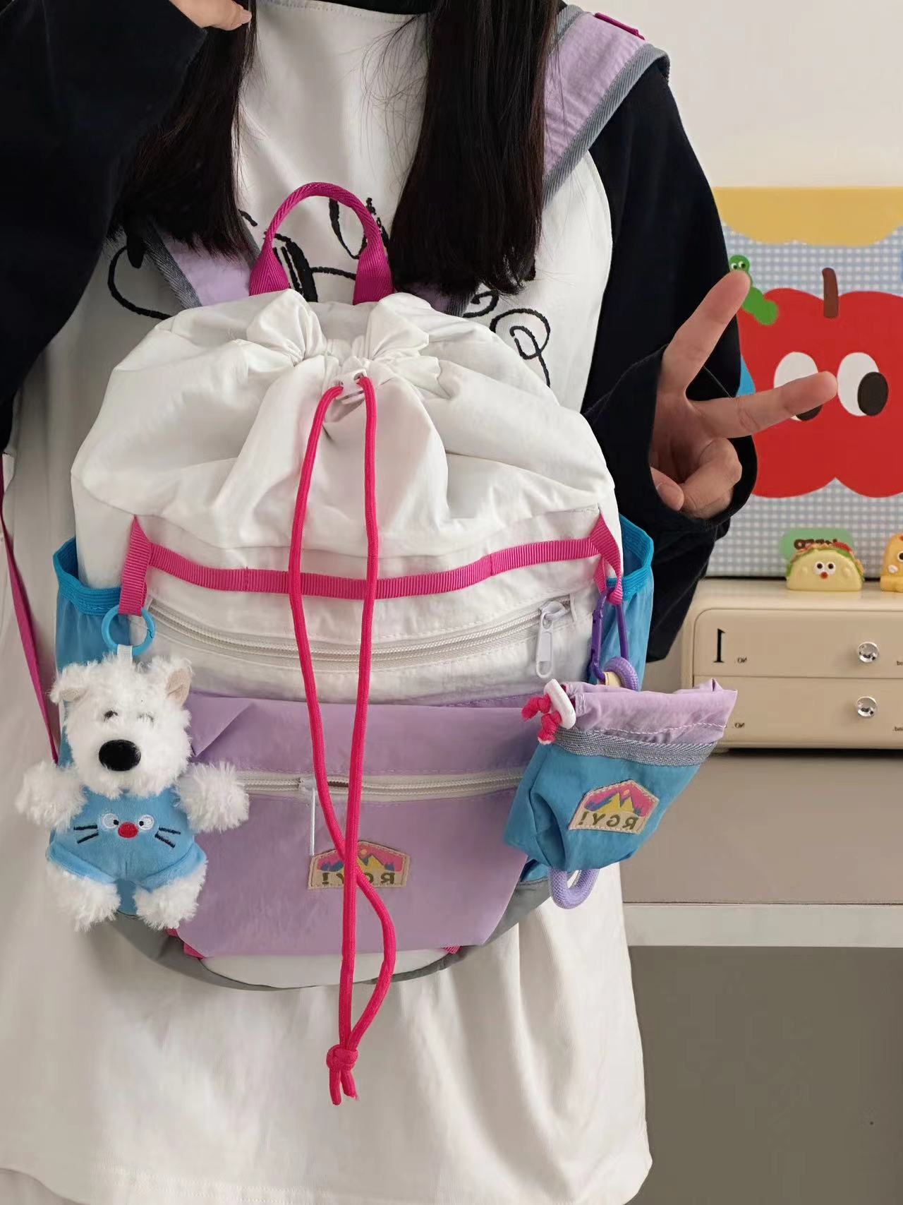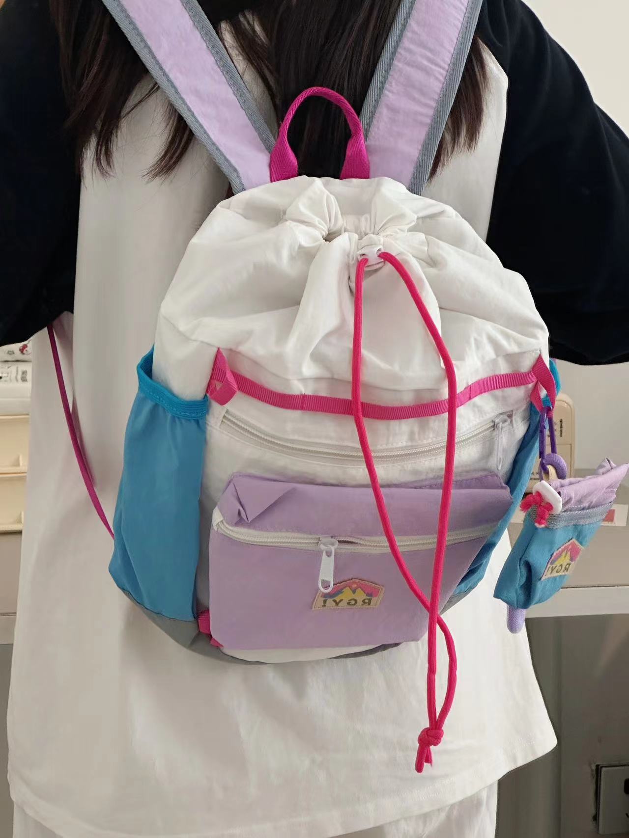 유색 소녀 여름 퍼지 경량 여행 작은 배낭 야외 스포츠 가방 작은 배낭 여성