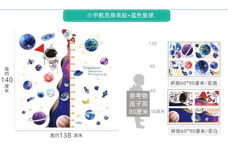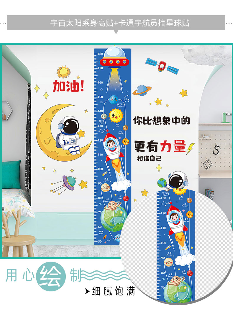 • 우주 태양계 높이 스티커 + 만화 우주 비행사 행성 발췌 스티커 [결합 및 매칭이 더 효율적입니다]