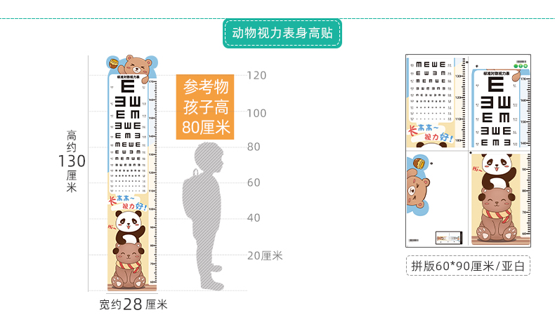 • 동물 시력표 높이 스티커 [점장님이 권장하는 키와 시력 측정 가능, 한 가지에 두 가지