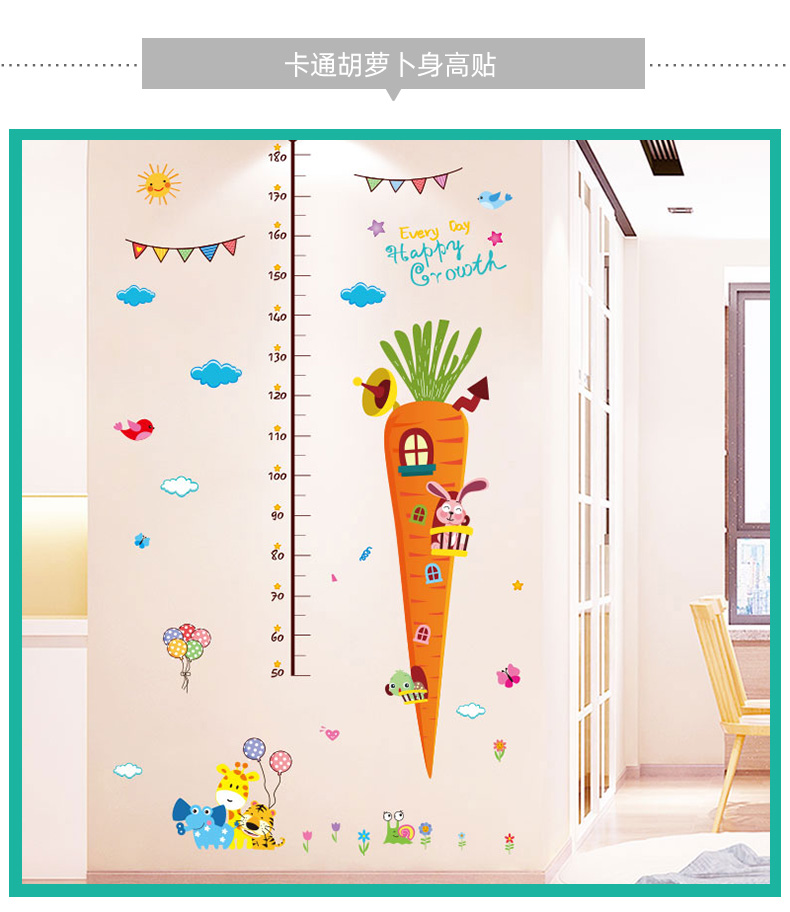 어린이 방 레이아웃 벽 장식 높이 종이 통치자 벽 스티커 만화 아기 침실 치수 측정스토어 가기