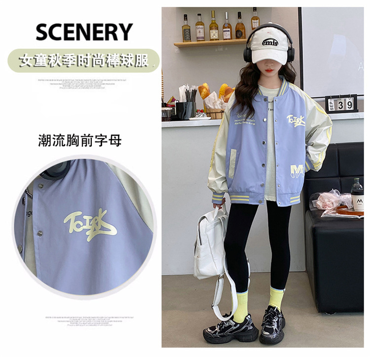 소녀의 가을 2024 새로운 코트 어린이 여성의 가을 인터넷-유명한 재킷 소녀의 봄과 가을 서양식 야구 세트스토어 가기