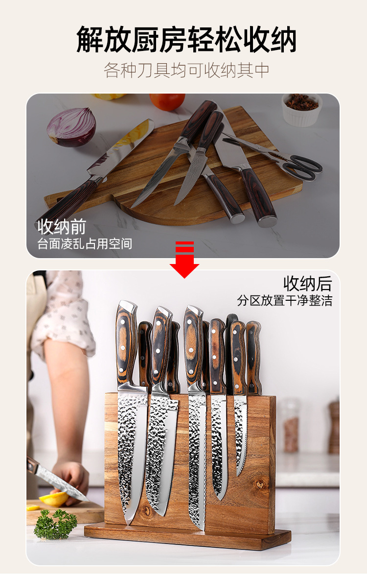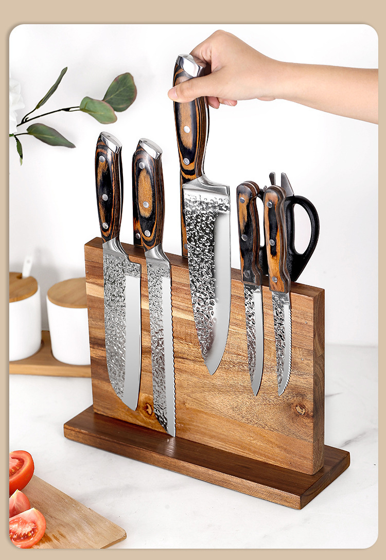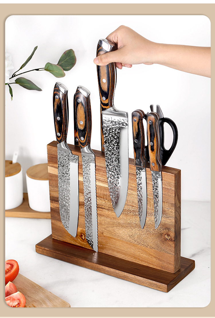 주방 다기능 칼 홀더 자기 칼 홀더 양면 자기 나무 칼 홀더 주방 보관 부엌 칼 홀더