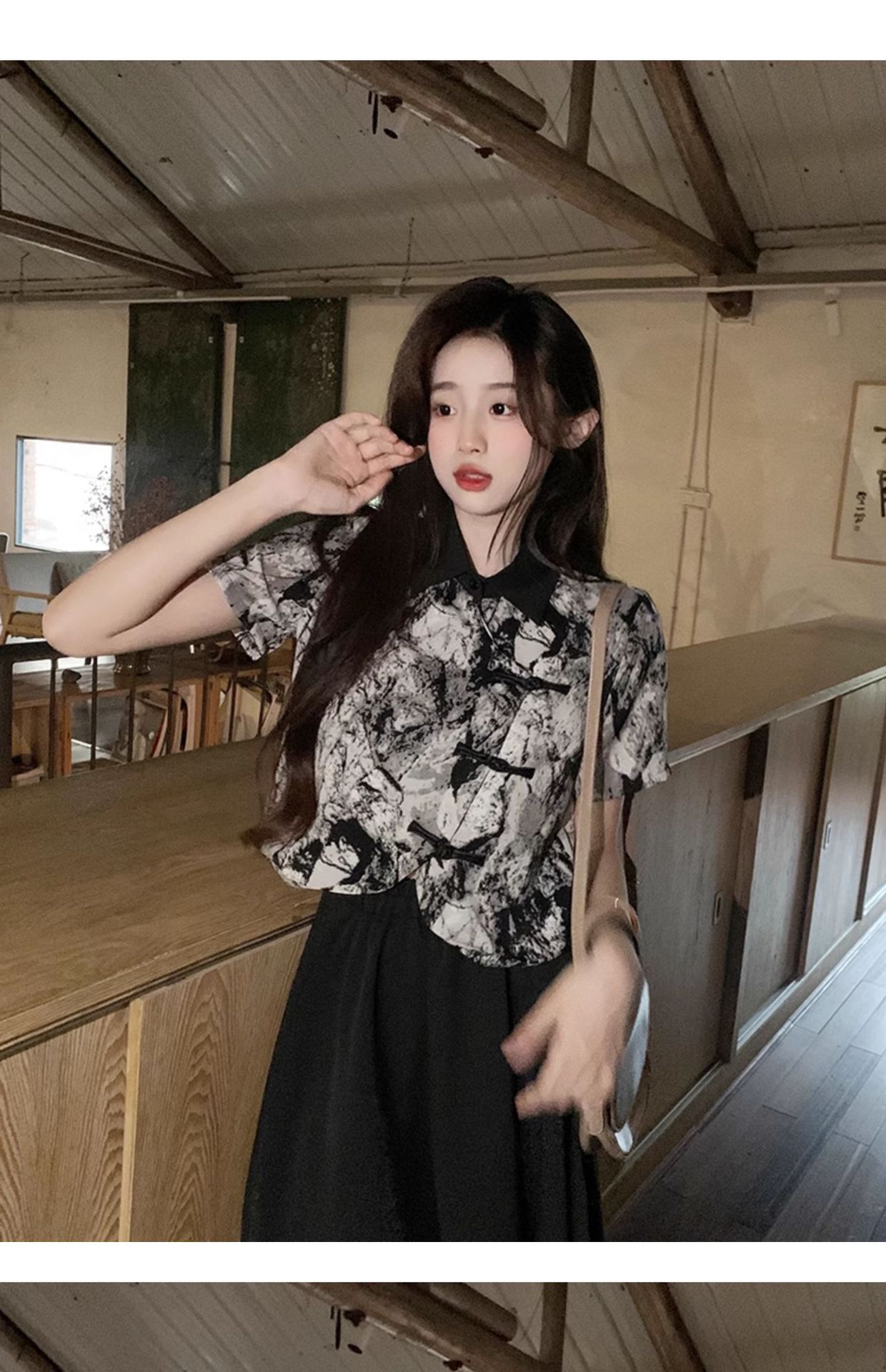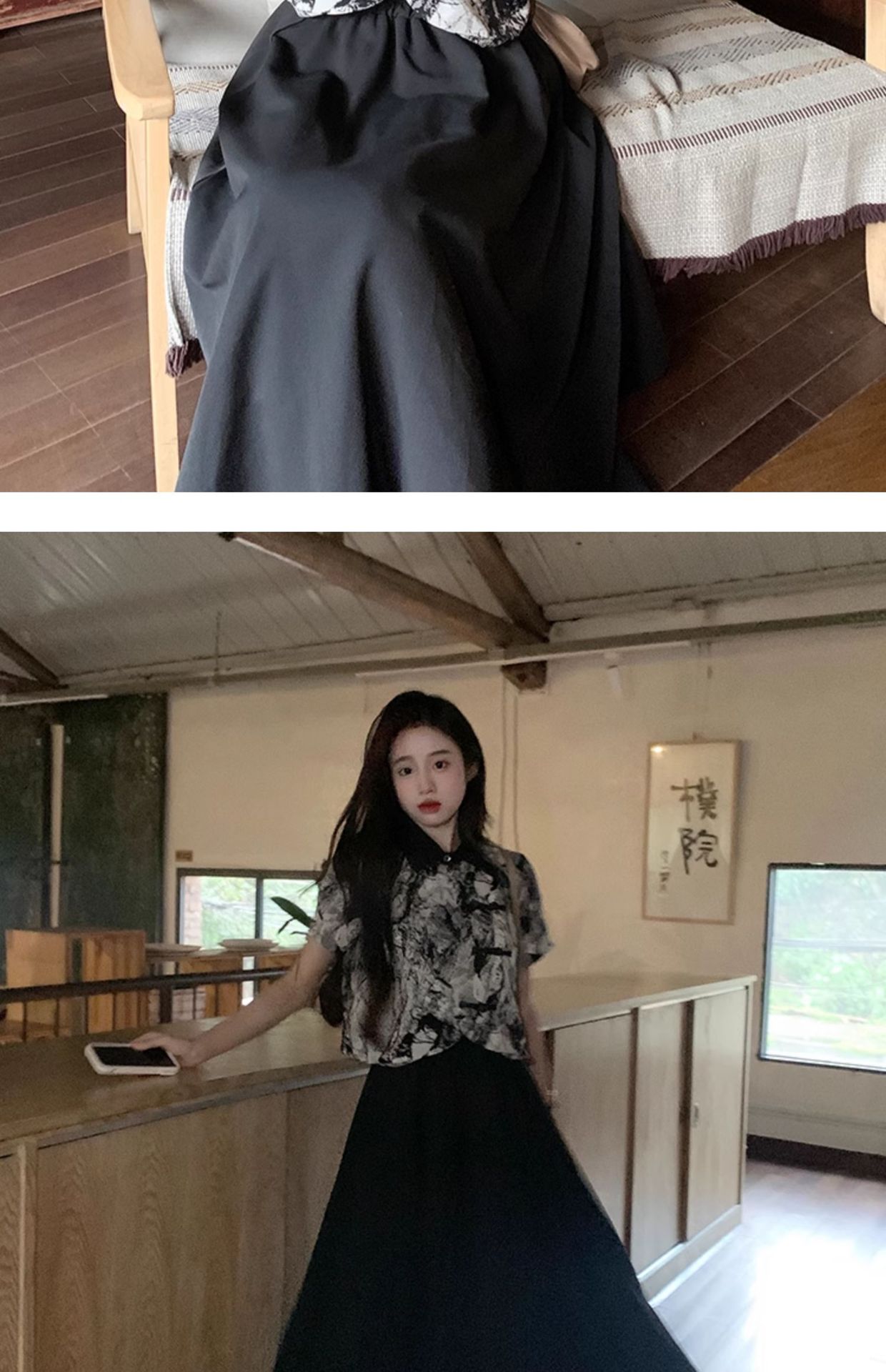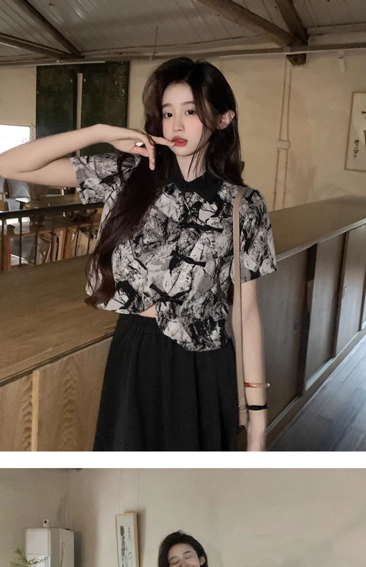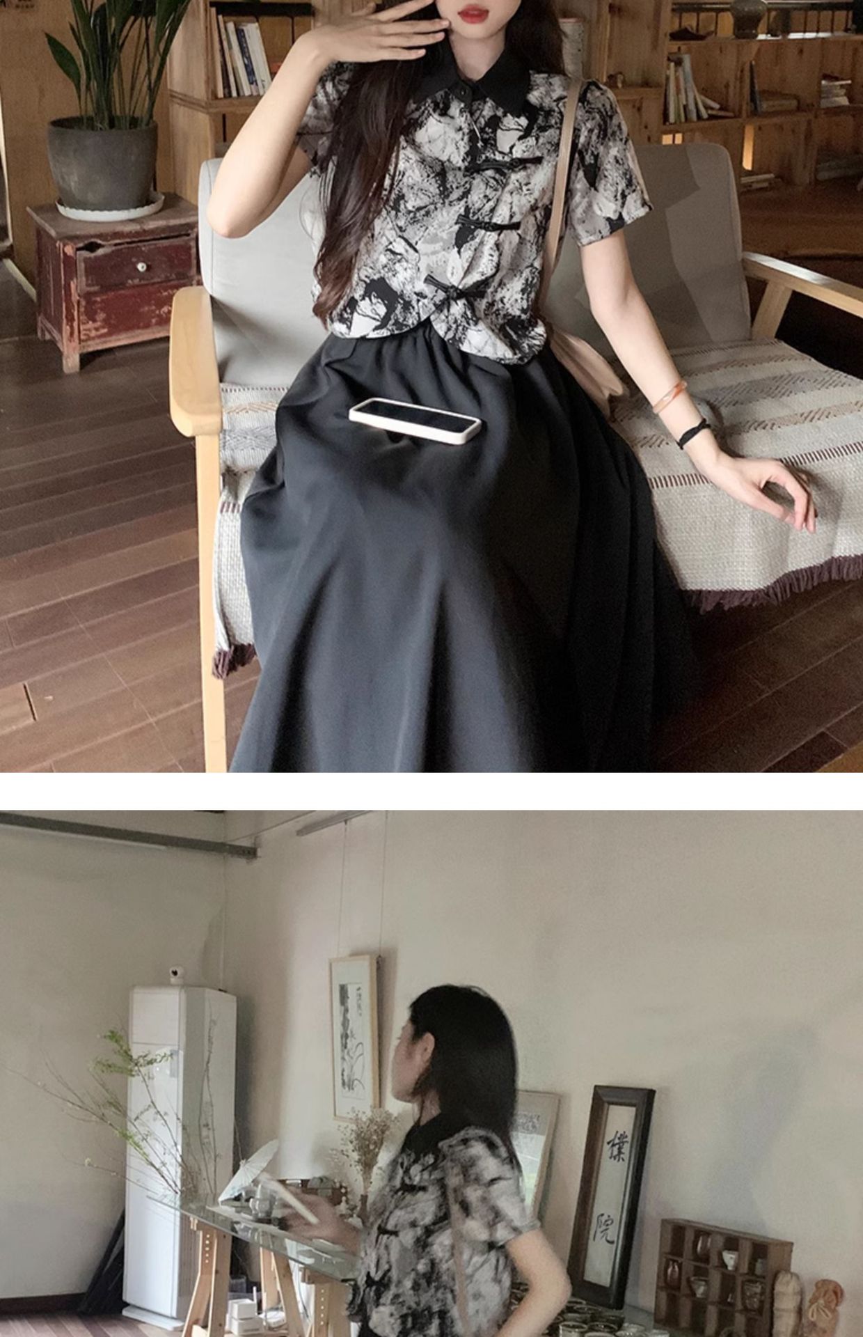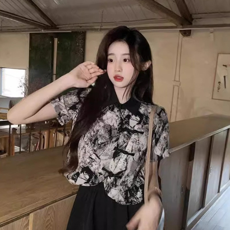 새로운 중국 스타일 버튼 짧은 셔츠 여성의 2024 새로운 봄 플러스 사이즈 통통녀 우아한 단단한 허리 스커트 투피스 세트스토어 가기