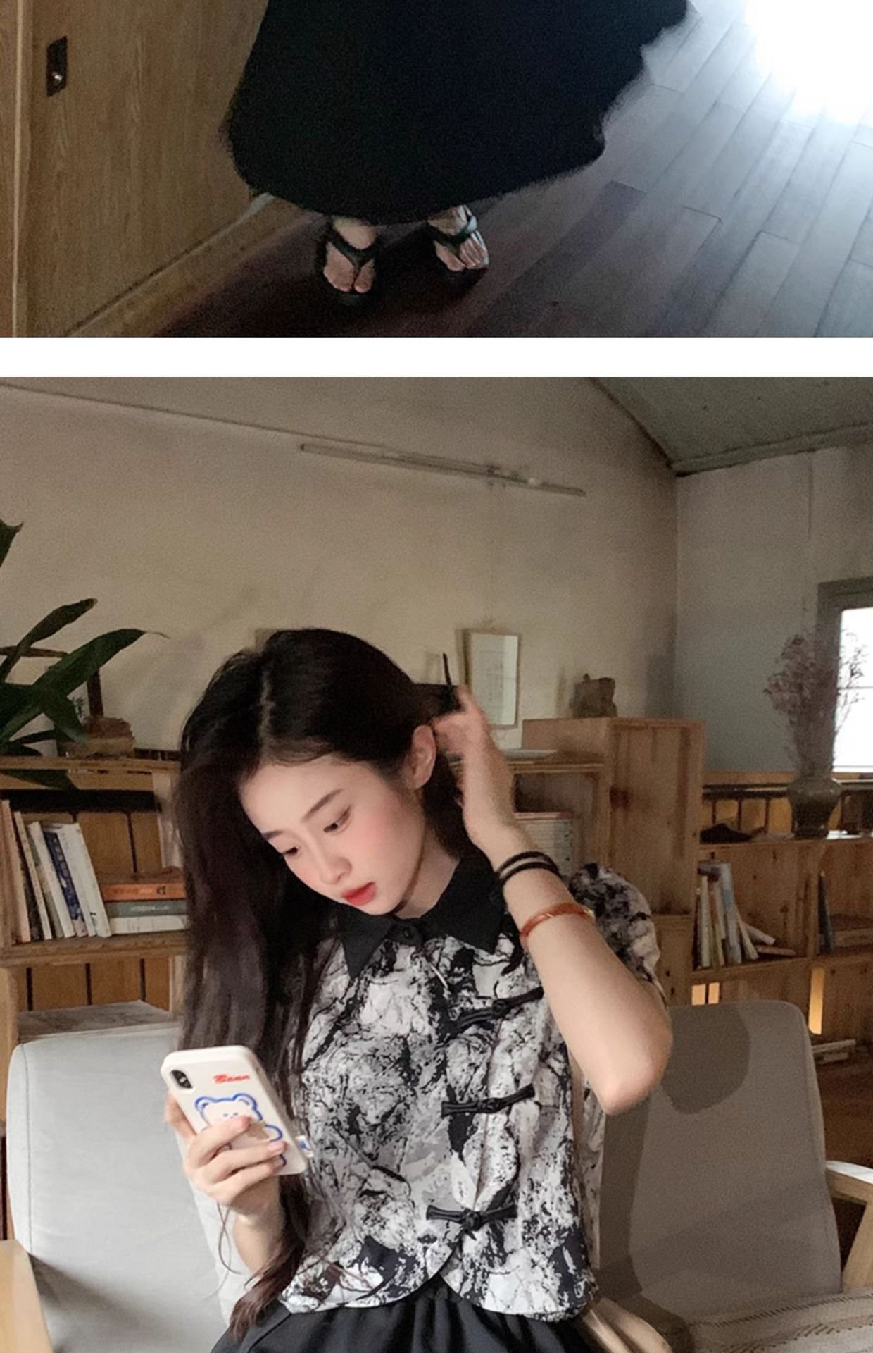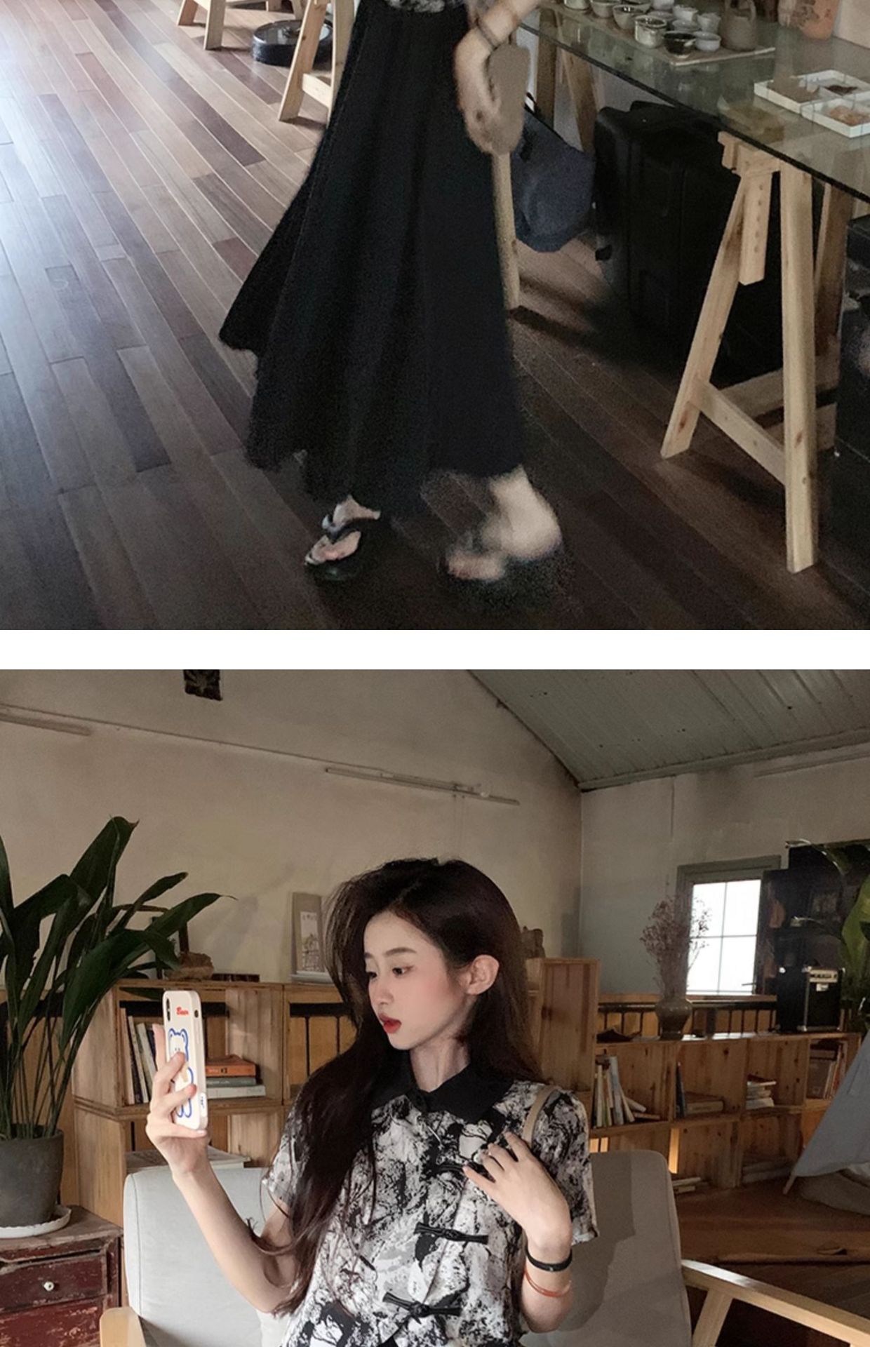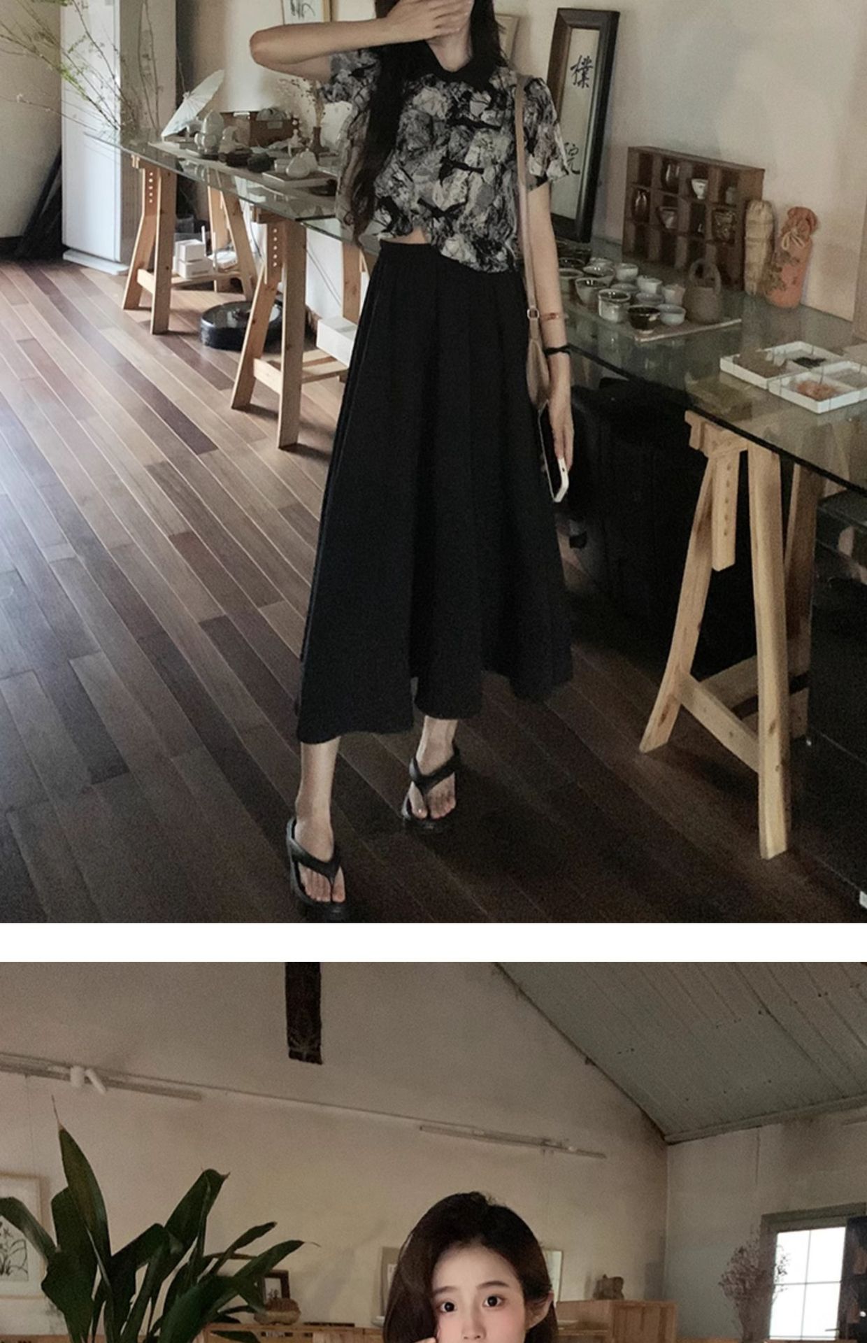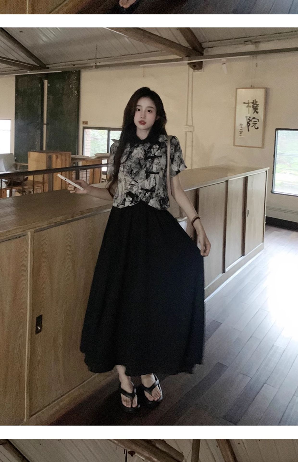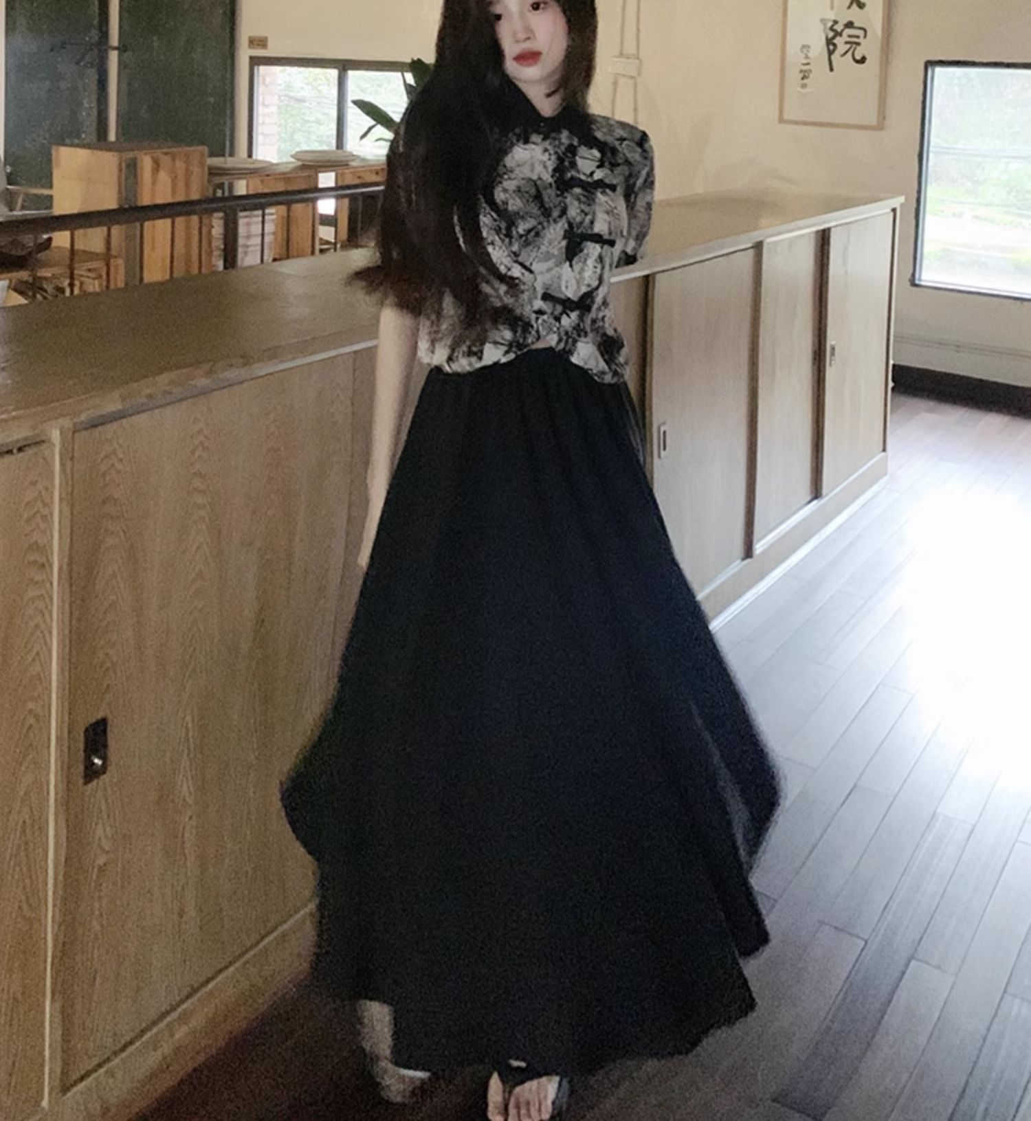 새로운 중국 스타일 버튼 짧은 셔츠 여성의 2024 새로운 봄 플러스 사이즈 통통녀 우아한 단단한 허리 스커트 투피스 세트스토어 가기
