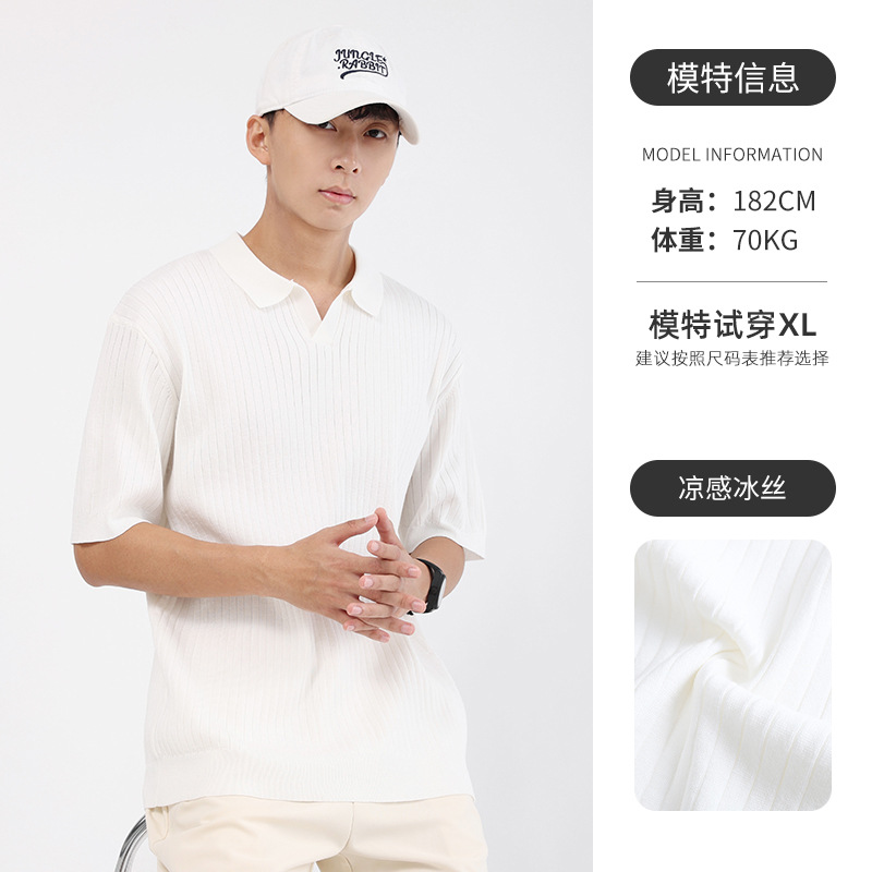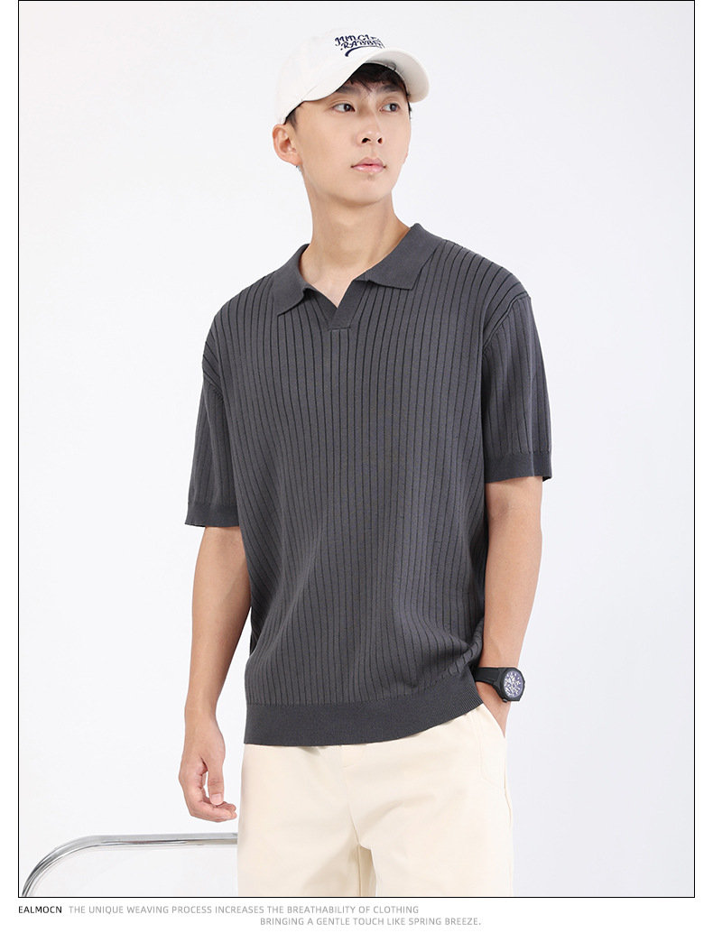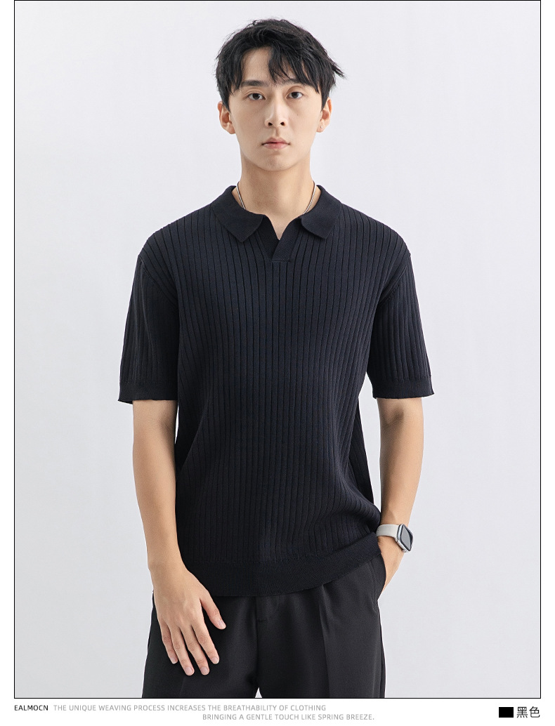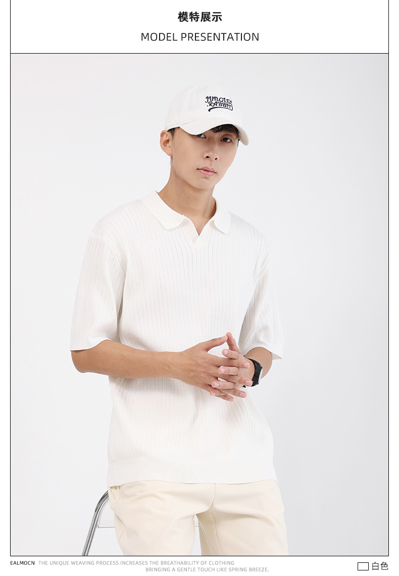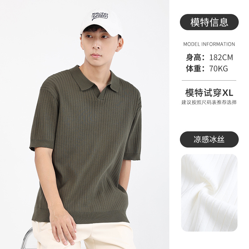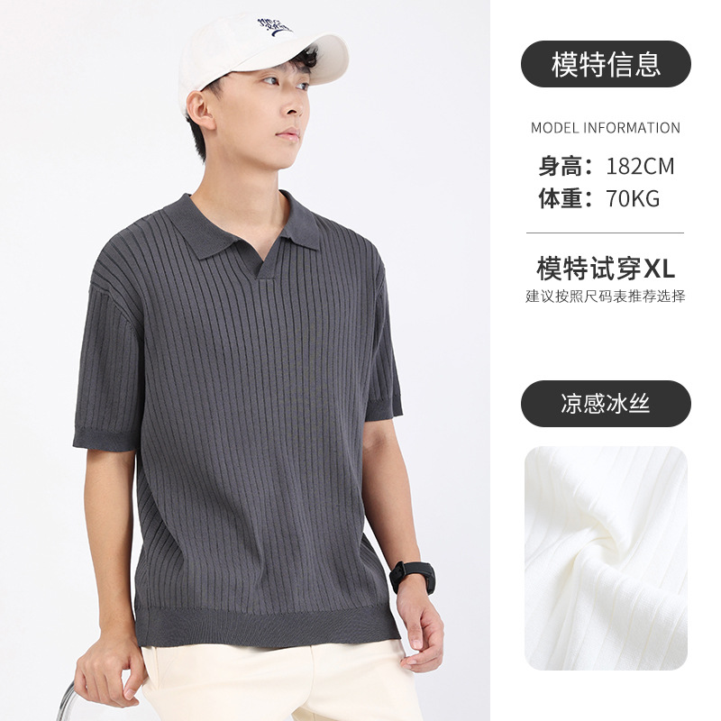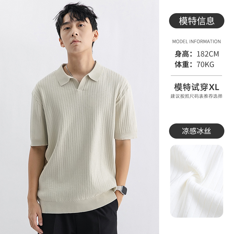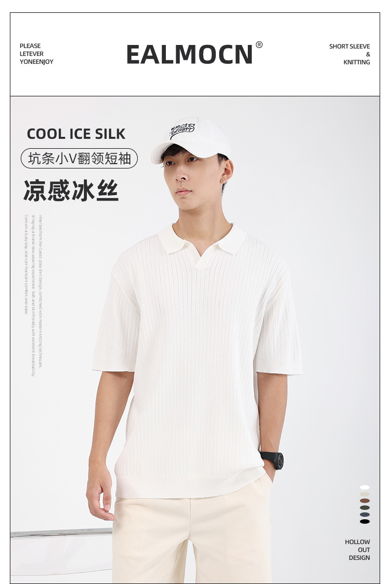 아이스 실크 반팔 니트 폴로 셔츠 남자 하이 엔드 엘 폴 여름 남자 V 넥 비즈니스 캐주얼 티셔츠 남성용스토어 가기