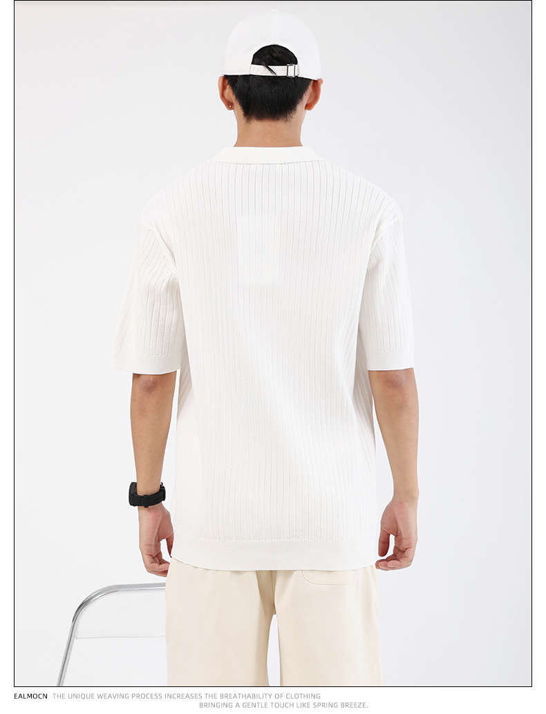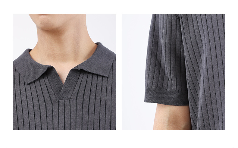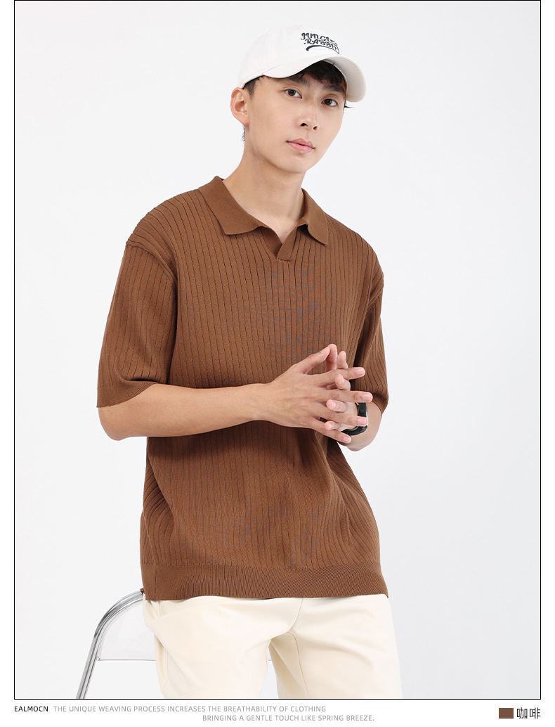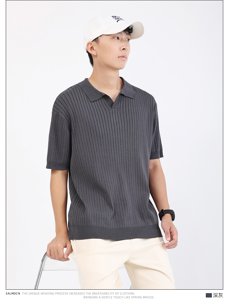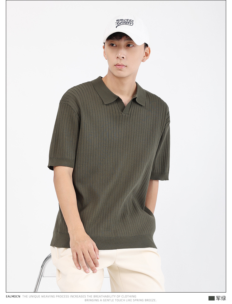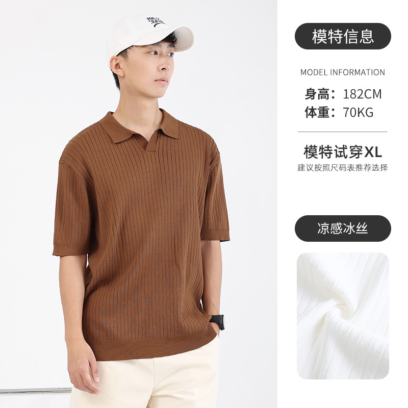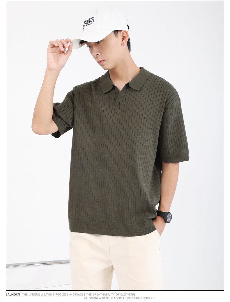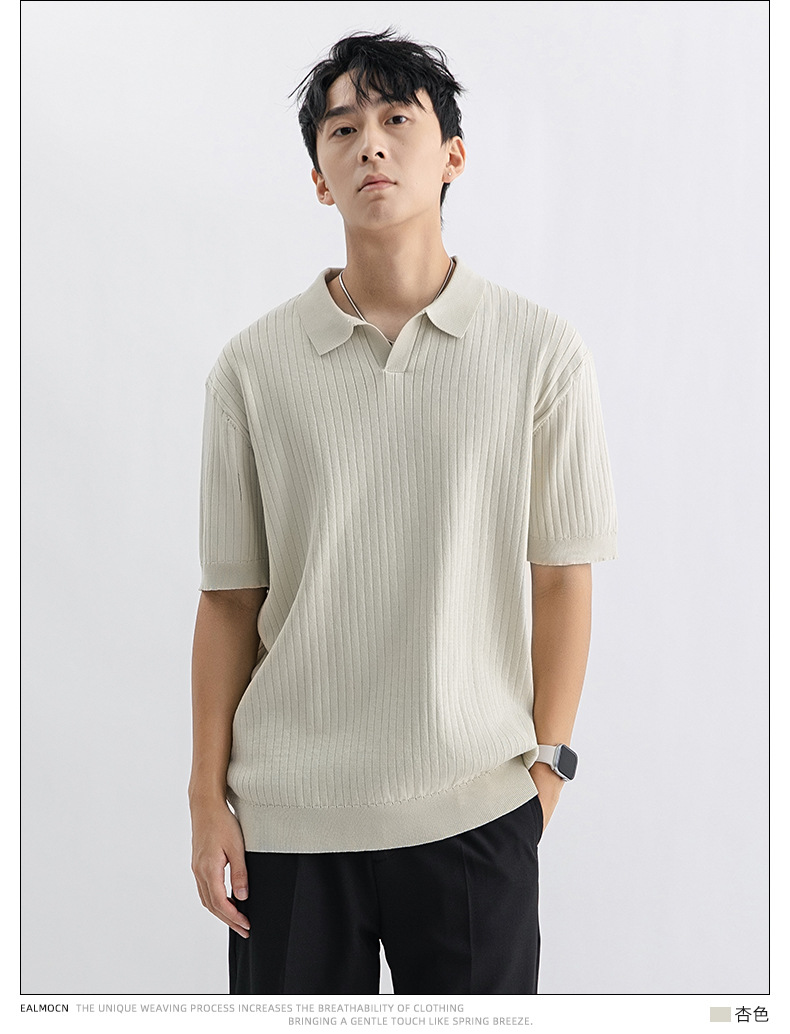 아이스 실크 반팔 니트 폴로 셔츠 남자 하이 엔드 엘 폴 여름 남자 V 넥 비즈니스 캐주얼 티셔츠 남성용스토어 가기
