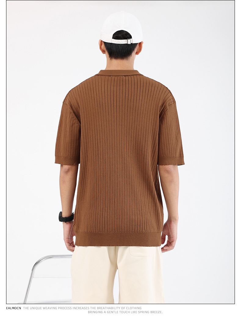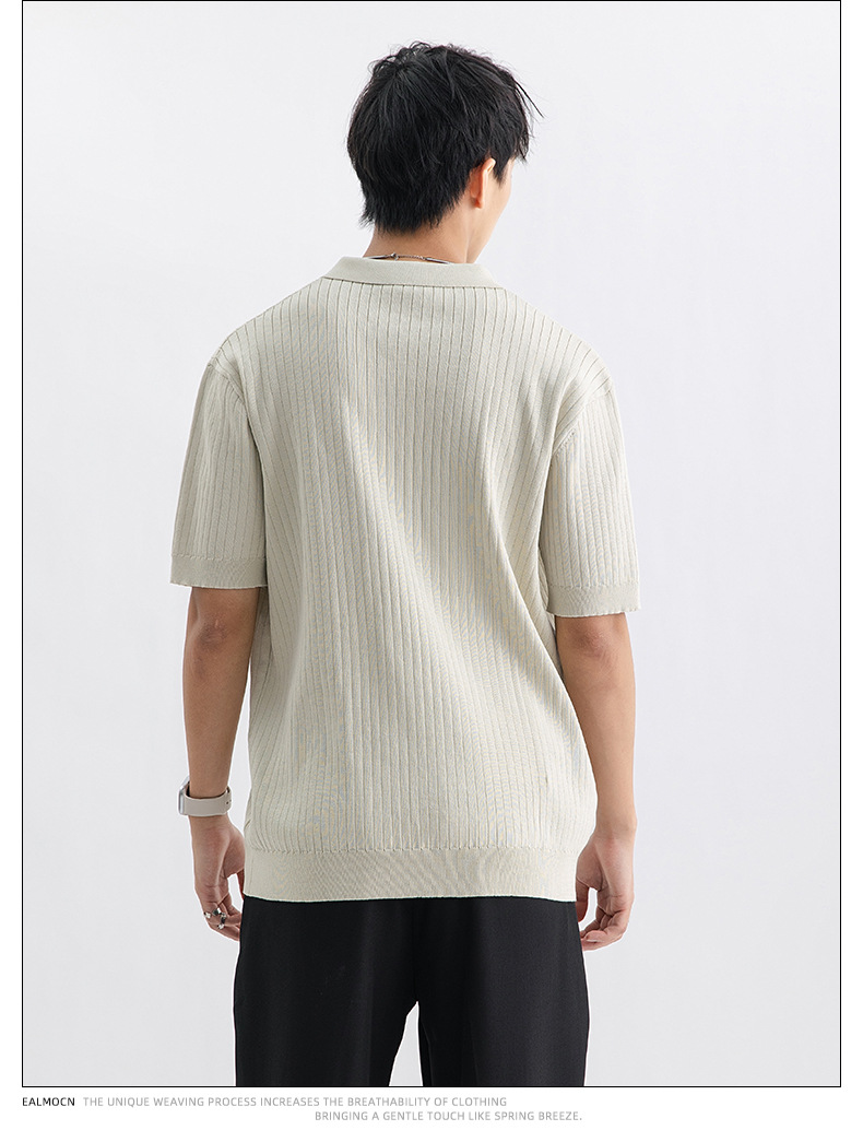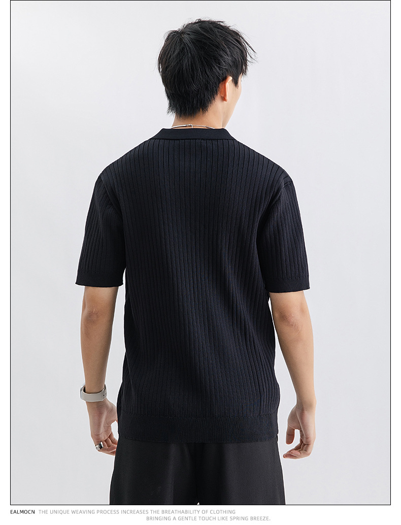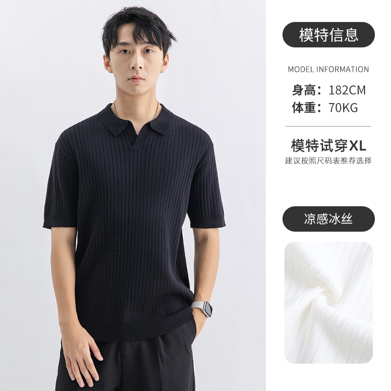아이스 실크 반팔 니트 폴로 셔츠 남자 하이 엔드 엘 폴 여름 남자 V 넥 비즈니스 캐주얼 티셔츠 남성용
