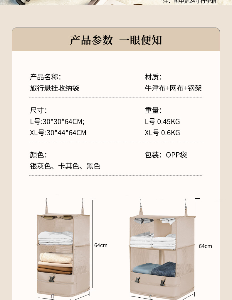 L规格:30*30*64cm;XL规格:30*44*64cm