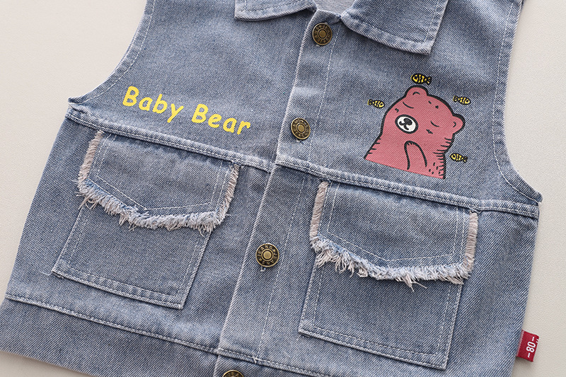 어린이 착용 소년 가을 착용 세트 2024 새로운 스타일 아기 봄 및 가을 스타일 데님 조끼 3 종 세트