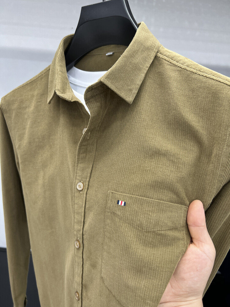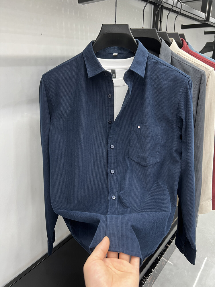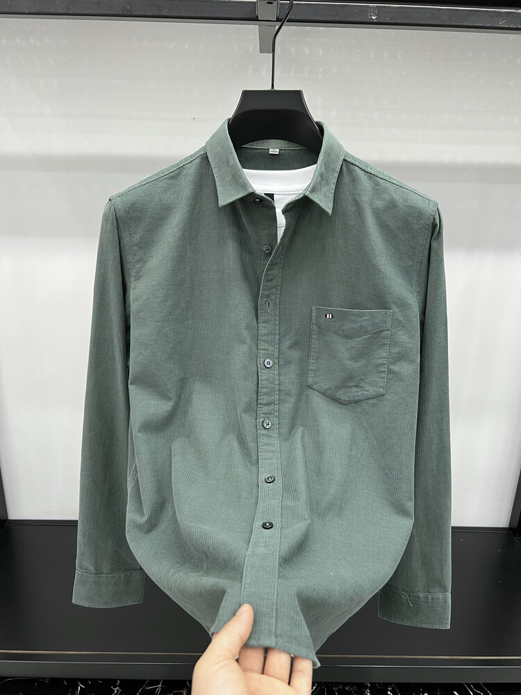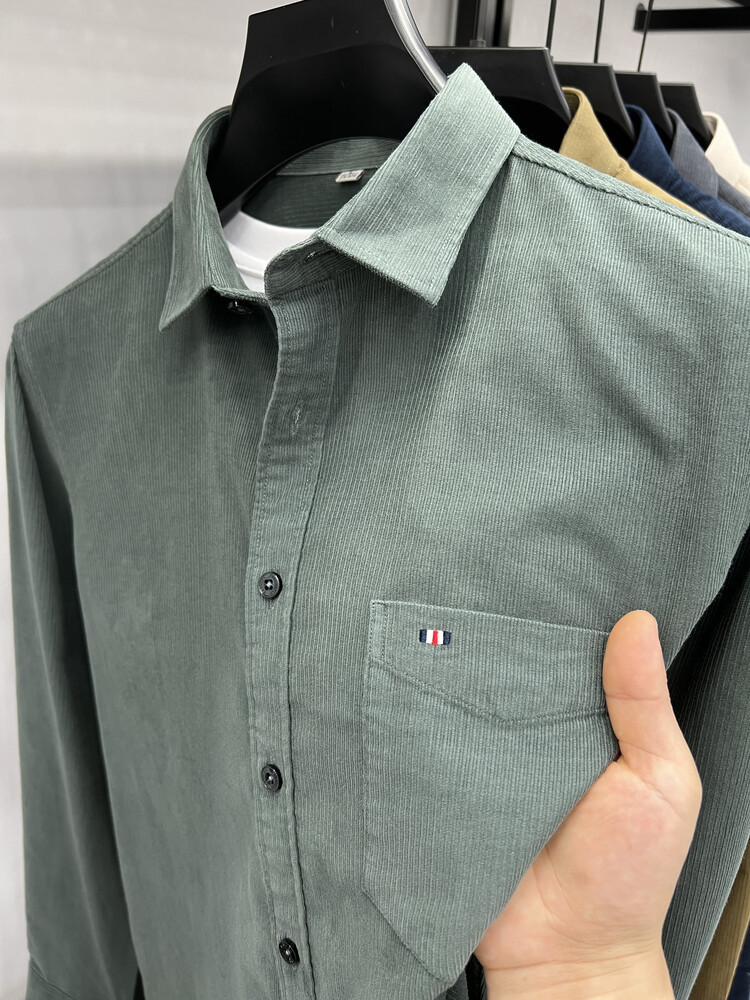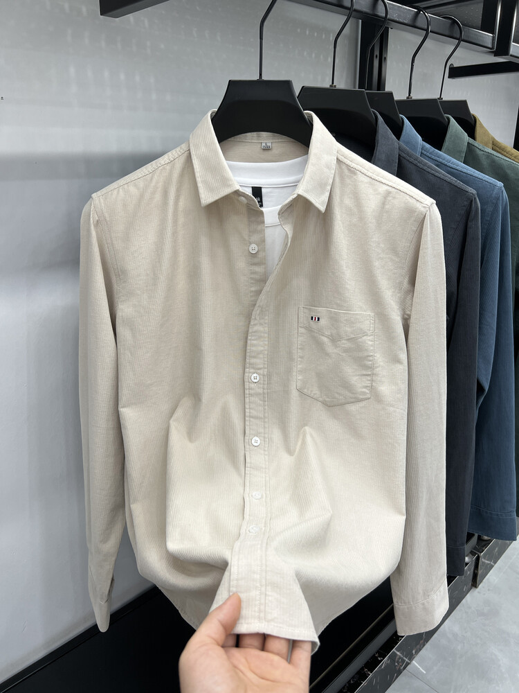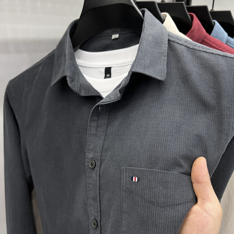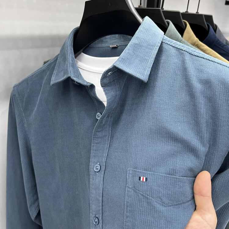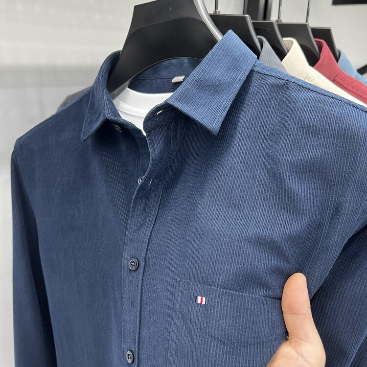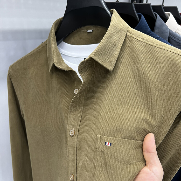 100 순면 코듀로이 리얼 포켓 남성용 긴 소매 셔츠 단색 캐주얼 가을 의류 트렌디 남성용 셔츠스토어 가기