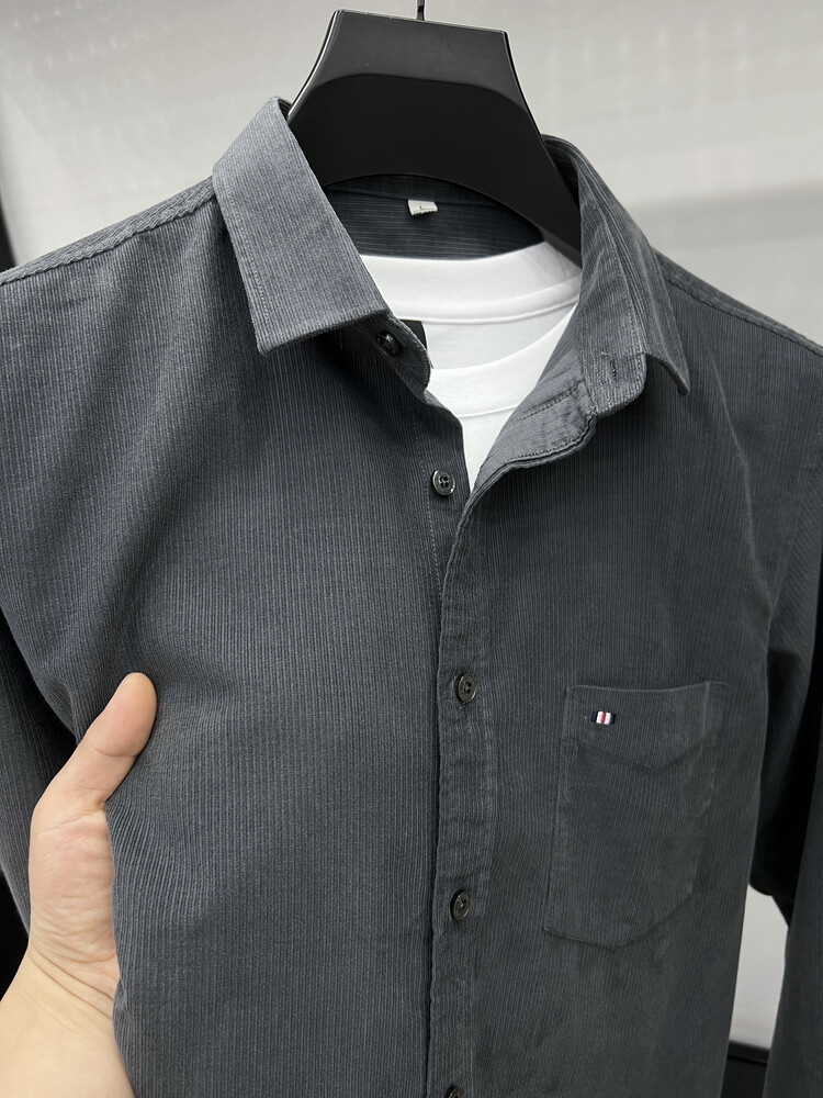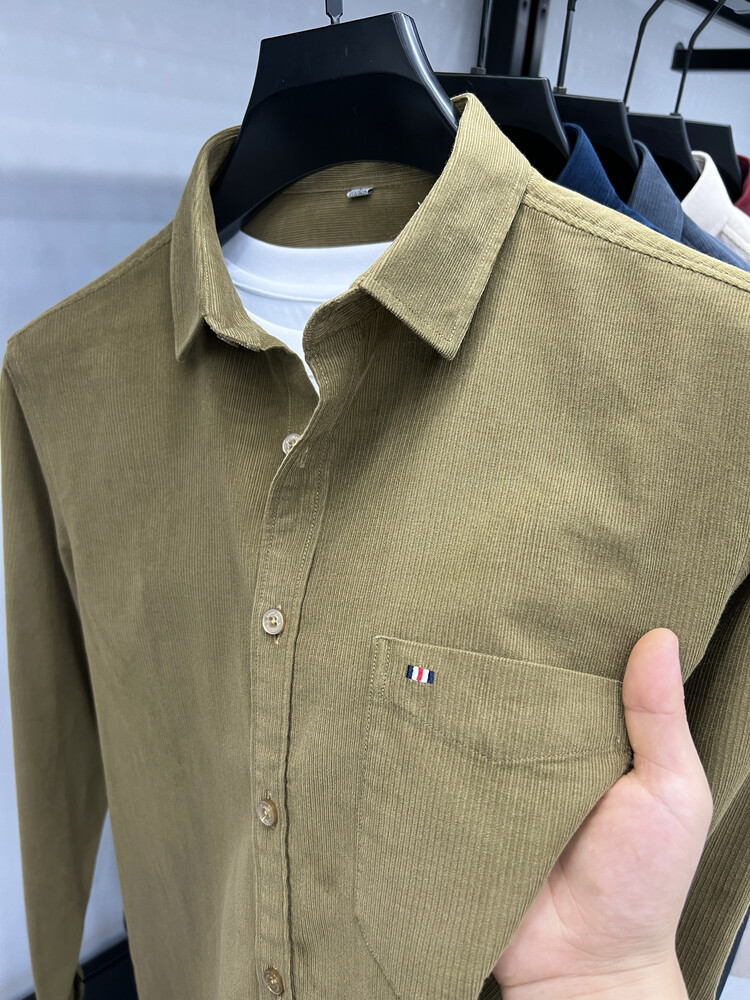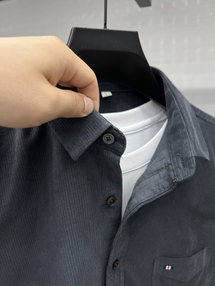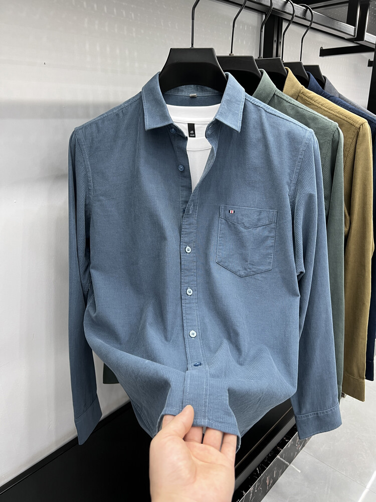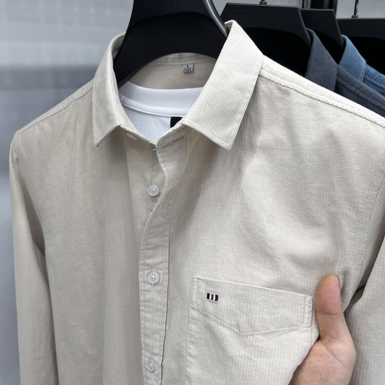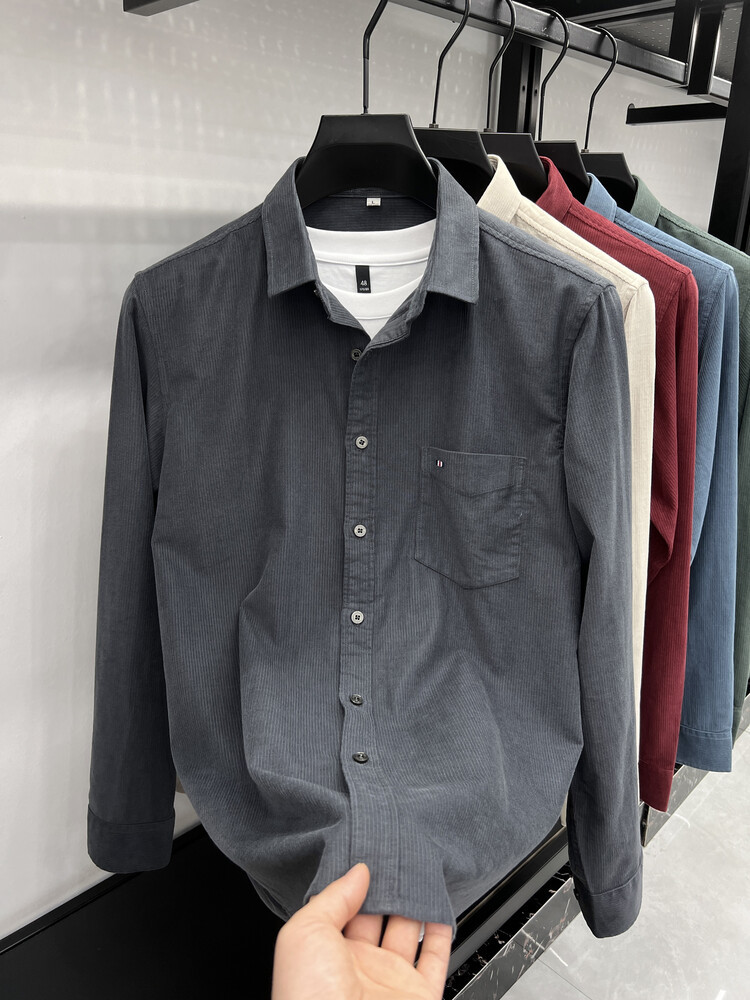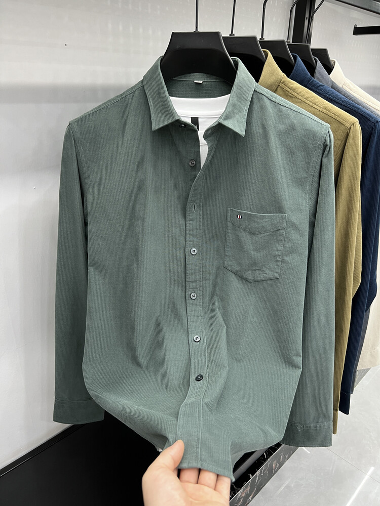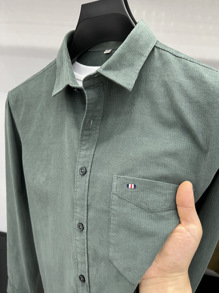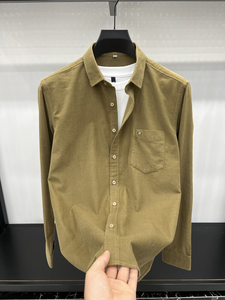 100 순면 코듀로이 리얼 포켓 남성용 긴 소매 셔츠 단색 캐주얼 가을 의류 트렌디 남성용 셔츠스토어 가기