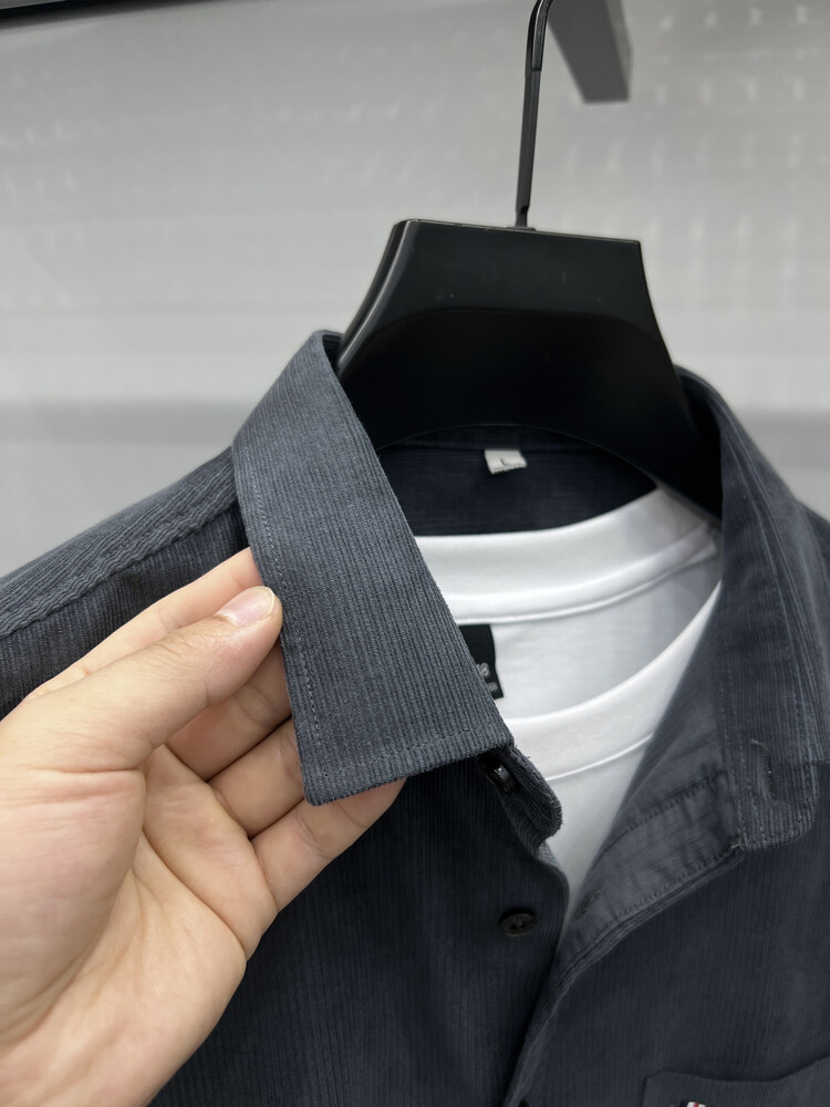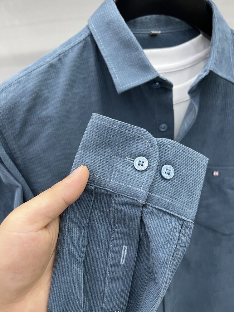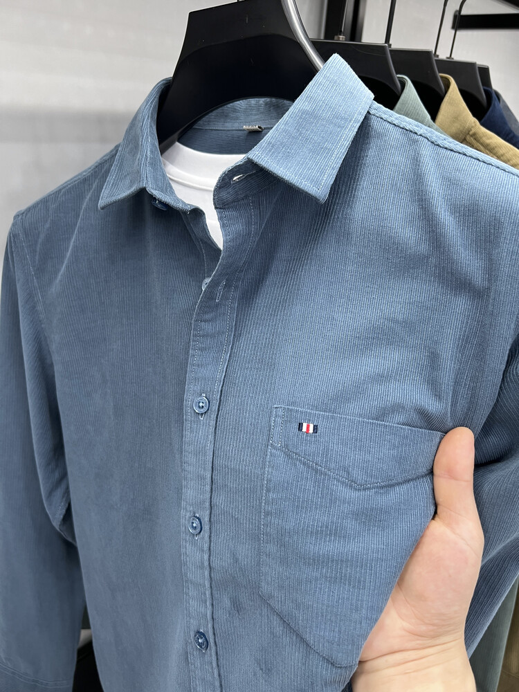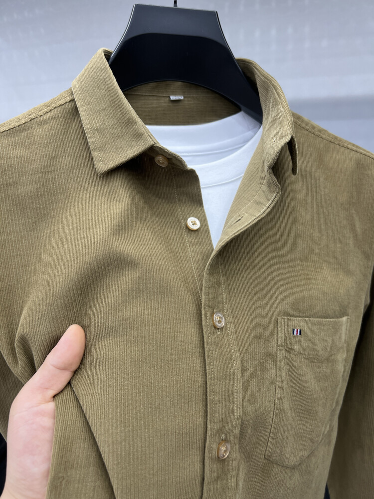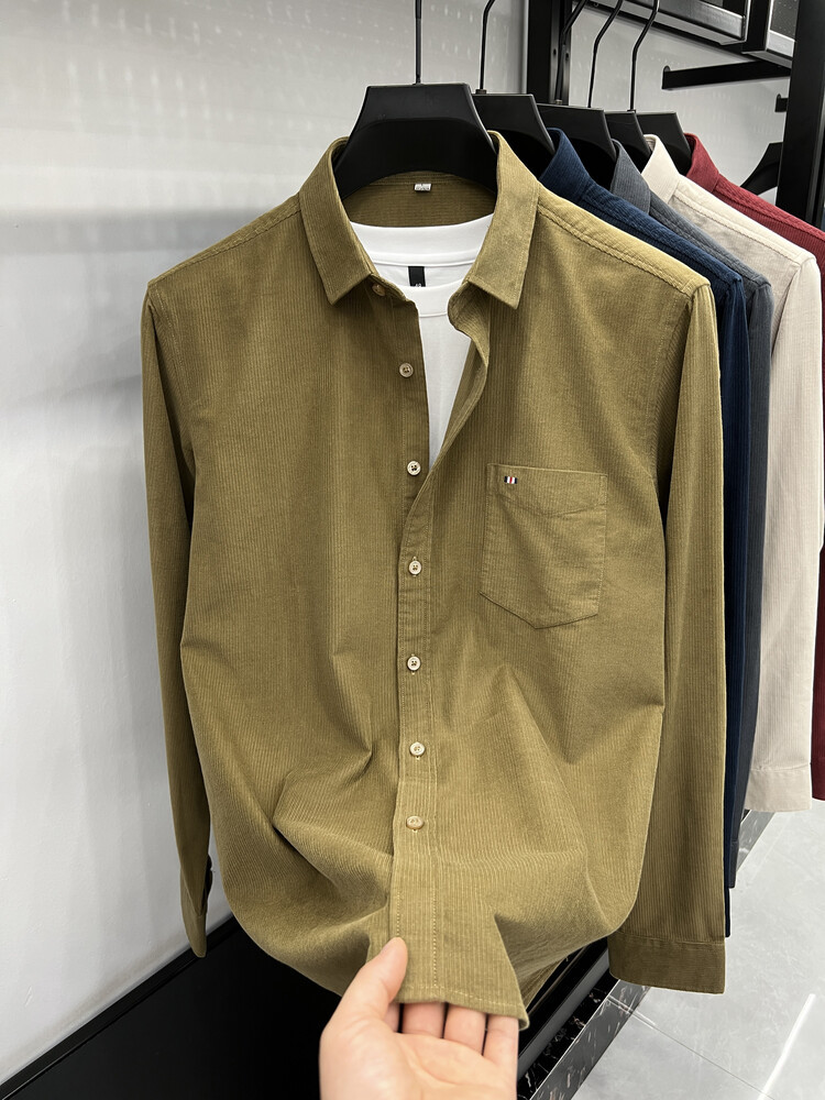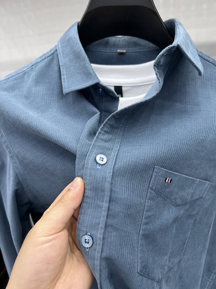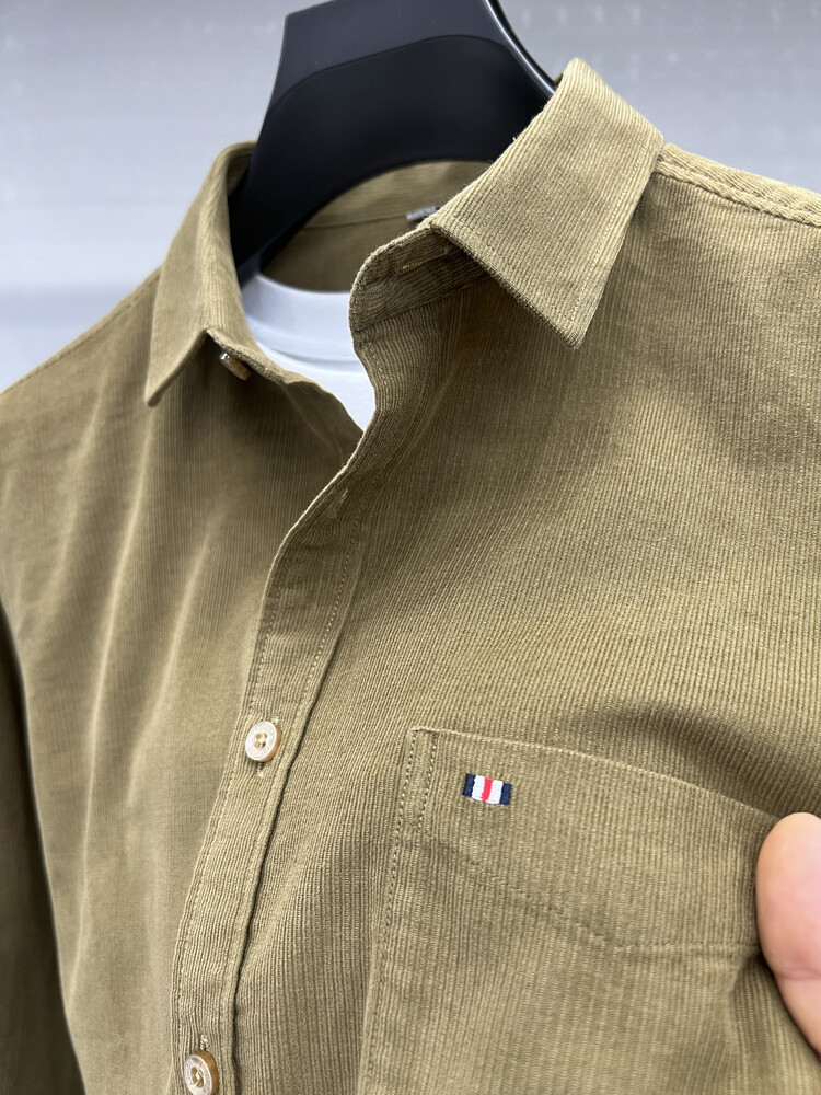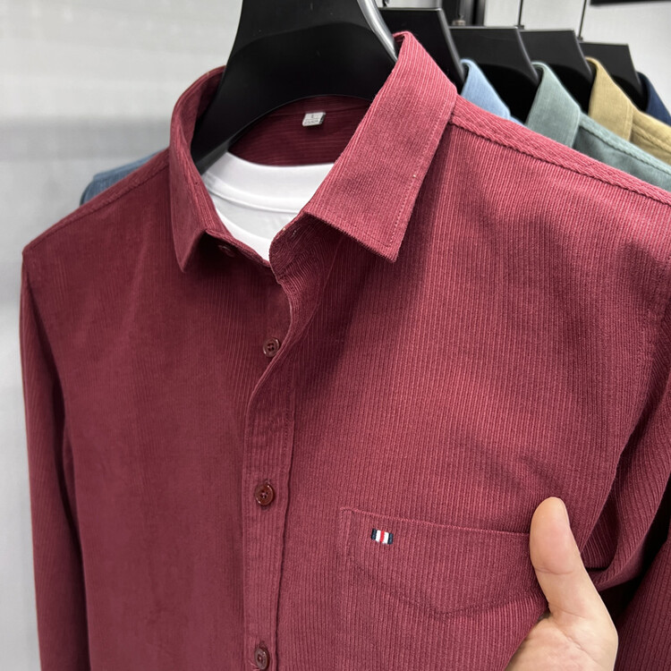 100 순면 코듀로이 리얼 포켓 남성용 긴 소매 셔츠 단색 캐주얼 가을 의류 트렌디 남성용 셔츠스토어 가기