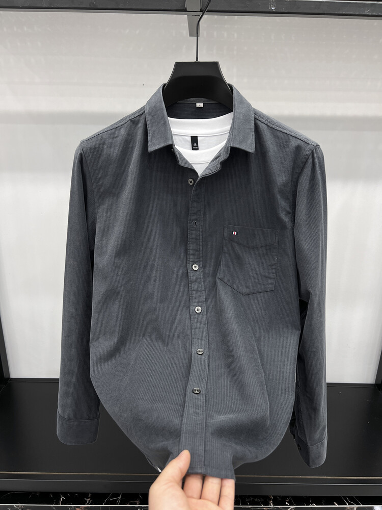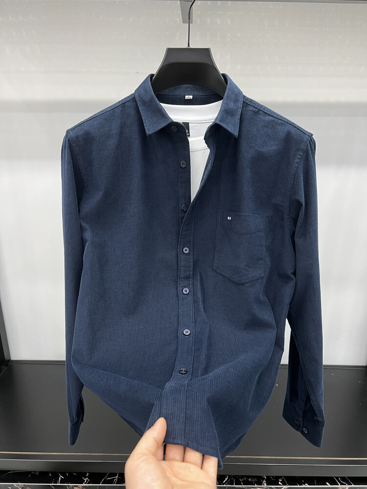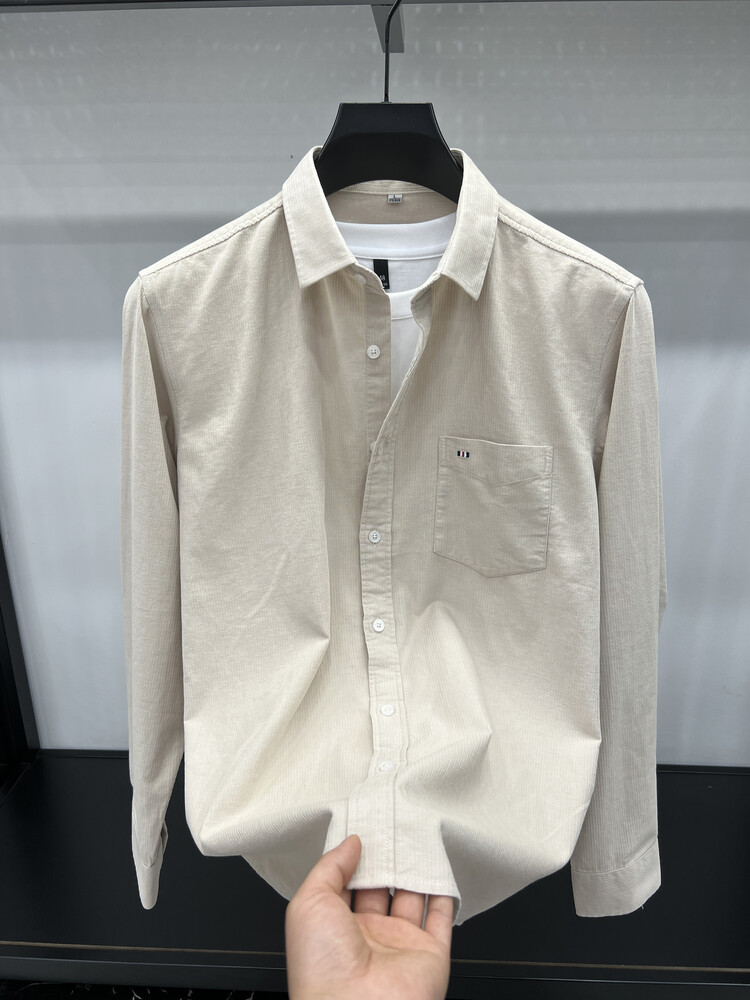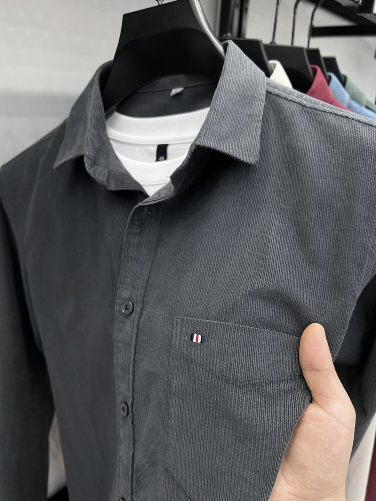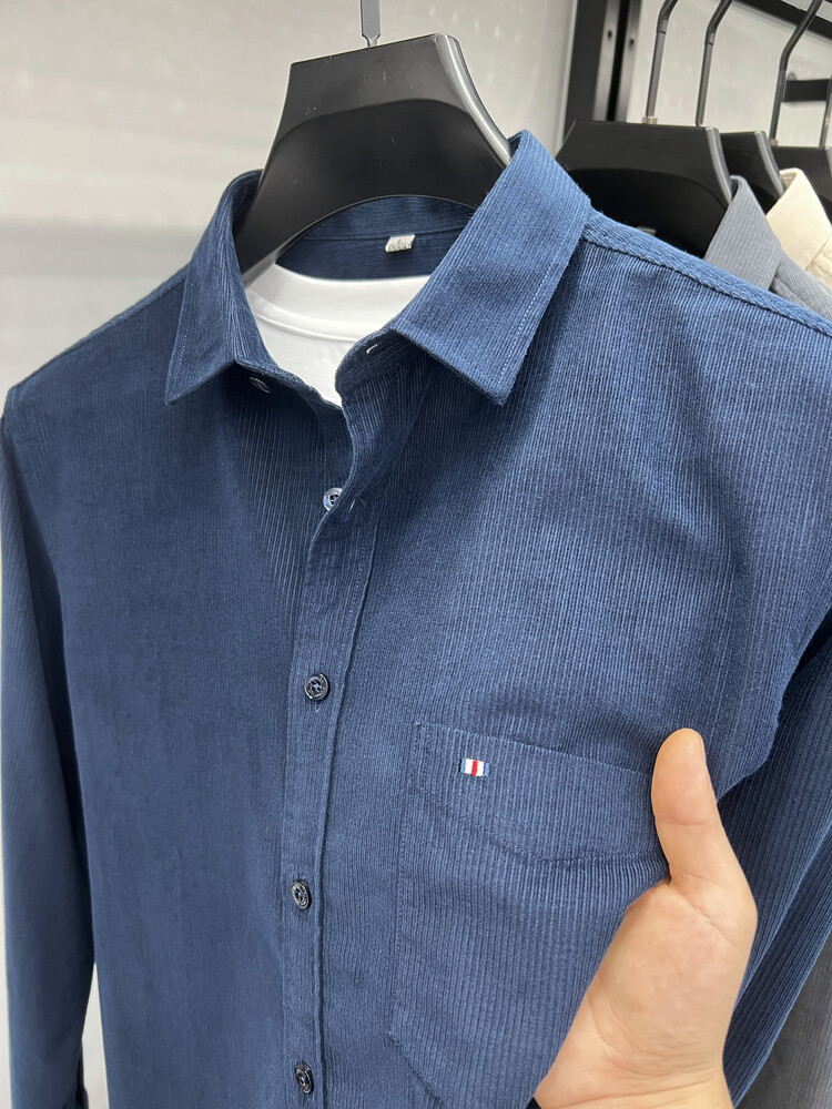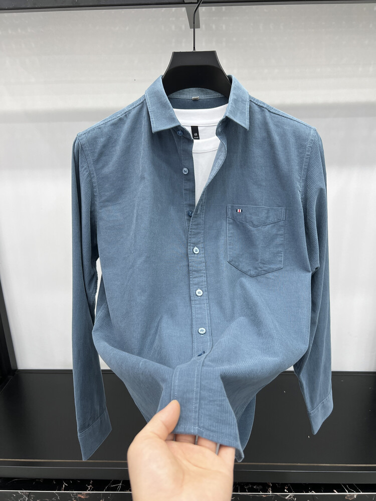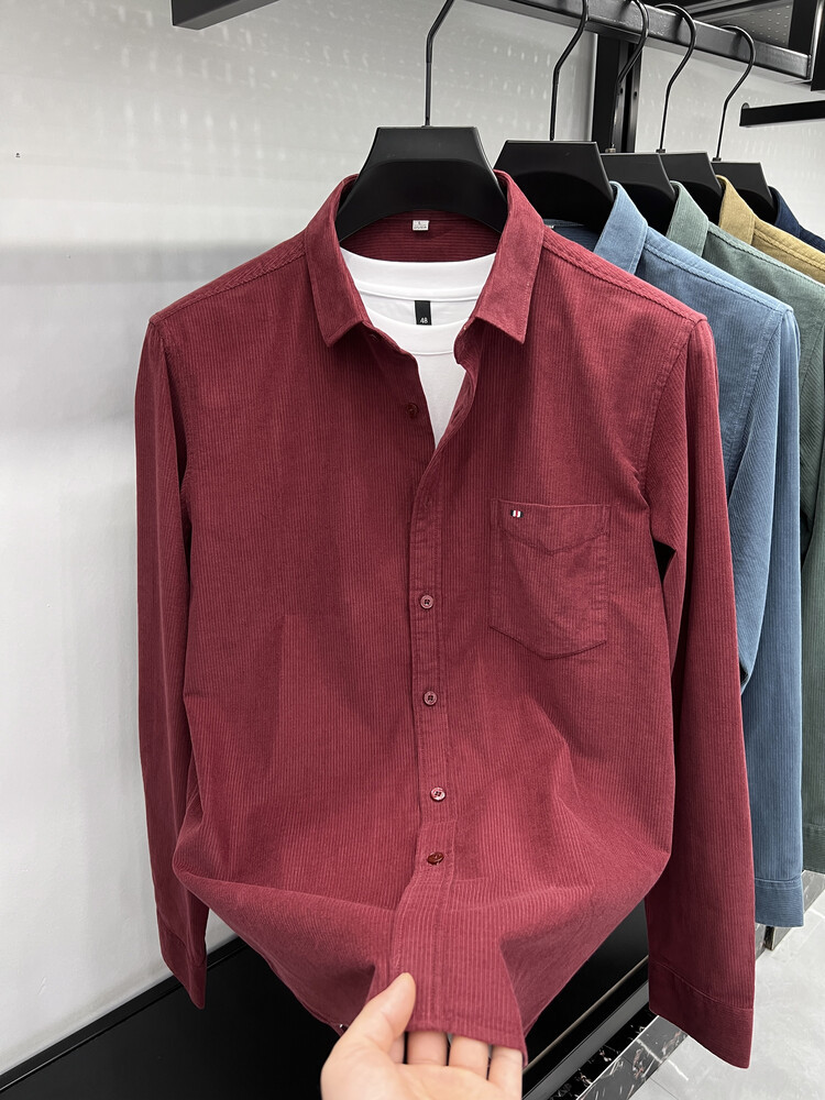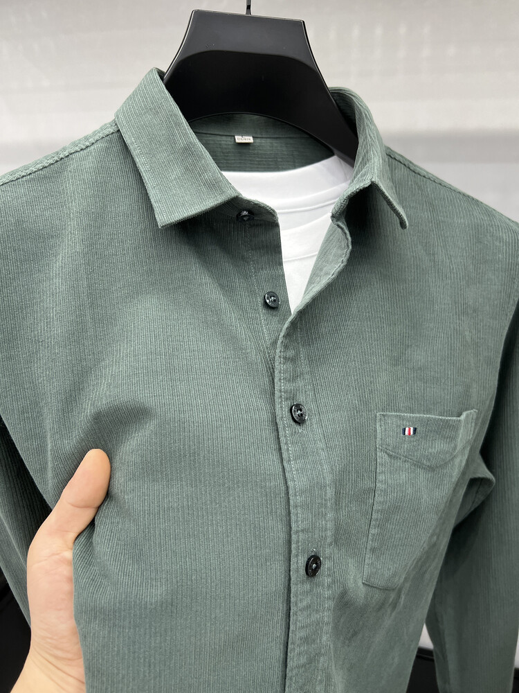 100 순면 코듀로이 리얼 포켓 남성용 긴 소매 셔츠 단색 캐주얼 가을 의류 트렌디 남성용 셔츠스토어 가기