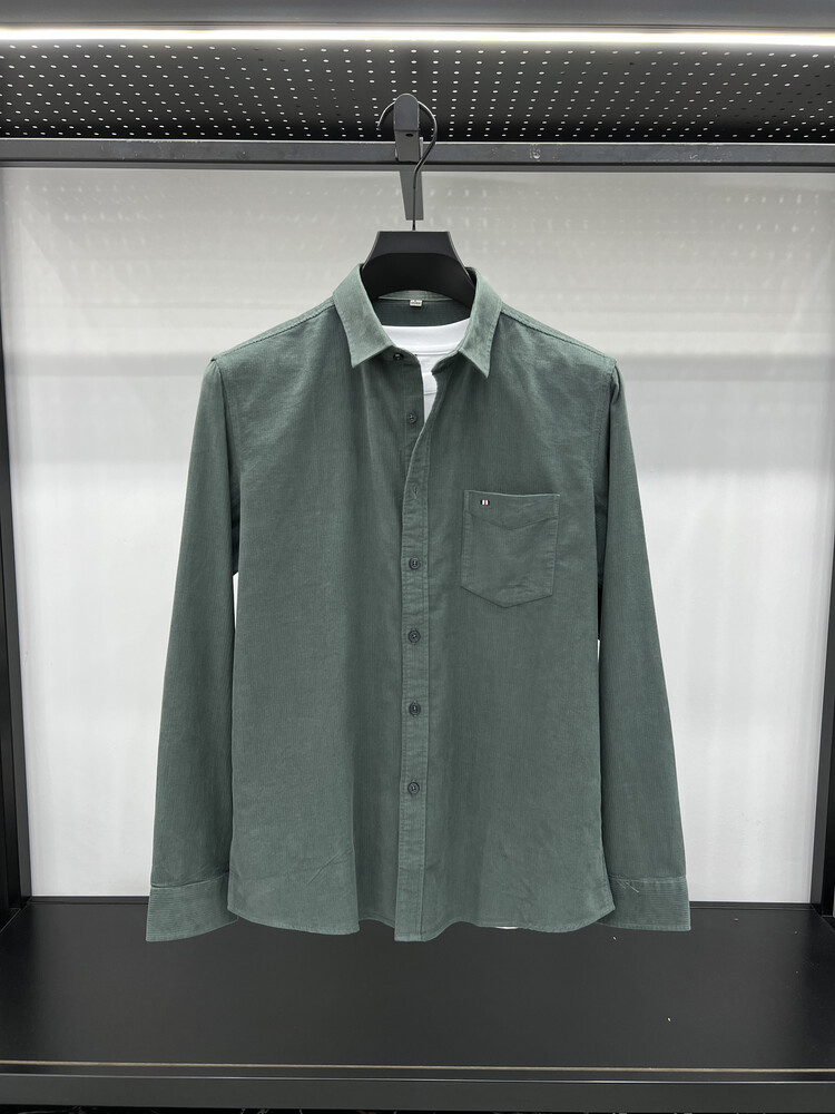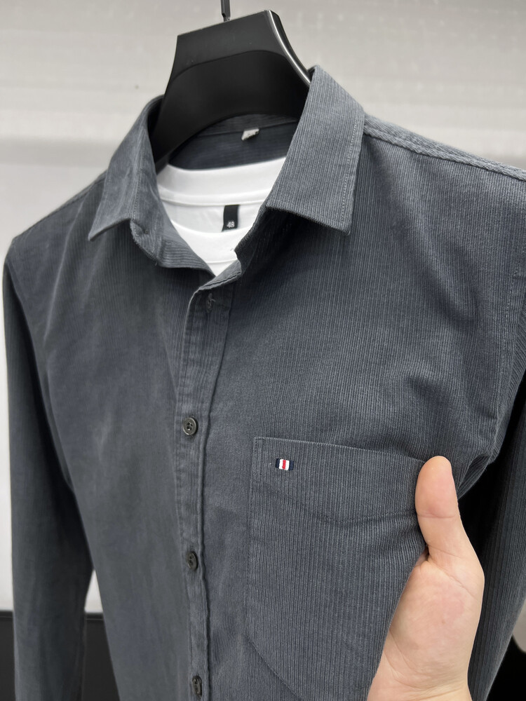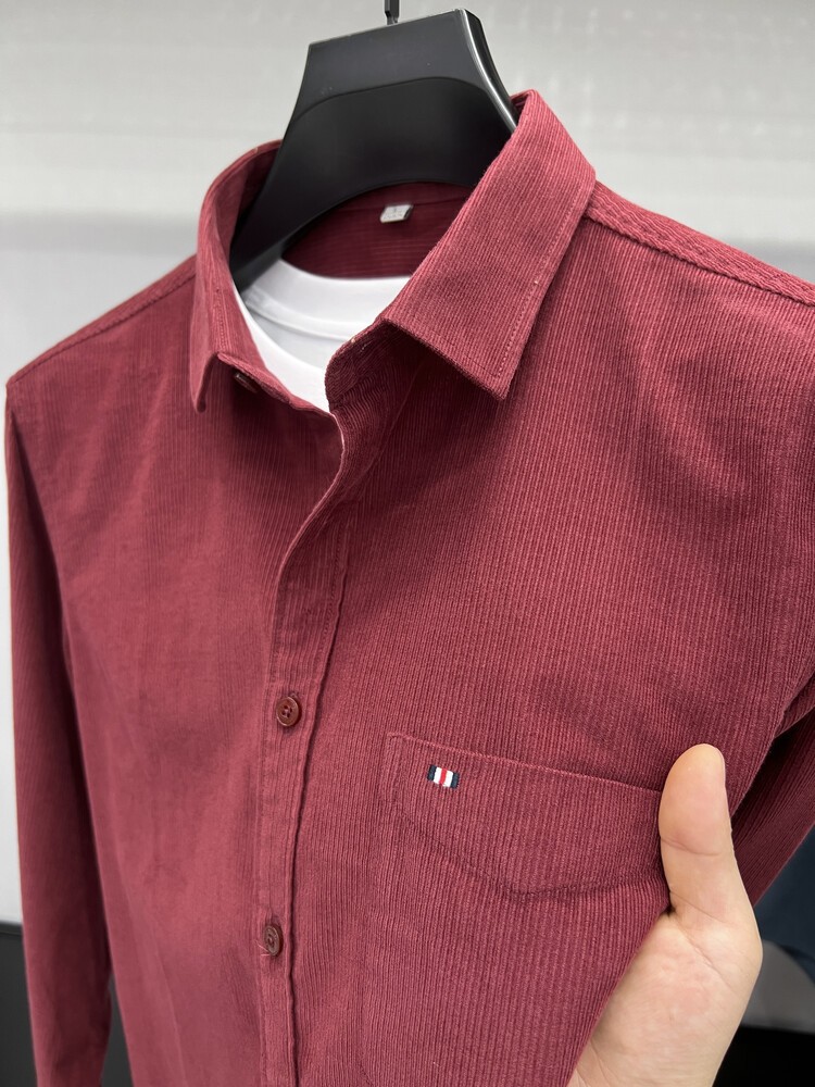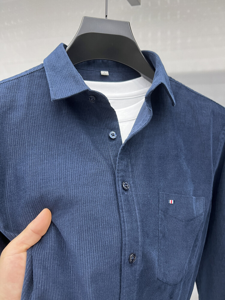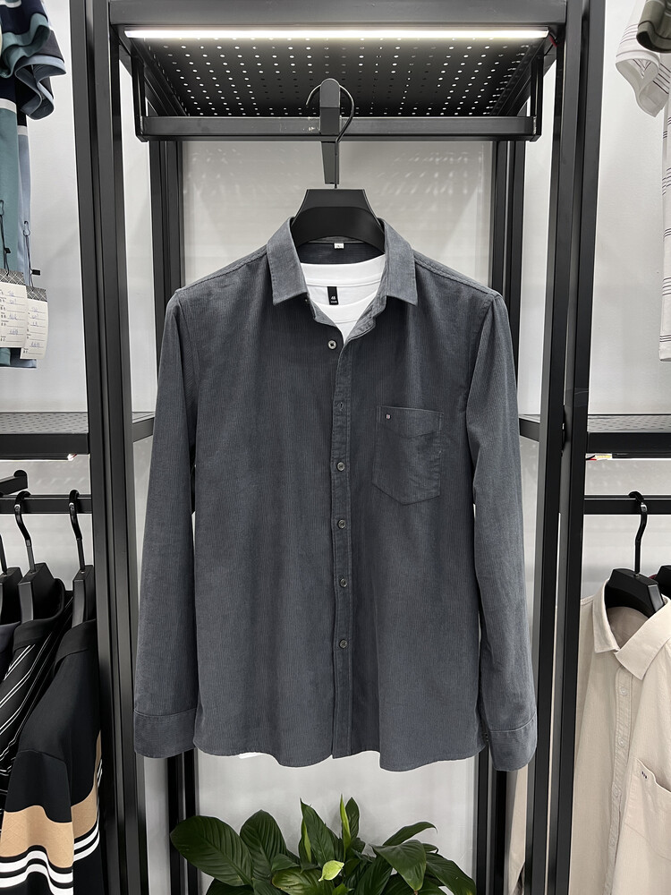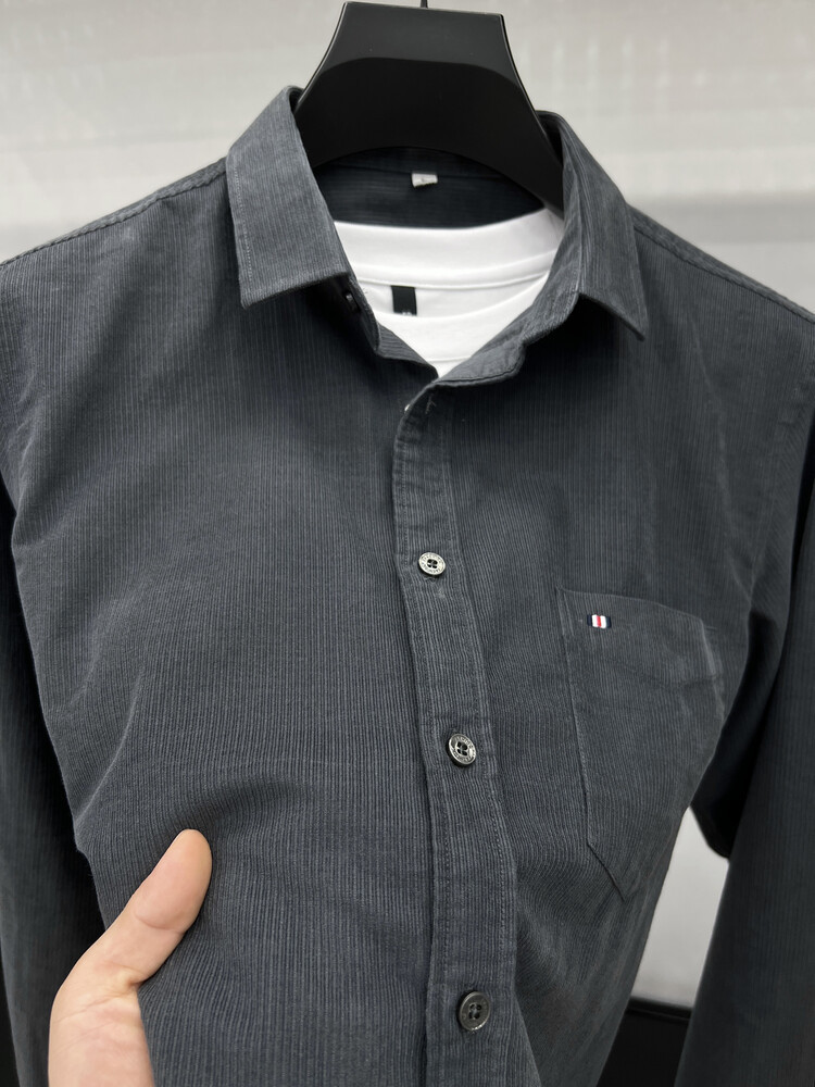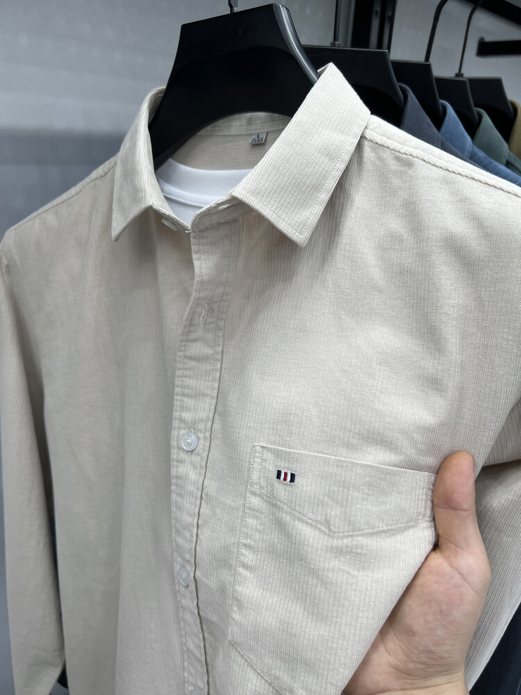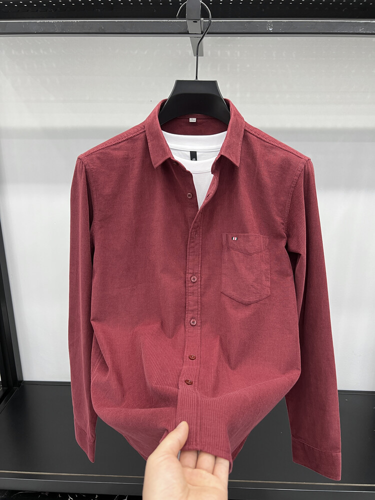 100 순면 코듀로이 리얼 포켓 남성용 긴 소매 셔츠 단색 캐주얼 가을 의류 트렌디 남성용 셔츠스토어 가기