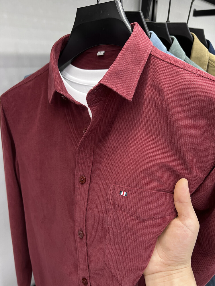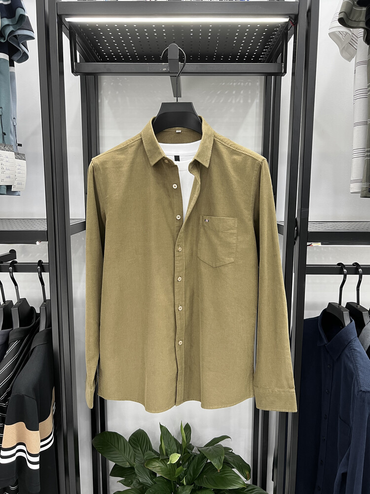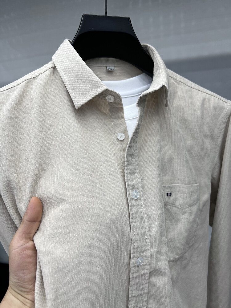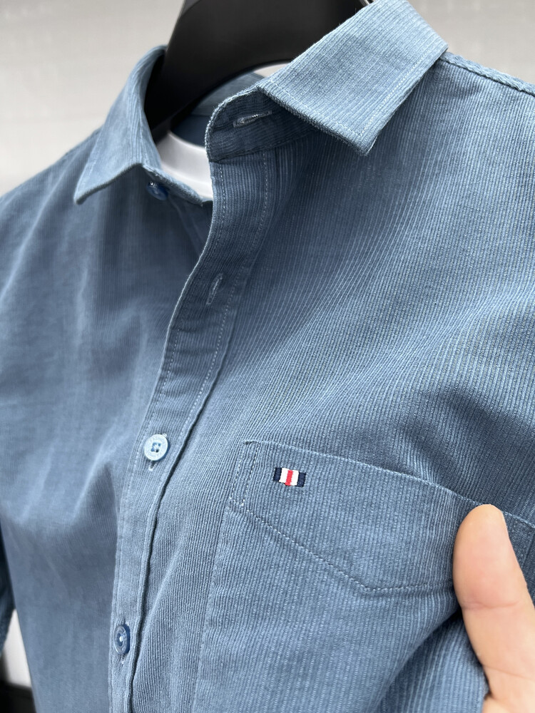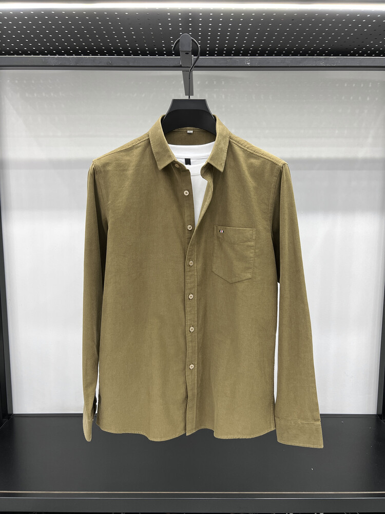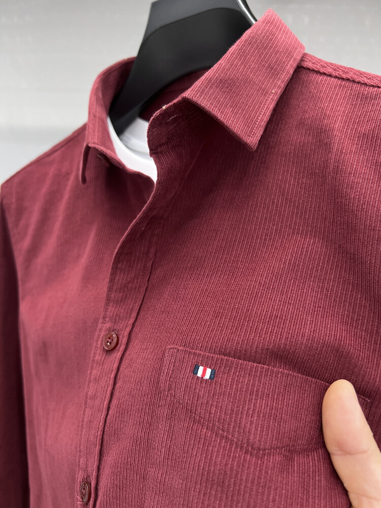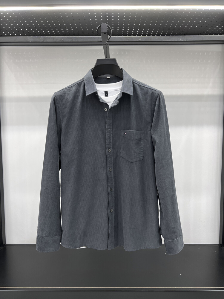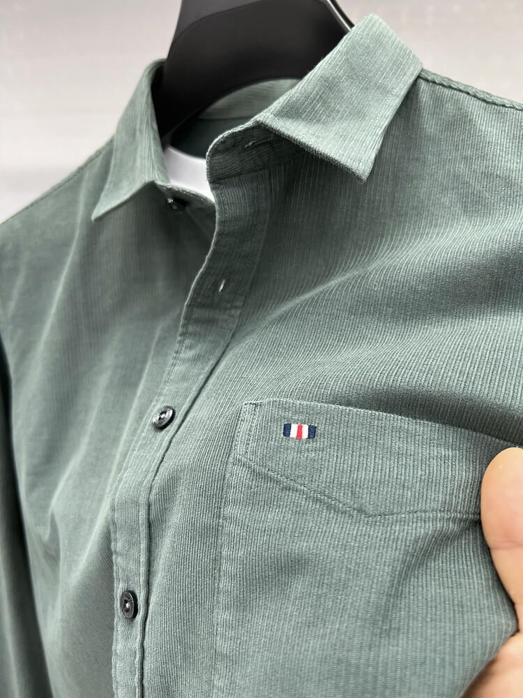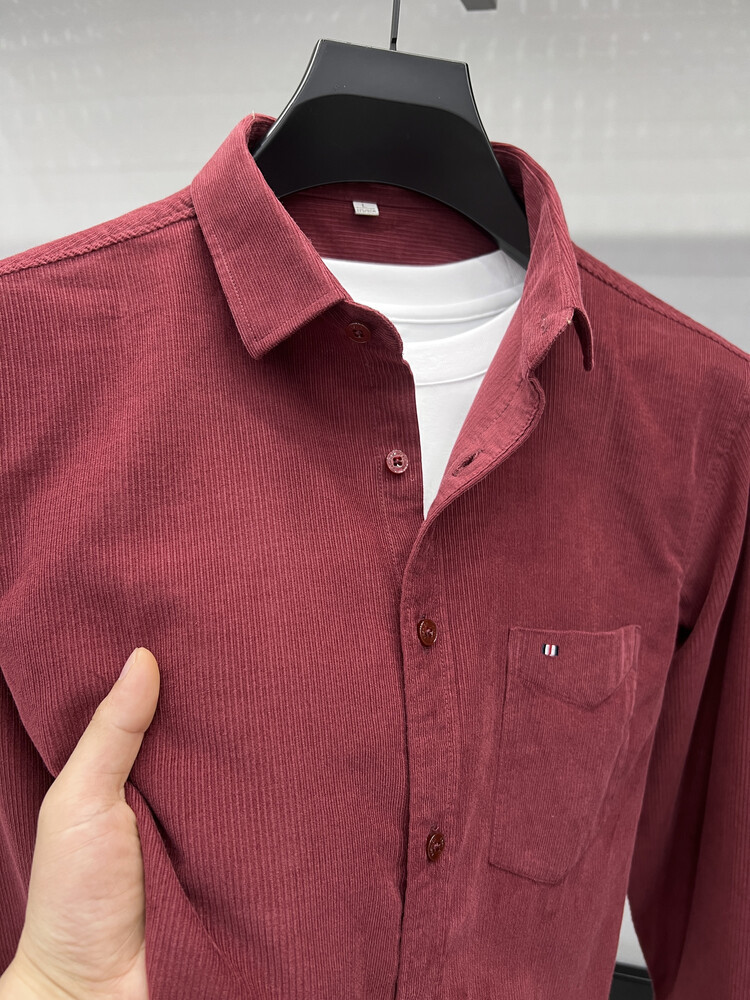 100 순면 코듀로이 리얼 포켓 남성용 긴 소매 셔츠 단색 캐주얼 가을 의류 트렌디 남성용 셔츠스토어 가기