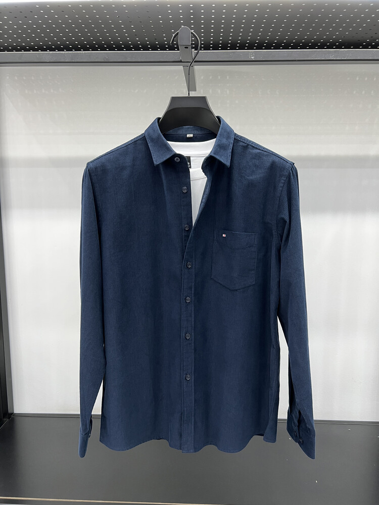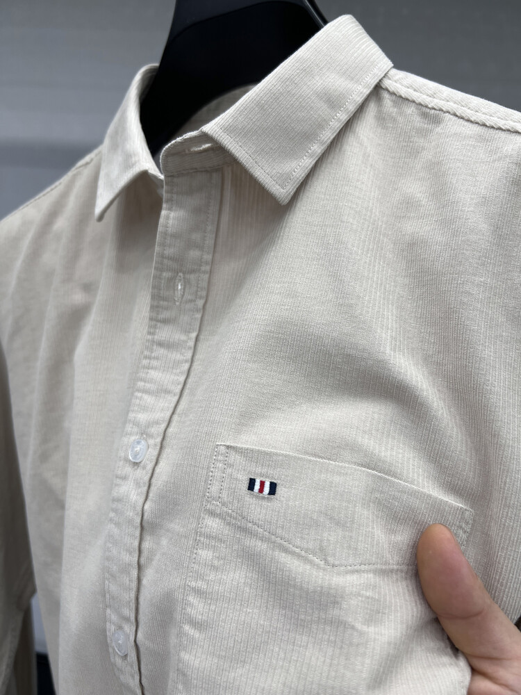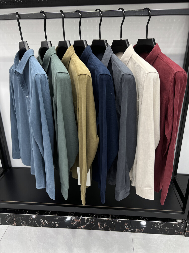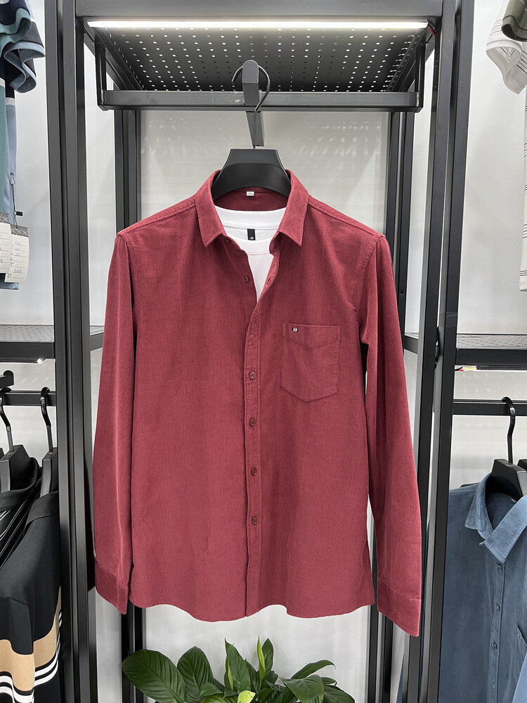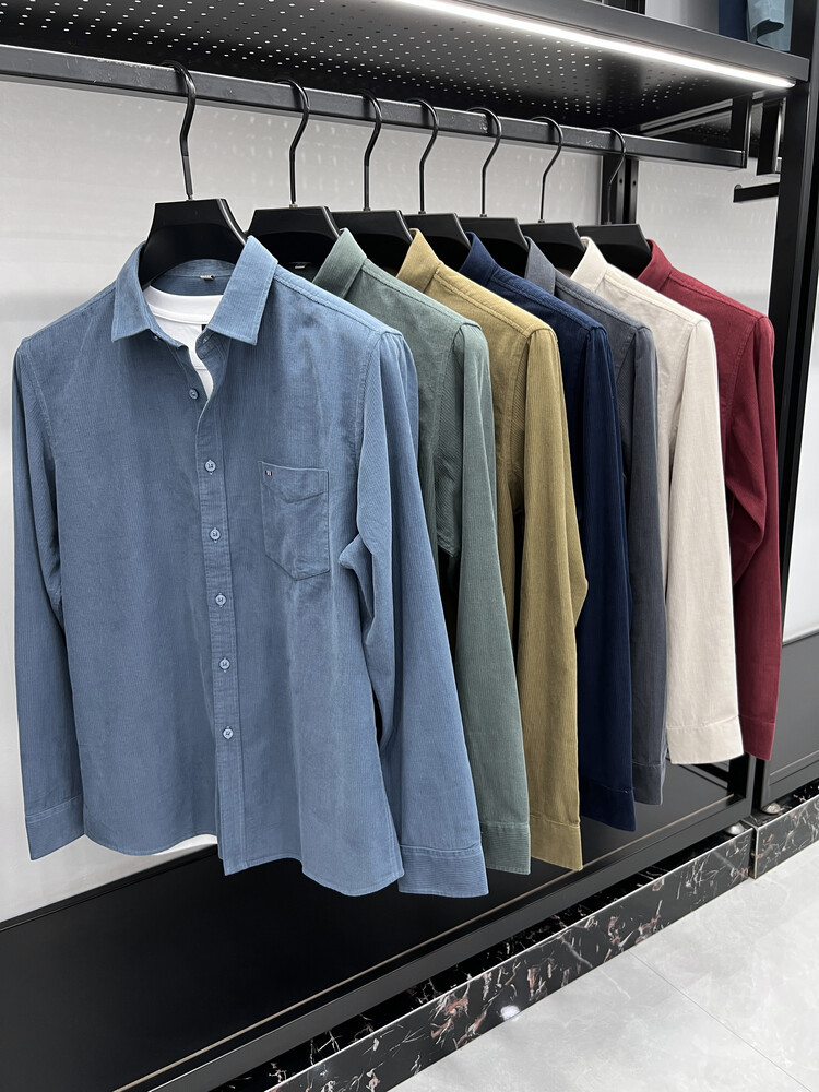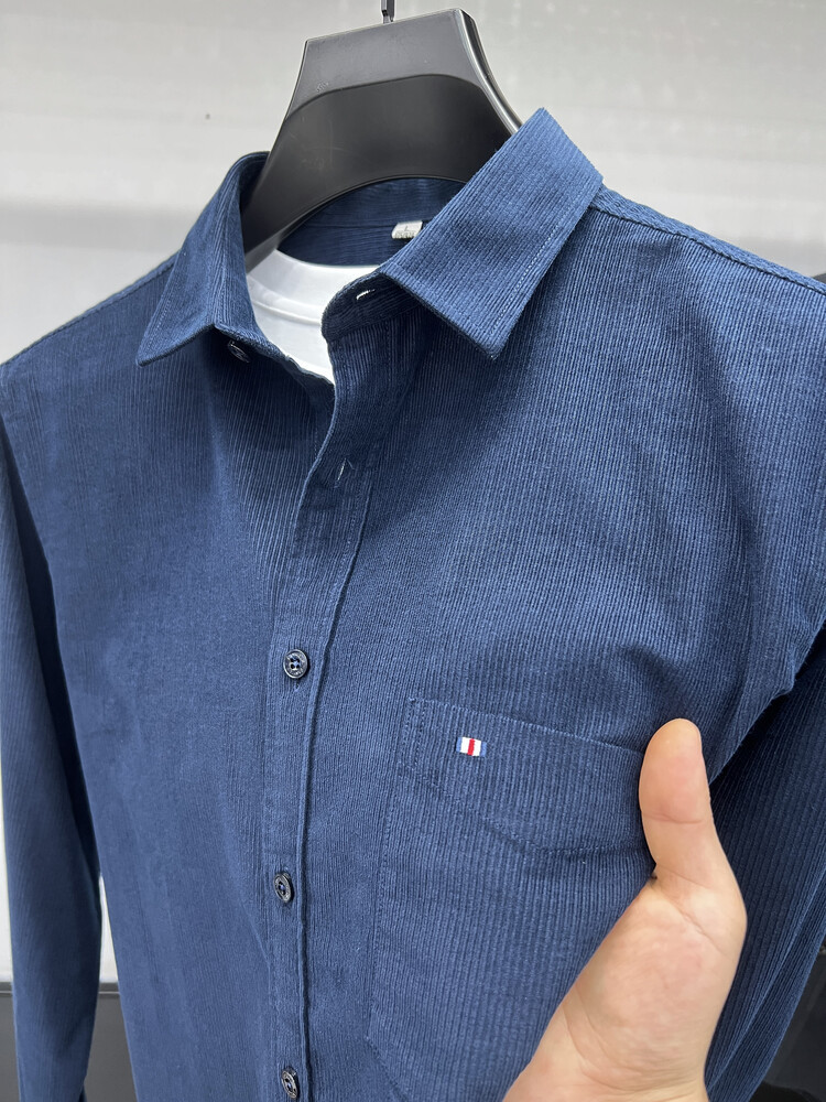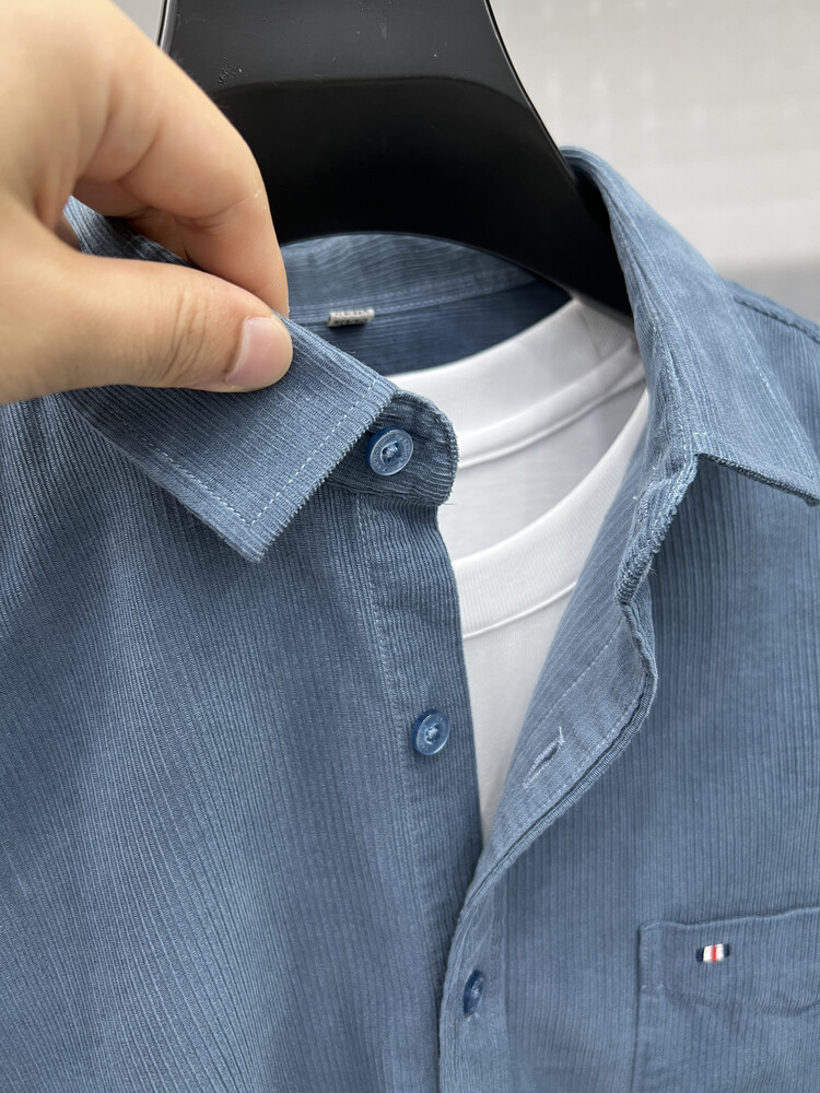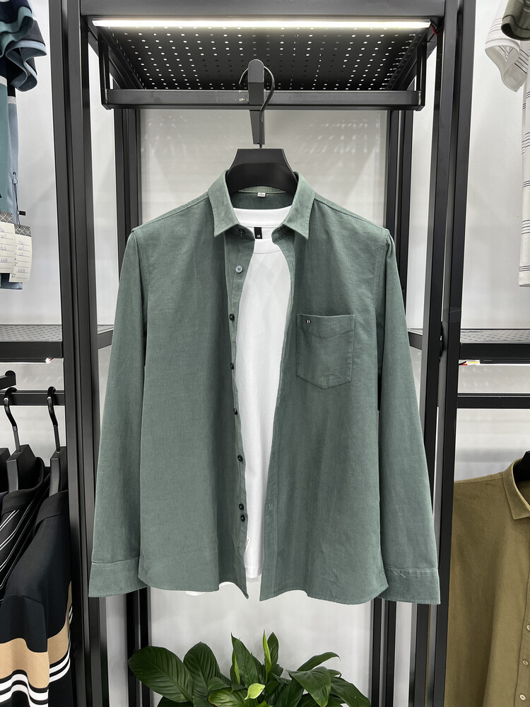 100 순면 코듀로이 리얼 포켓 남성용 긴 소매 셔츠 단색 캐주얼 가을 의류 트렌디 남성용 셔츠스토어 가기