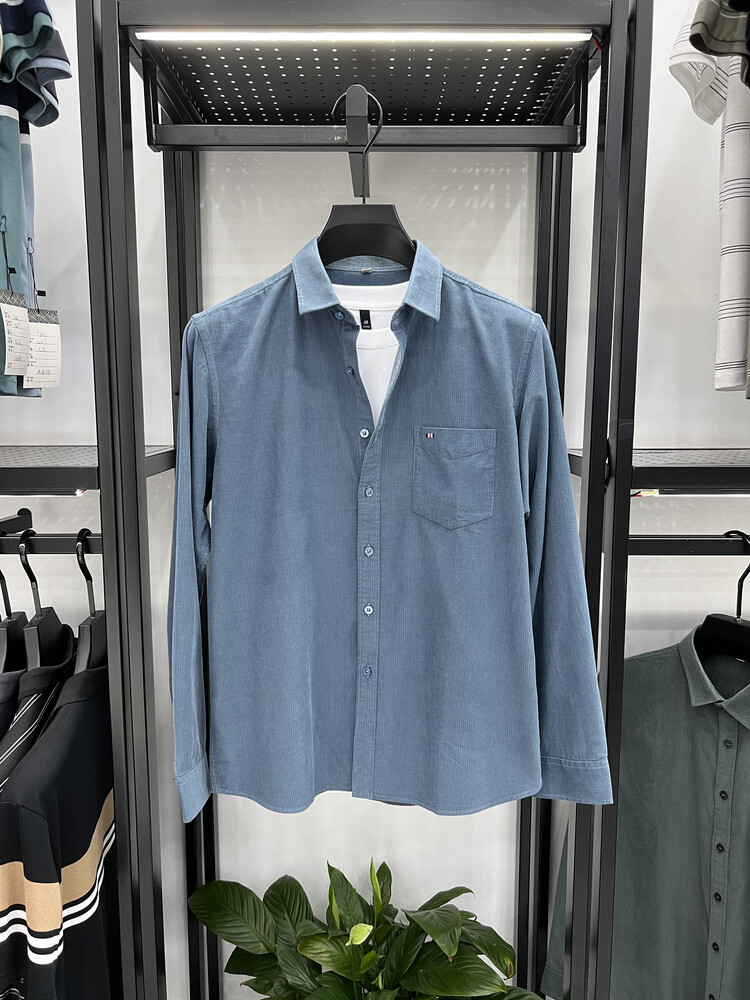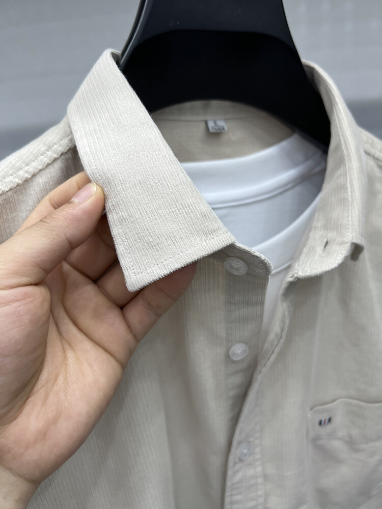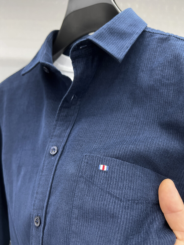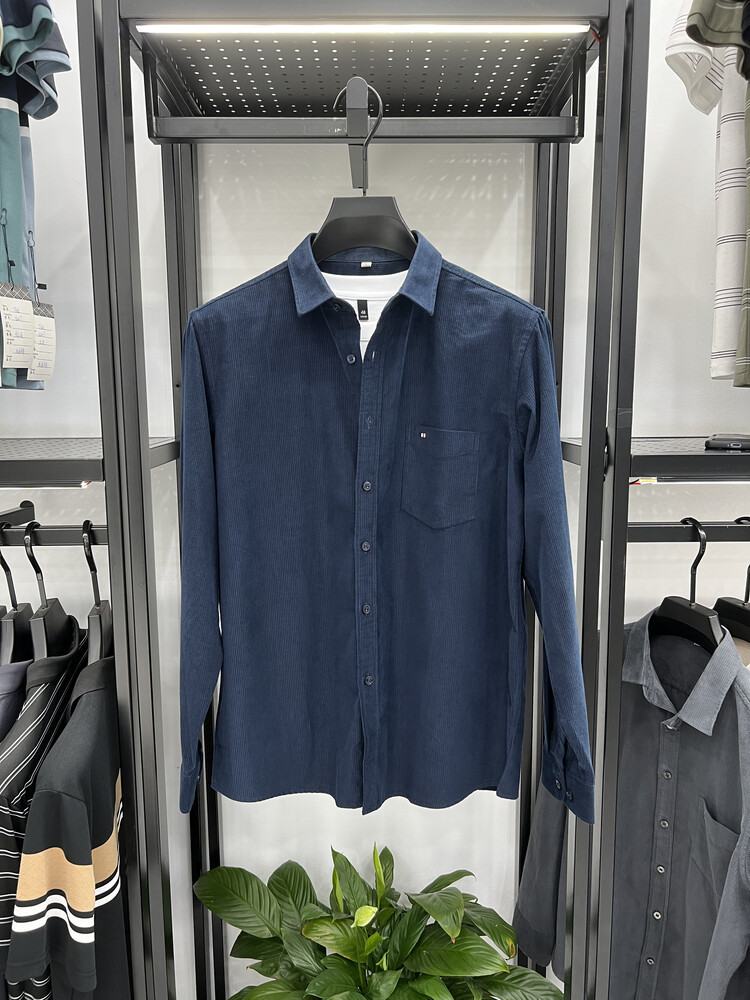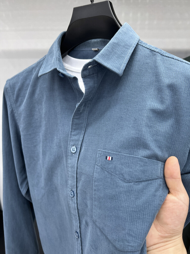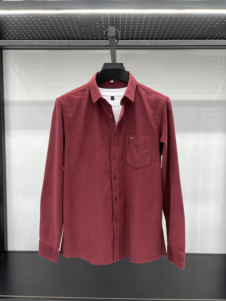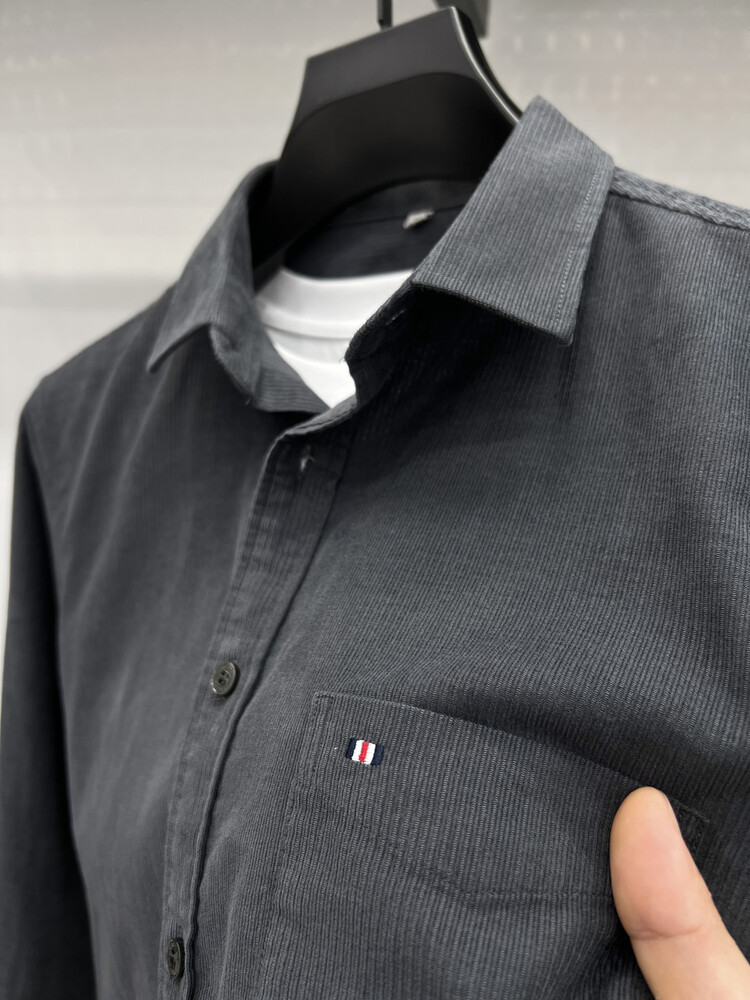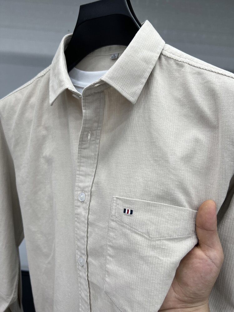 100 순면 코듀로이 리얼 포켓 남성용 긴 소매 셔츠 단색 캐주얼 가을 의류 트렌디 남성용 셔츠스토어 가기