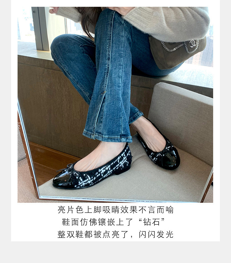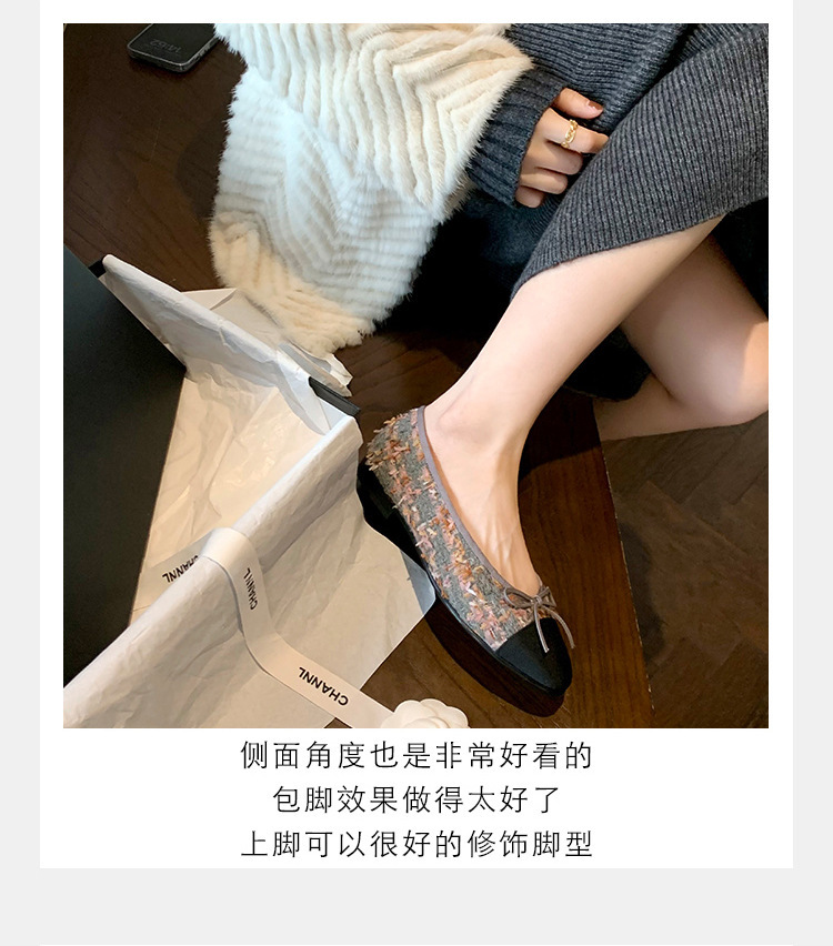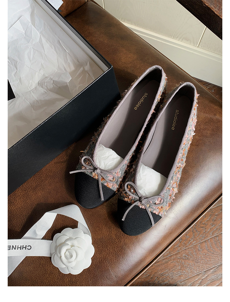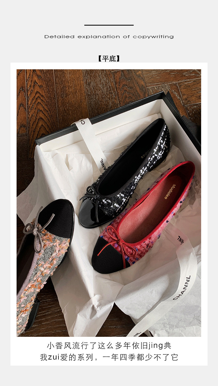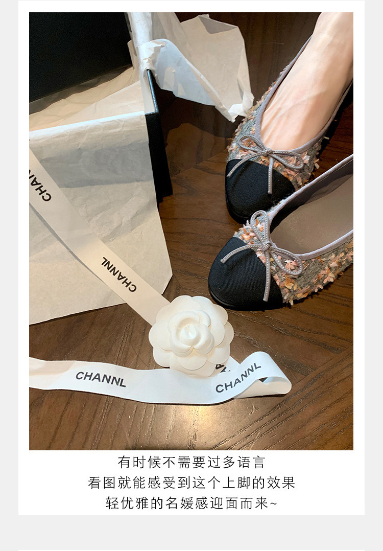 샤넬 스타일 프렌치 스타일 활 가을 여성 트위드 발레 신발 여성 싱글 신발 새로운 플랫 하이스토어 가기