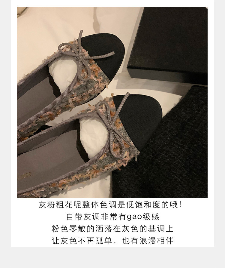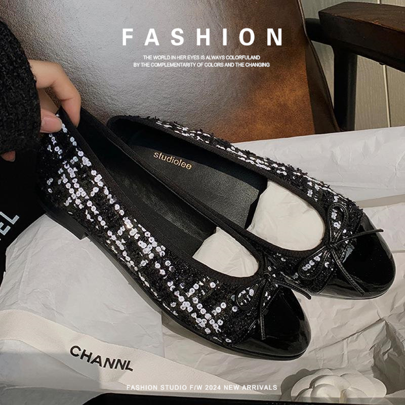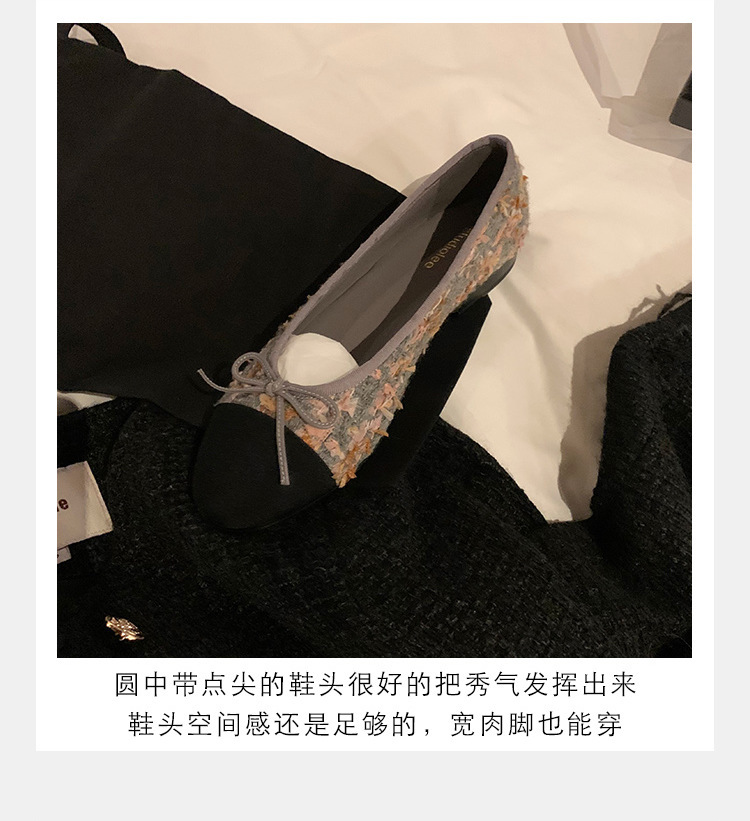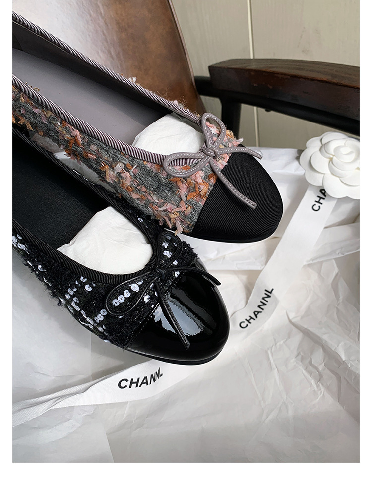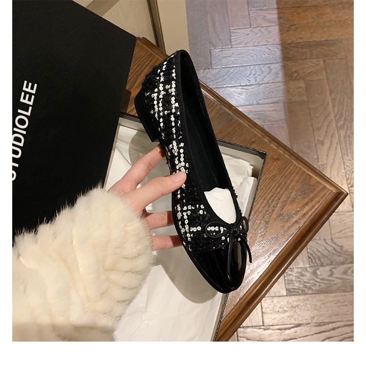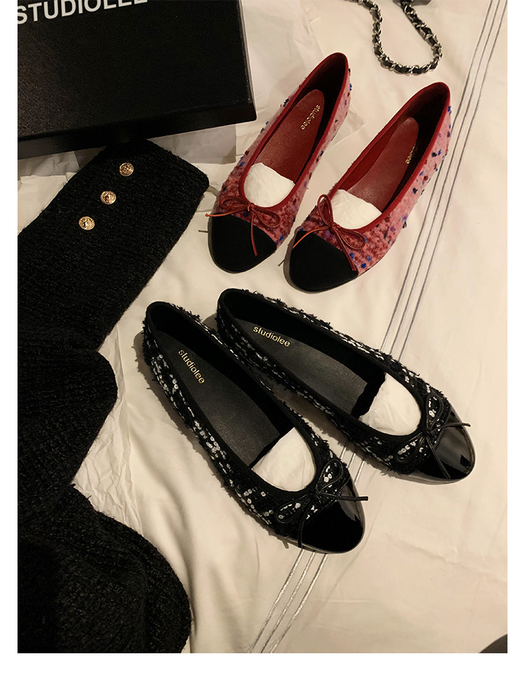 샤넬 스타일 프렌치 스타일 활 가을 여성 트위드 발레 신발 여성 싱글 신발 새로운 플랫 하이스토어 가기