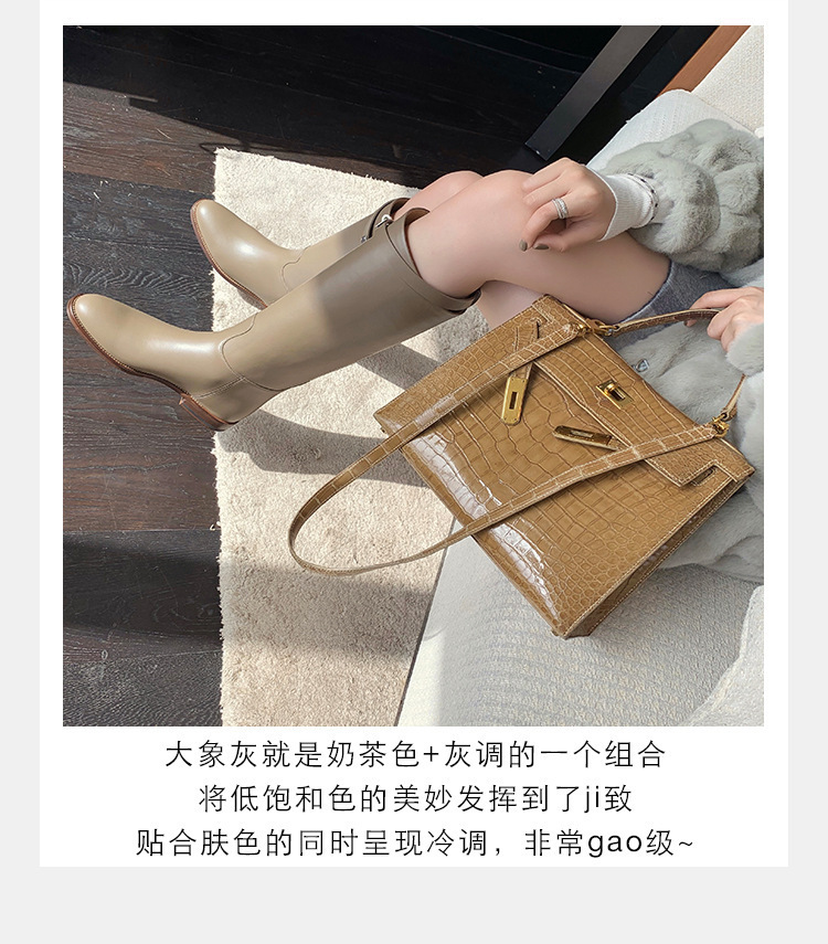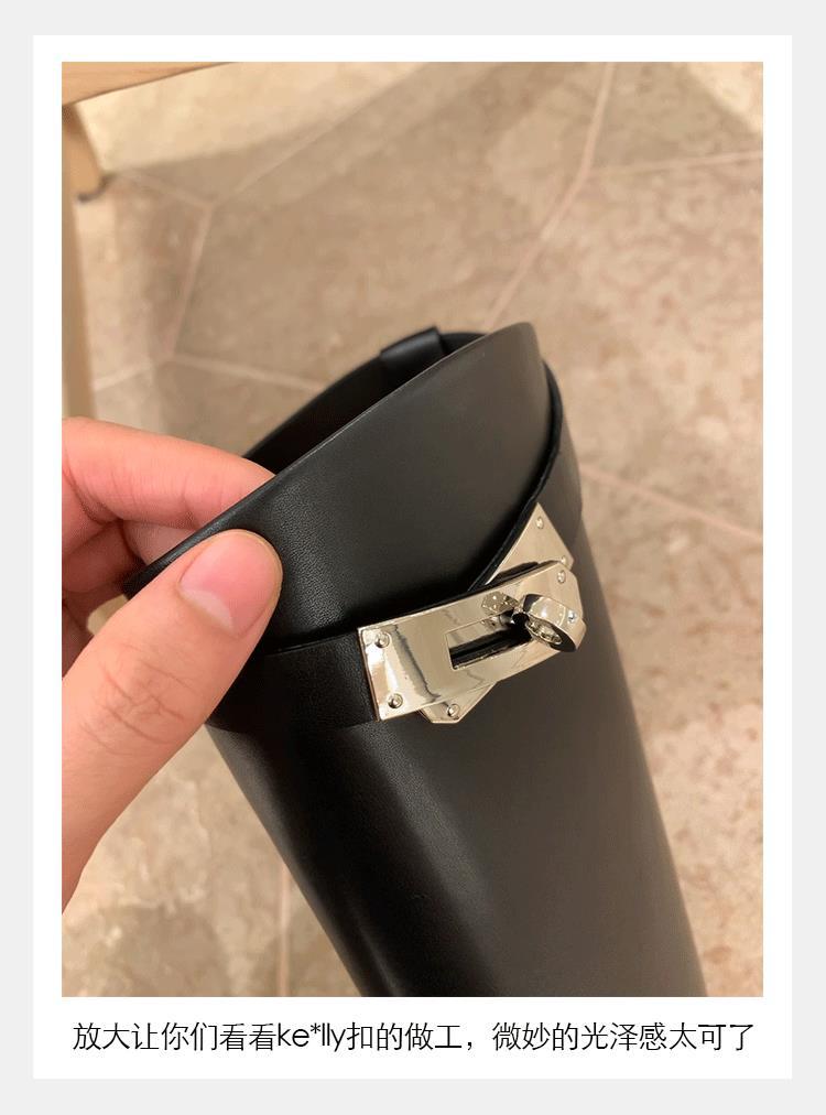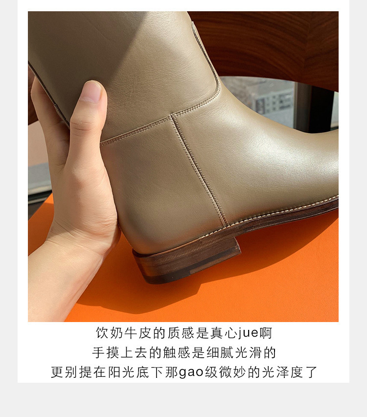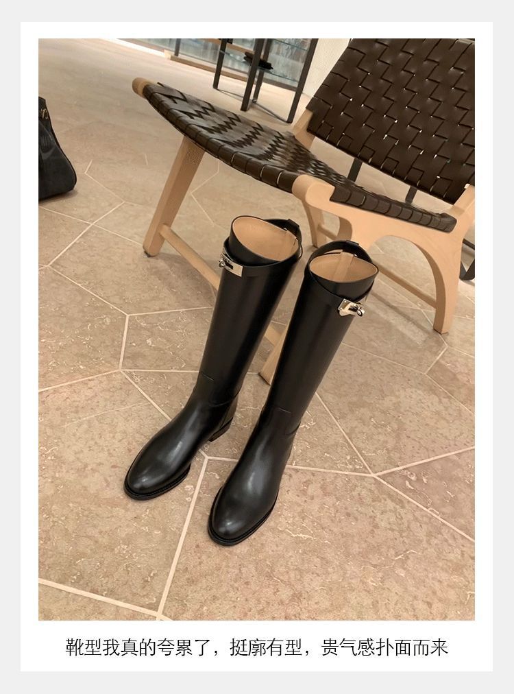 작은 정품 가죽 한가을과 겨울 라이더 부츠 두꺼운 뒤꿈치 부츠 여성 높은 배럴 새 스타일 같은 스타일 포인팅 포도 마마 하이 스트리트스토어 가기