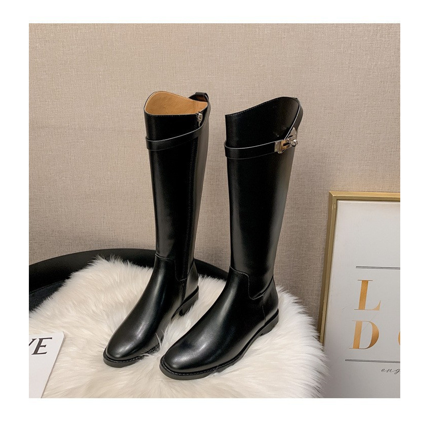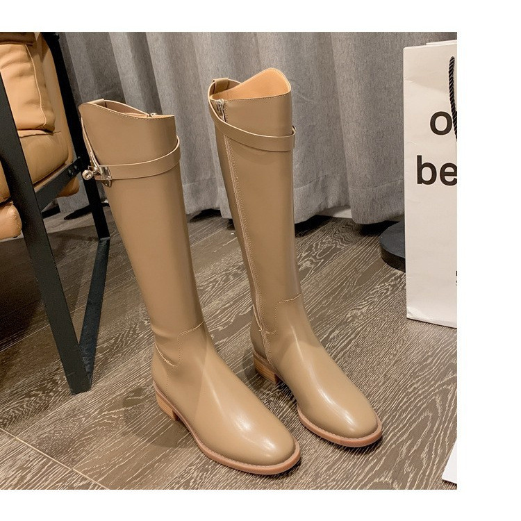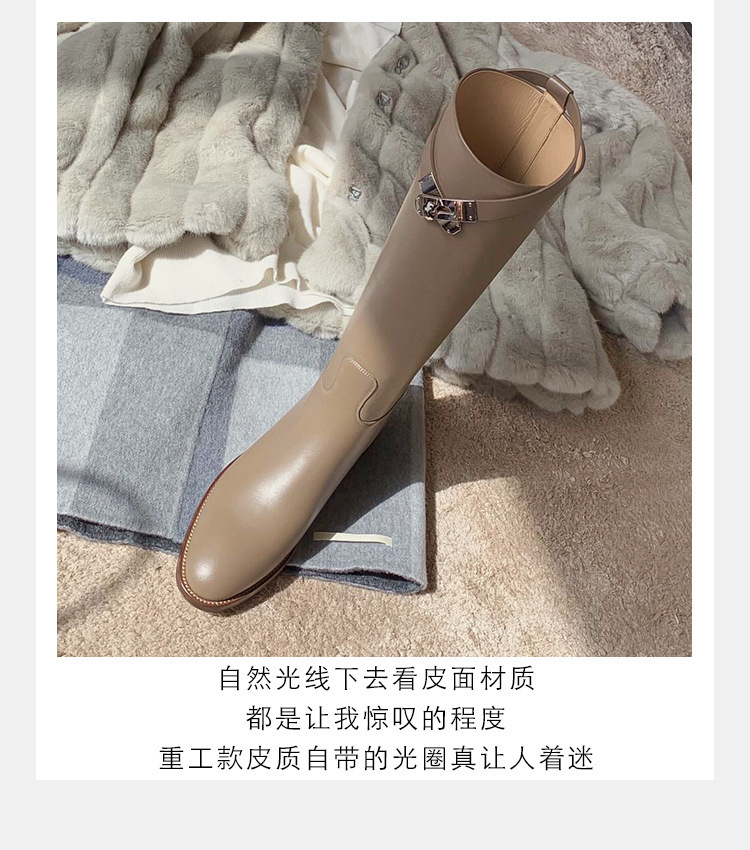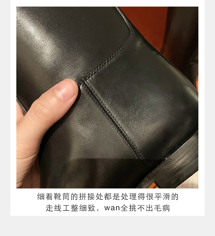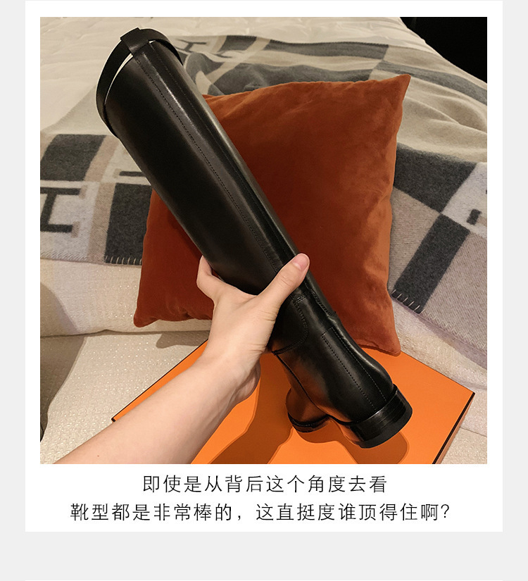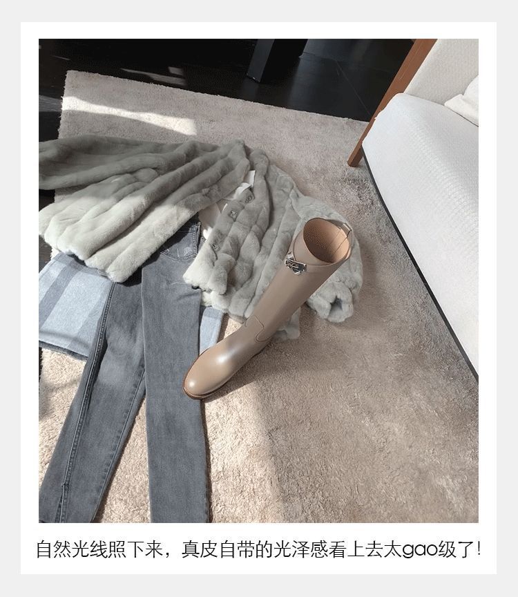작은 정품 가죽 한가을과 겨울 라이더 부츠 두꺼운 뒤꿈치 부츠 여성 높은 배럴 새 스타일 같은 스타일 포인팅 포도 마마 하이 스트리트