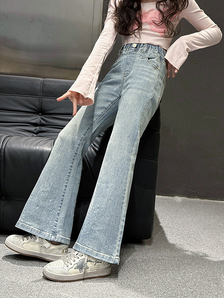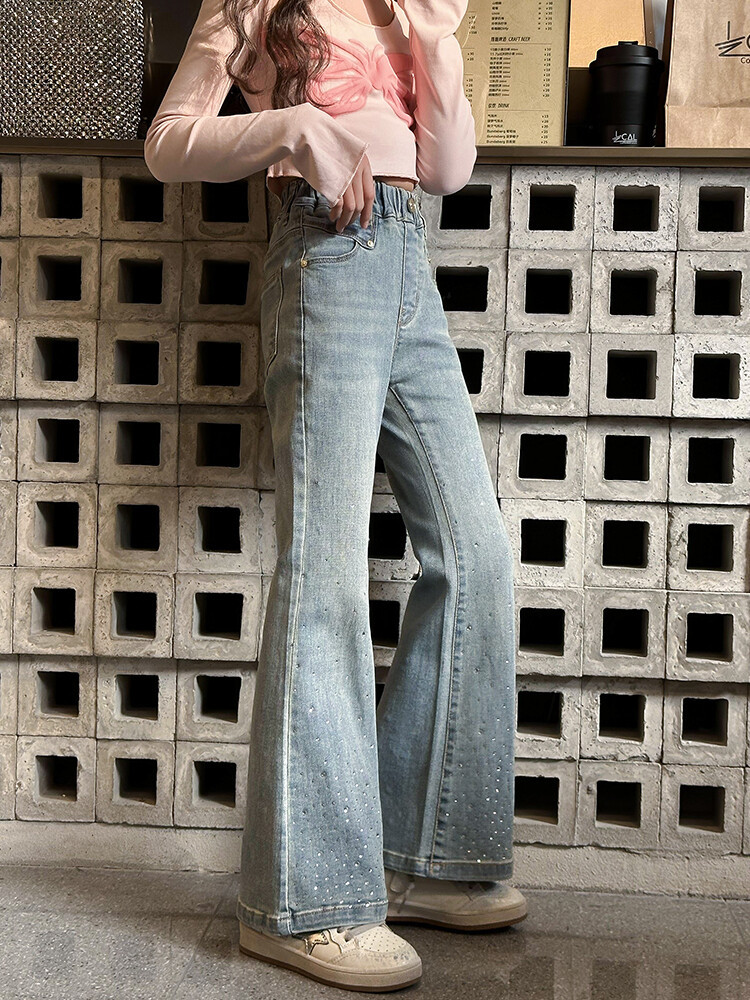 여아 팬츠 플레어 청바지 2025 봄 가을 신상 아동용 중대형 여아 패션 스트레치 바지 도매스토어 가기