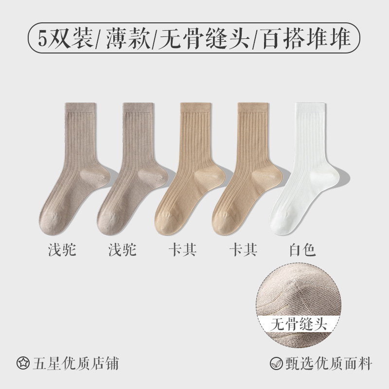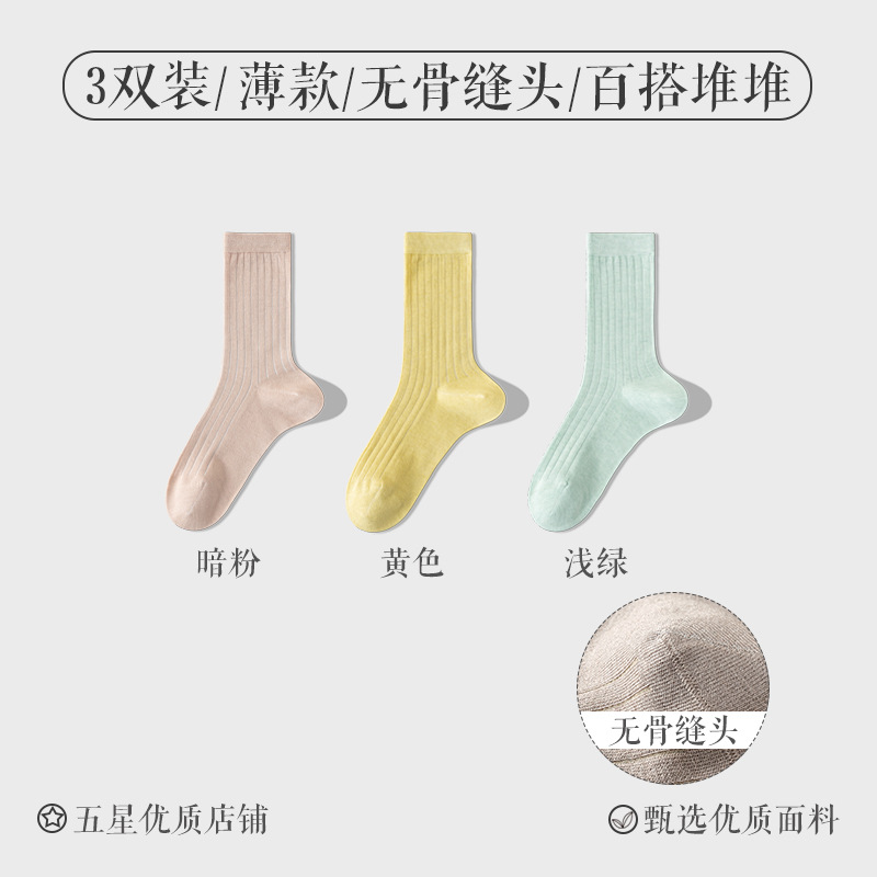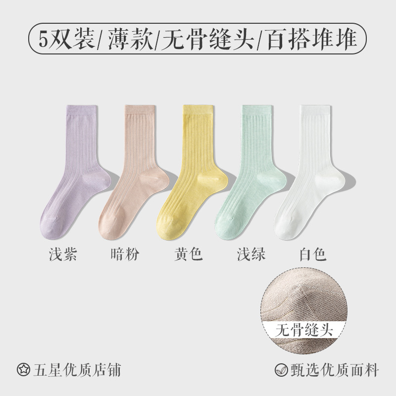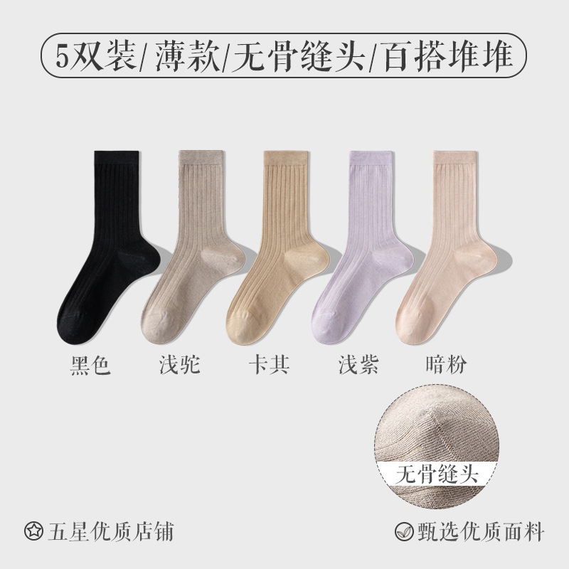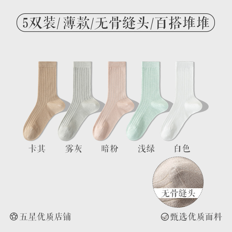 양말 여자 미드 튜브 양말 여름 얇은 땀 흡수 통기성 스트립 모든 경기 뼈없는 스태킹 양말 봄과 가을 여성용 코튼 양말
