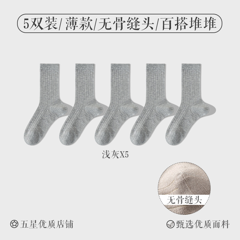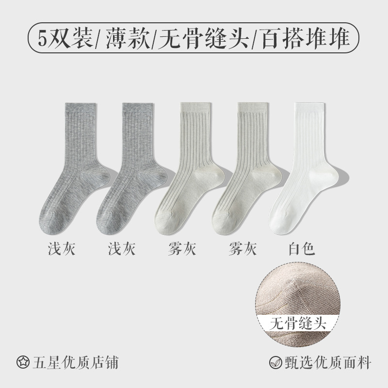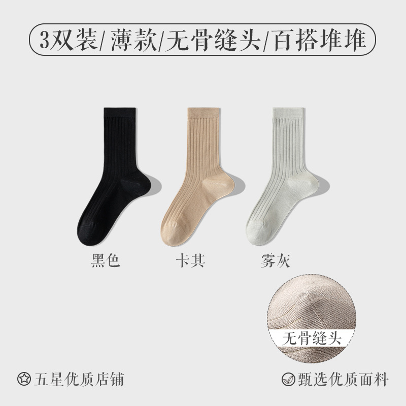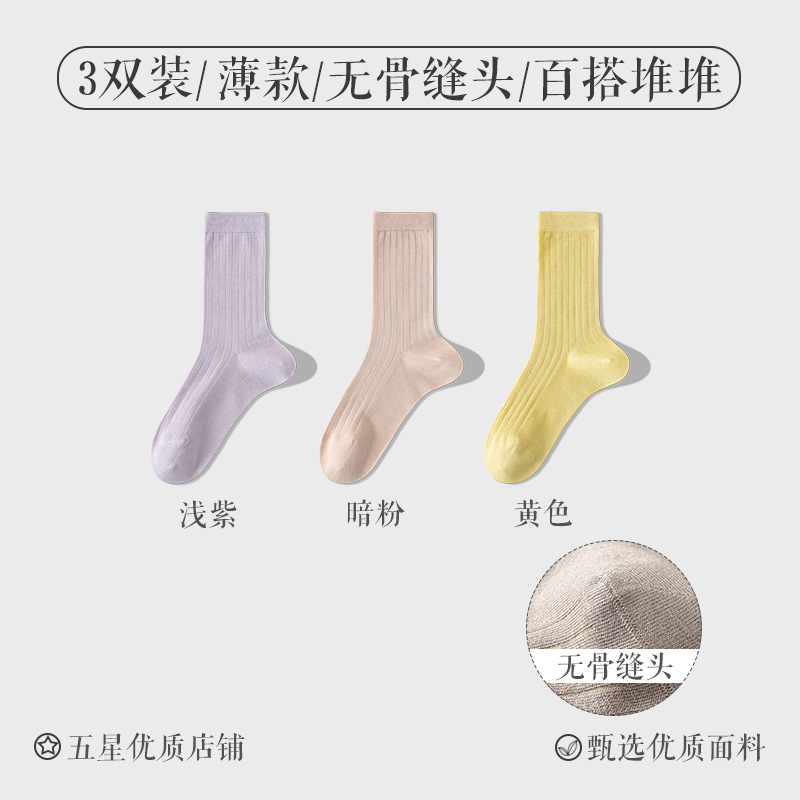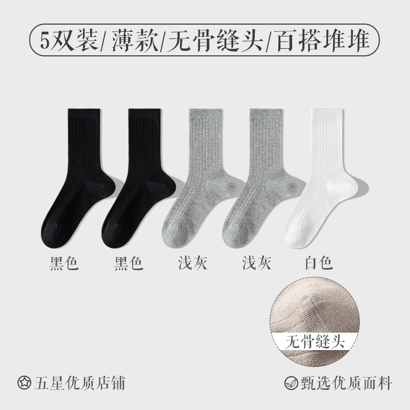 양말 여자 미드 튜브 양말 여름 얇은 땀 흡수 통기성 스트립 모든 경기 뼈없는 스태킹 양말 봄과 가을 여성용 코튼 양말