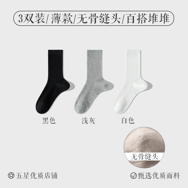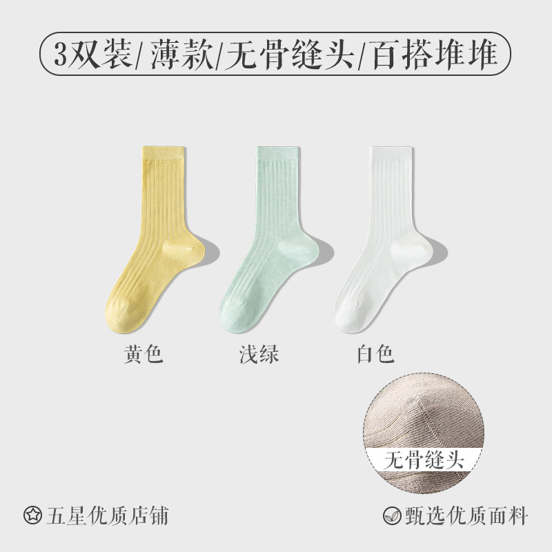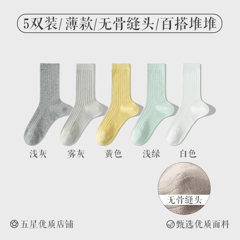 양말 여자 미드 튜브 양말 여름 얇은 땀 흡수 통기성 스트립 모든 경기 뼈없는 스태킹 양말 봄과 가을 여성용 코튼 양말스토어 가기