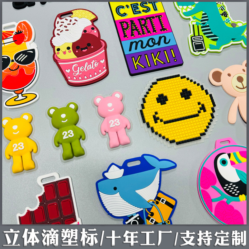 플라스틱 소프트 고무 라벨 10 년 공장 PVC 소프트 씰 고무 라벨 실리콘 씰 드롭 플라스틱 의류 수하물 3 차원 장식 라벨스토어 가기