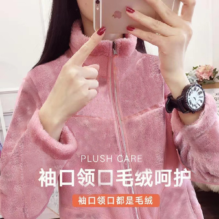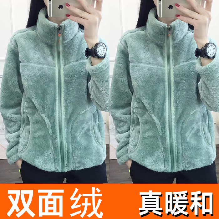 대외 무역 가을과 겨울 기모 양면 벨벳 스탠드 칼라 따뜻한 스웨터 여성용 카디건 지퍼 양털 캐주얼 다용도 코트 여성스토어 가기