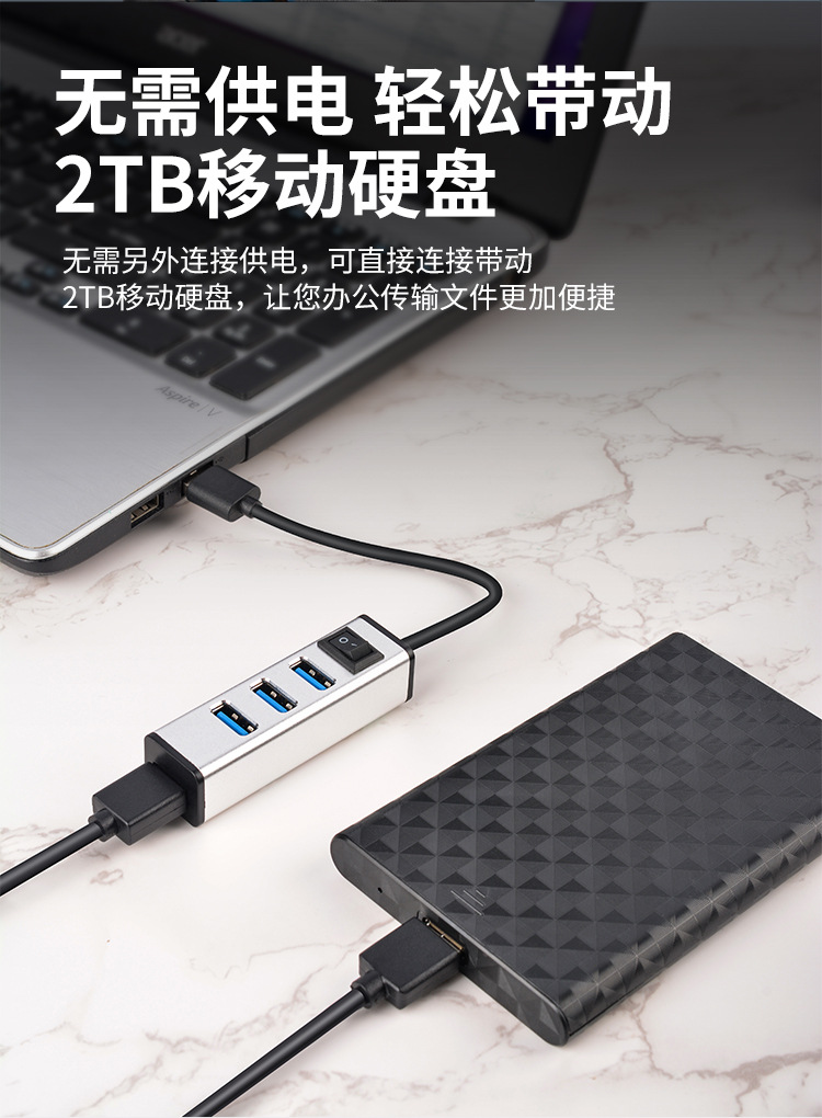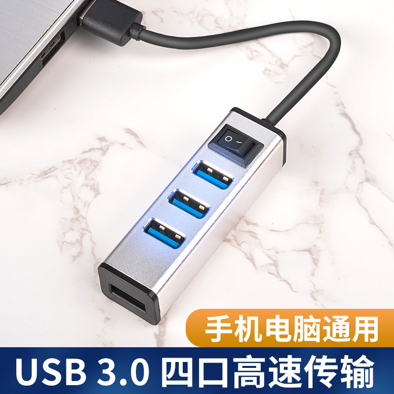 스위치가 있는 알루미늄 합금 4포트 USB C3.0 확장 도크 허브 분배기 타입-C 허브 다중 인터페이스스토어 가기
