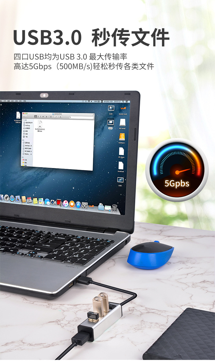 스위치가 있는 알루미늄 합금 4포트 USB C3.0 확장 도크 허브 분배기 타입-C 허브 다중 인터페이스