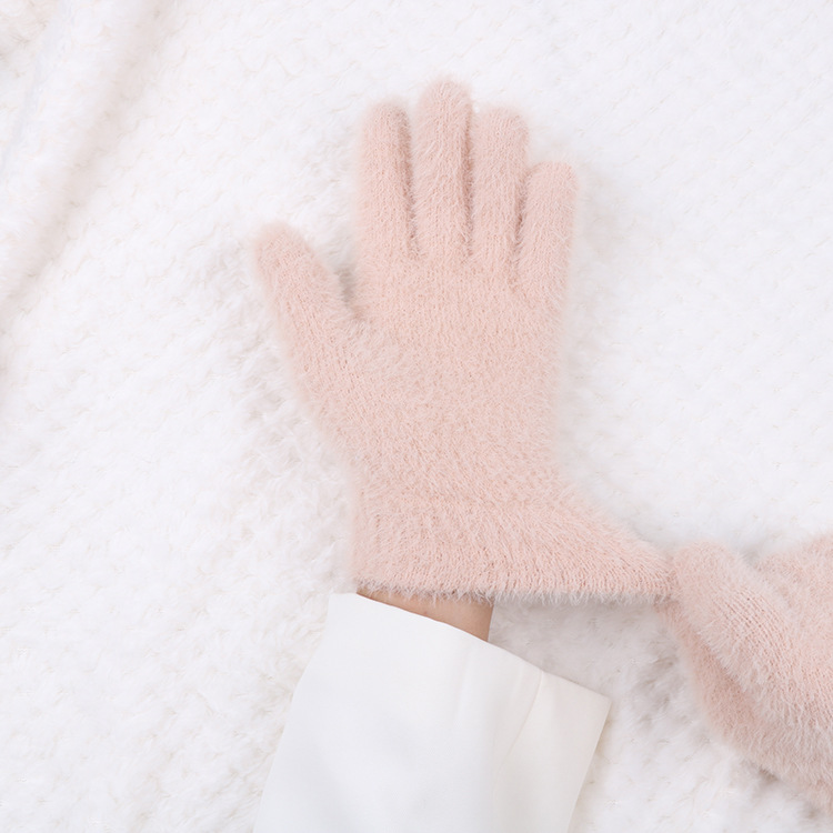 2024 제조 업체 새로운 니트 장갑 한국 귀여운 봉제 차가운 기모 두꺼운 따뜻한 장갑 도매