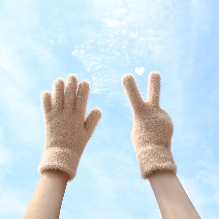 2024 제조 업체 새로운 니트 장갑 한국 귀여운 봉제 차가운 기모 두꺼운 따뜻한 장갑 도매스토어 가기