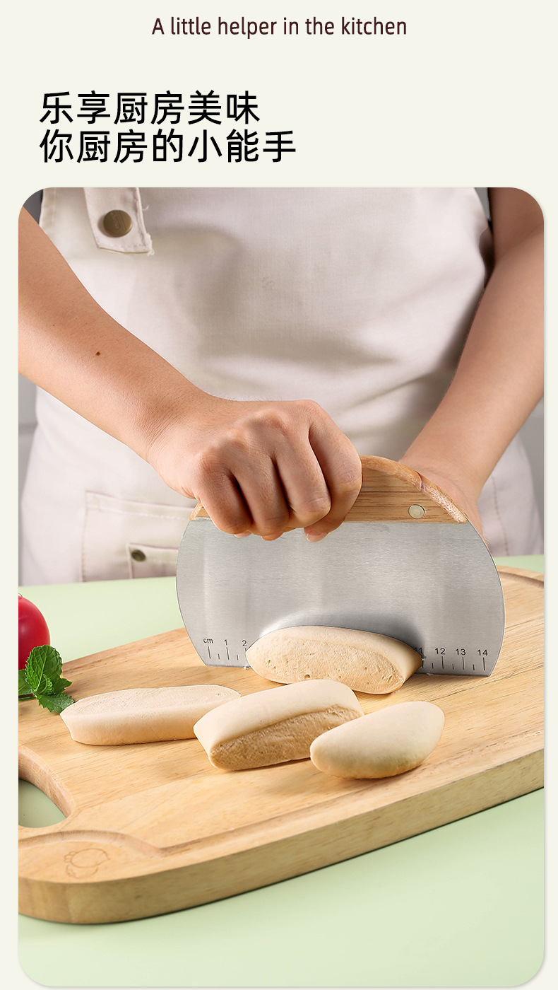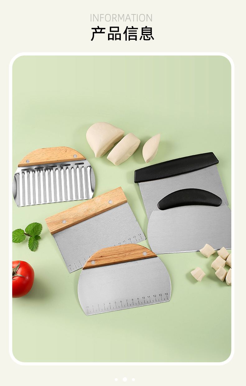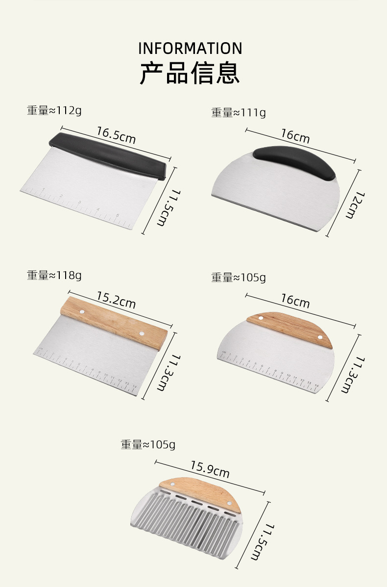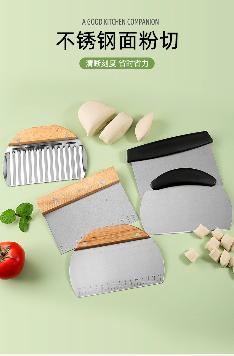 스테인레스 스틸 밀가루 절단 칼 스케일 스크레이퍼 스크래핑 쌀 롤 절단 반원 케이크 밀가루 파동 절단스토어 가기