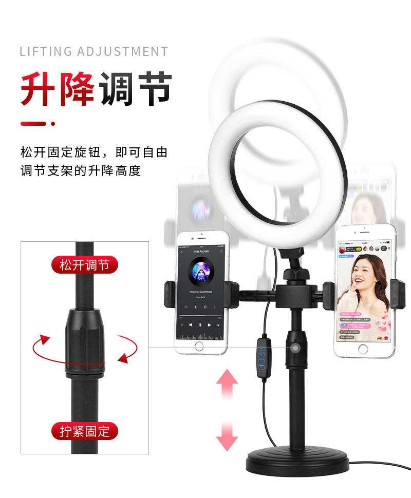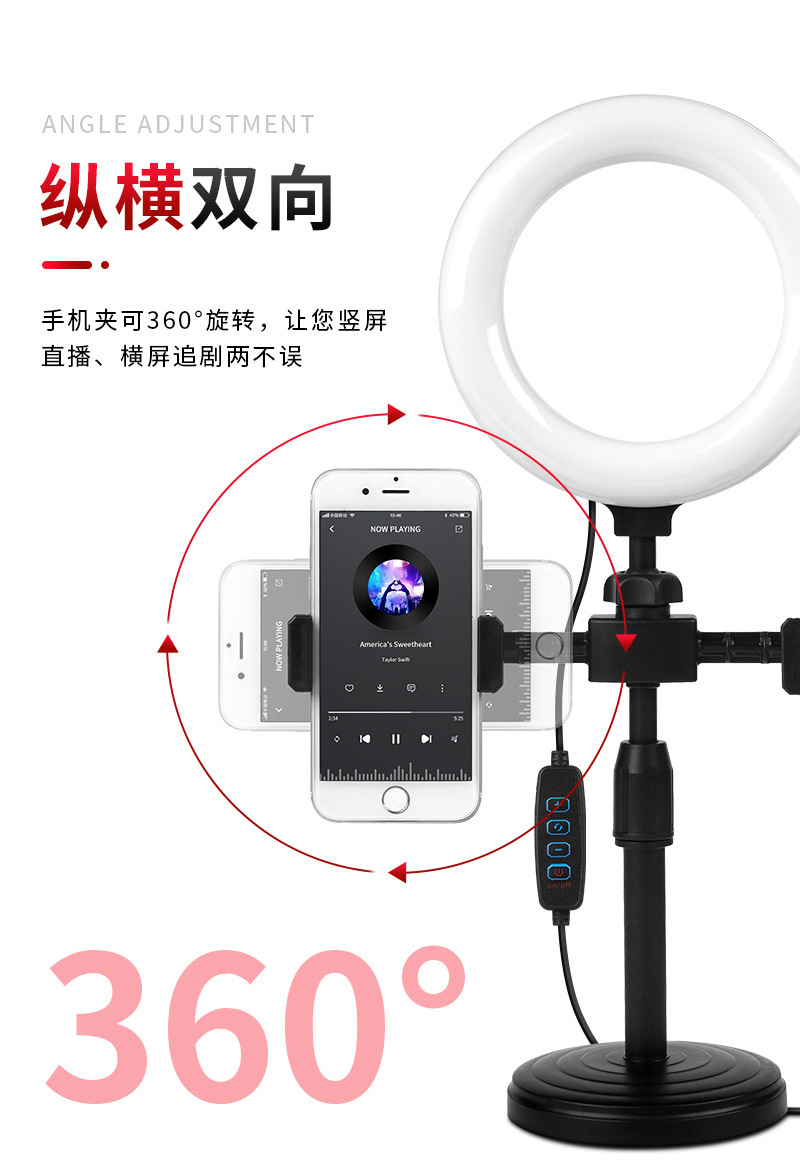 2 위치 3 위치 휴대 전화 데스크탑 라이브 라이트 디스크 브래킷 세트 뷰티 사진 LED 링 라이트