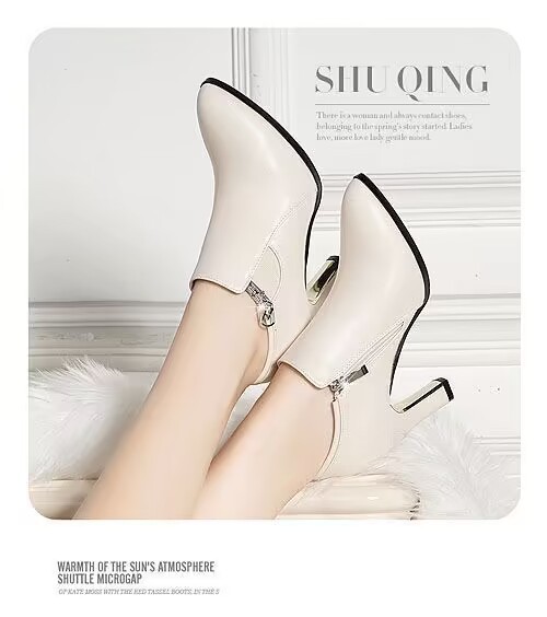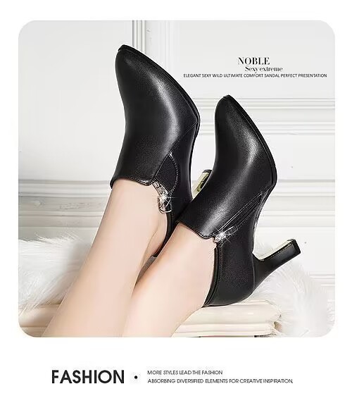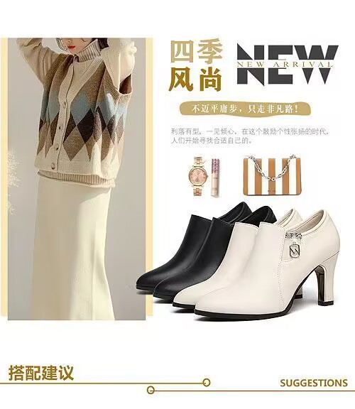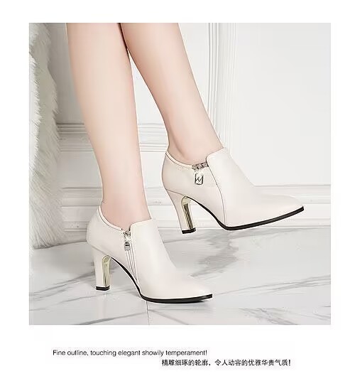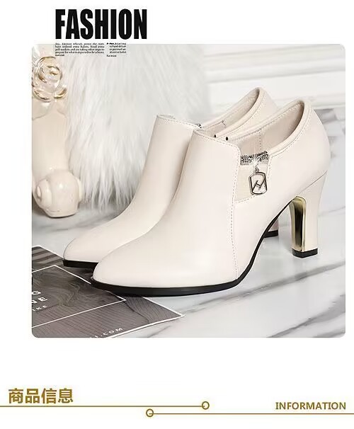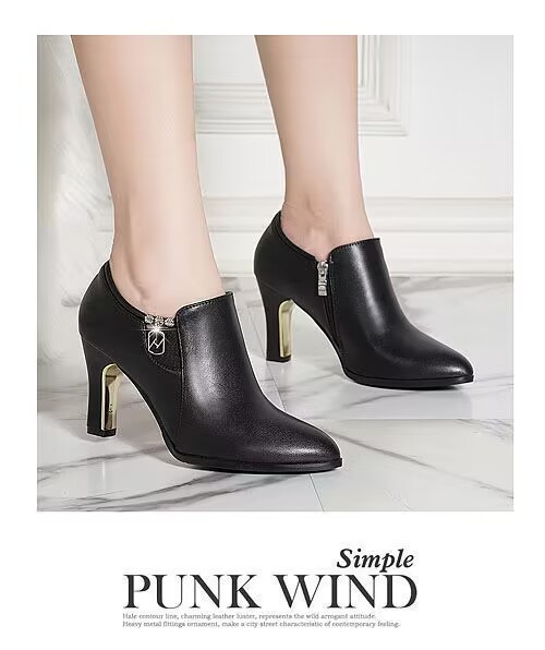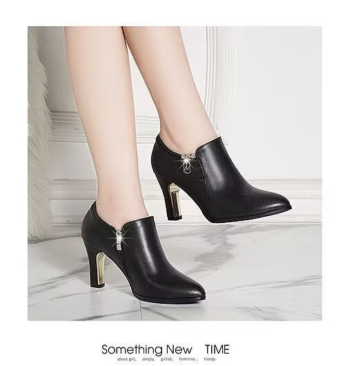 2024 봄과 가을 새로운 대외 무역 지퍼 여성 싱글 신발 패션 올 매치 국경 무역 국경 간 여성 하이힐 가죽 신발